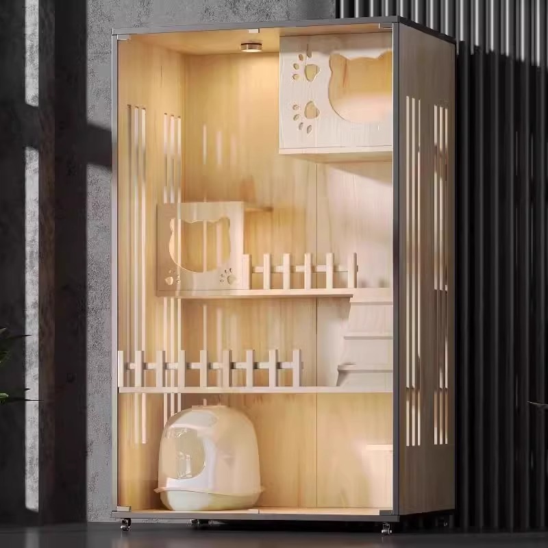 Домик для кошек из дерева, большой, с просторным пространством, роскошный кошачий домик, клетка для кошек с туалетом, шкаф для животных