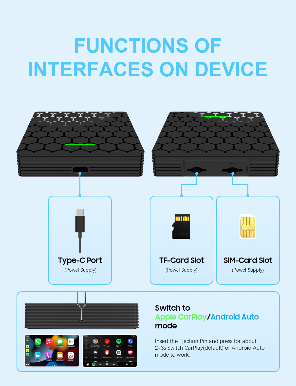 Используется на автомобилях с проводным CarPlay/Android Auto в оригинальном автомобиле.