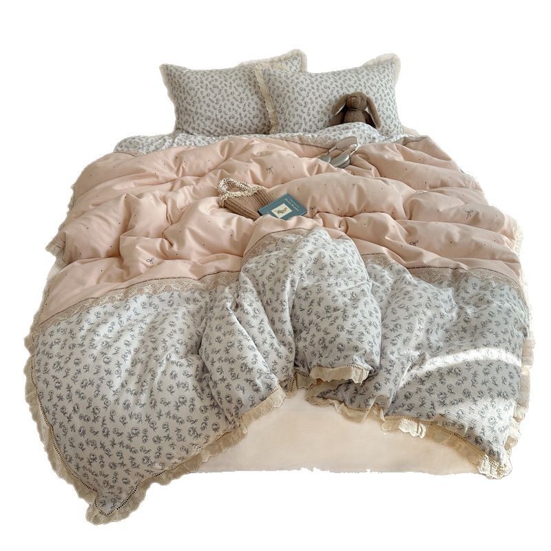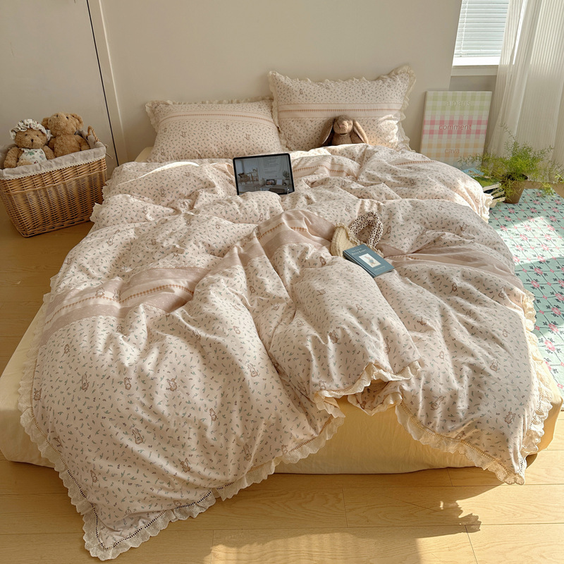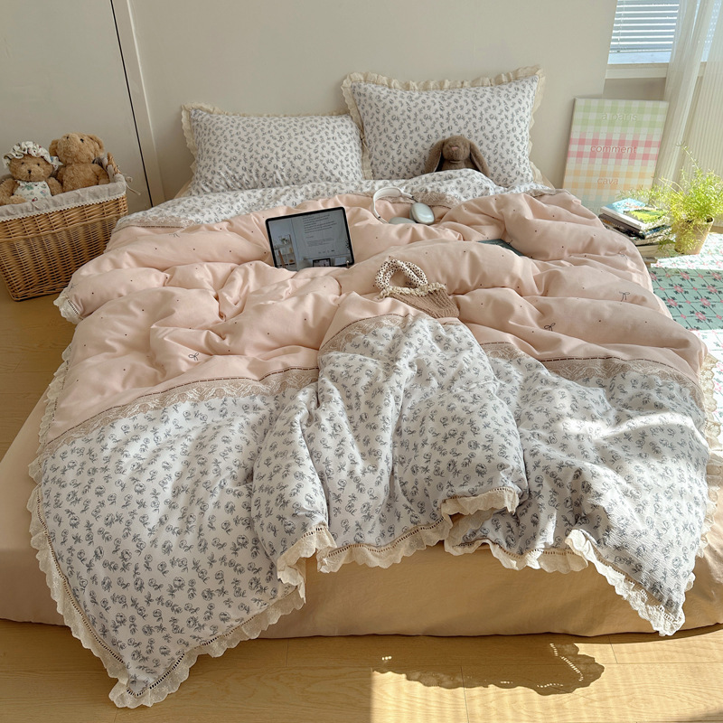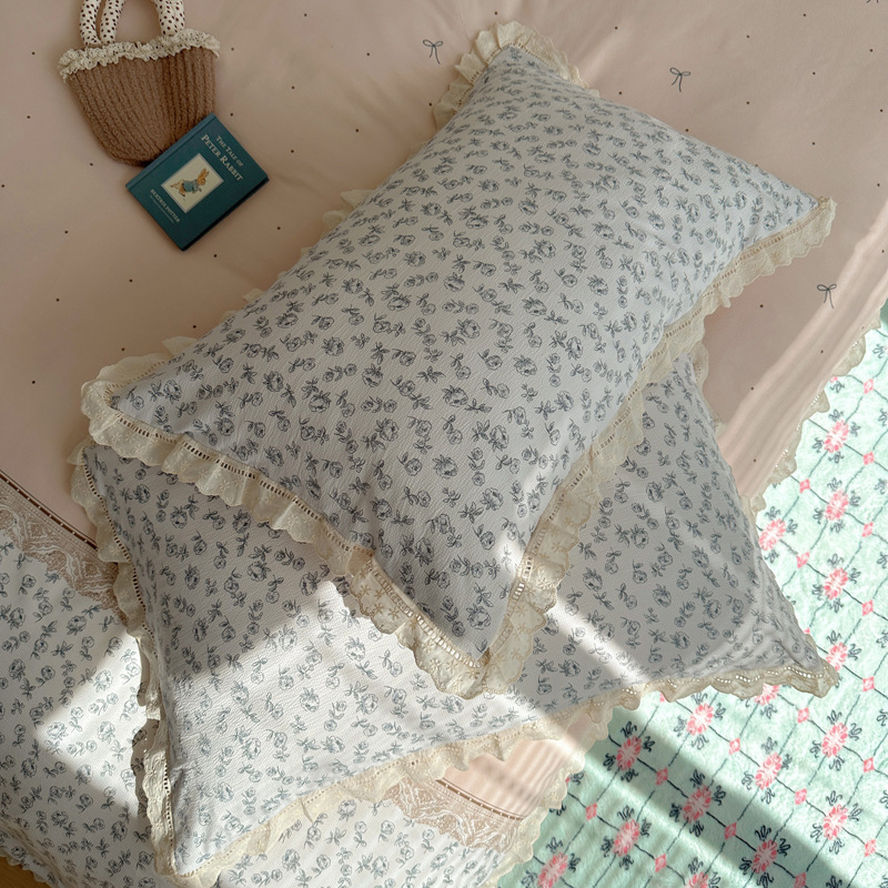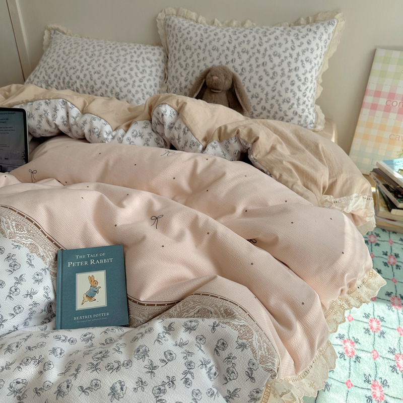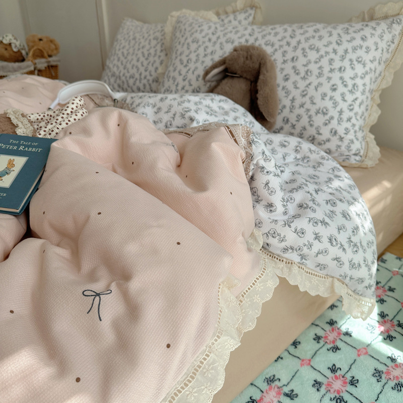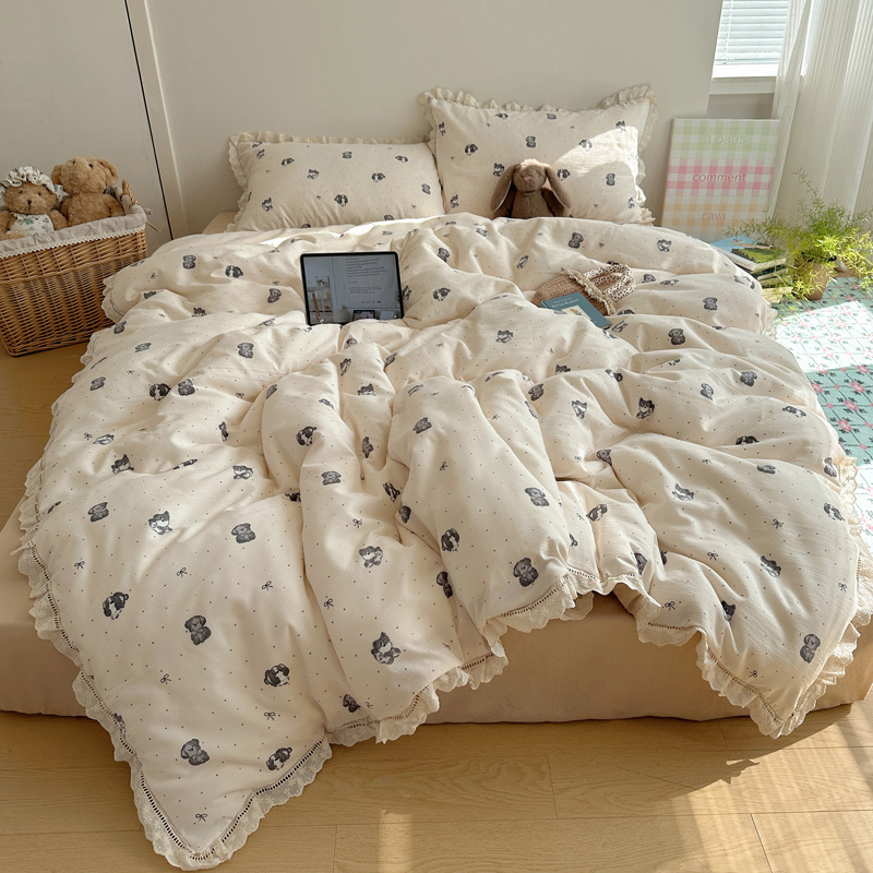 Комплект постельного белья из хлопчатобумажной ткани «сирсакер» с кружевом, 4 предмета, хлопковое полотно, супермягкий, для общежития, 3 предмета