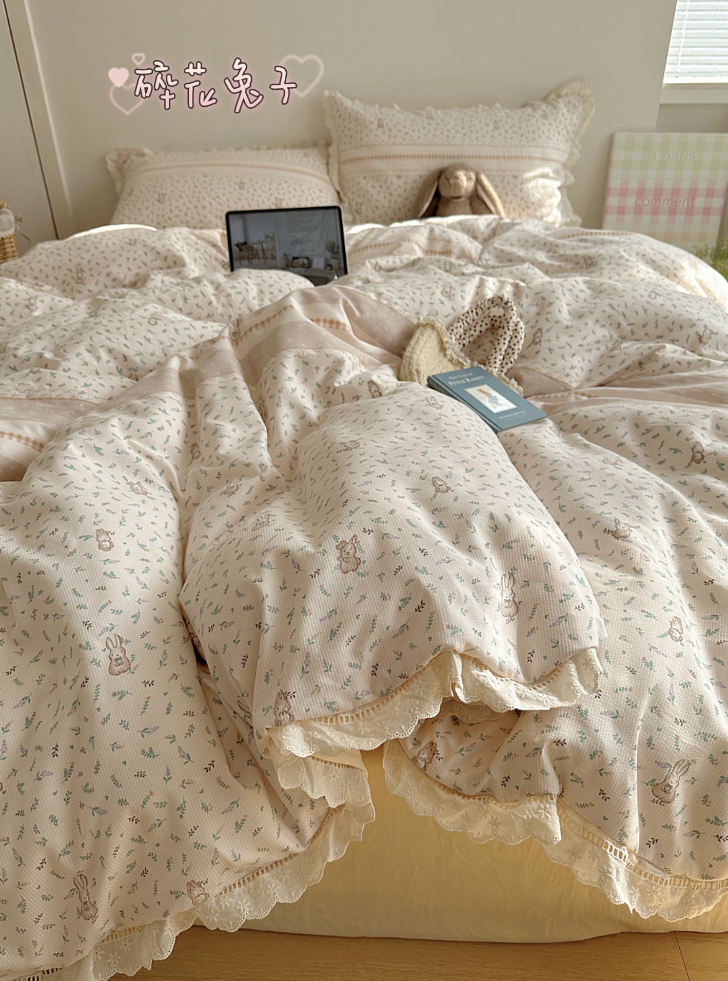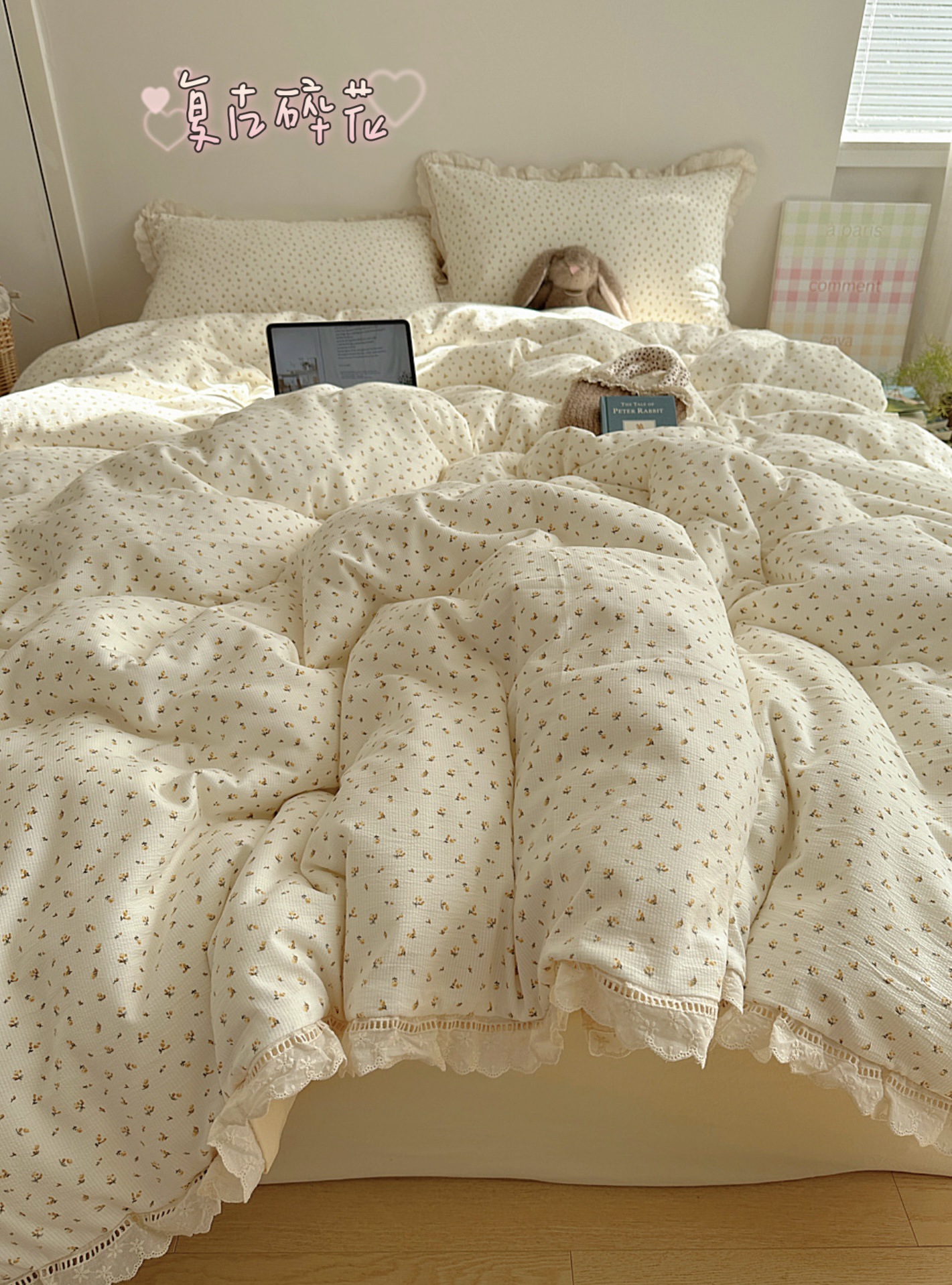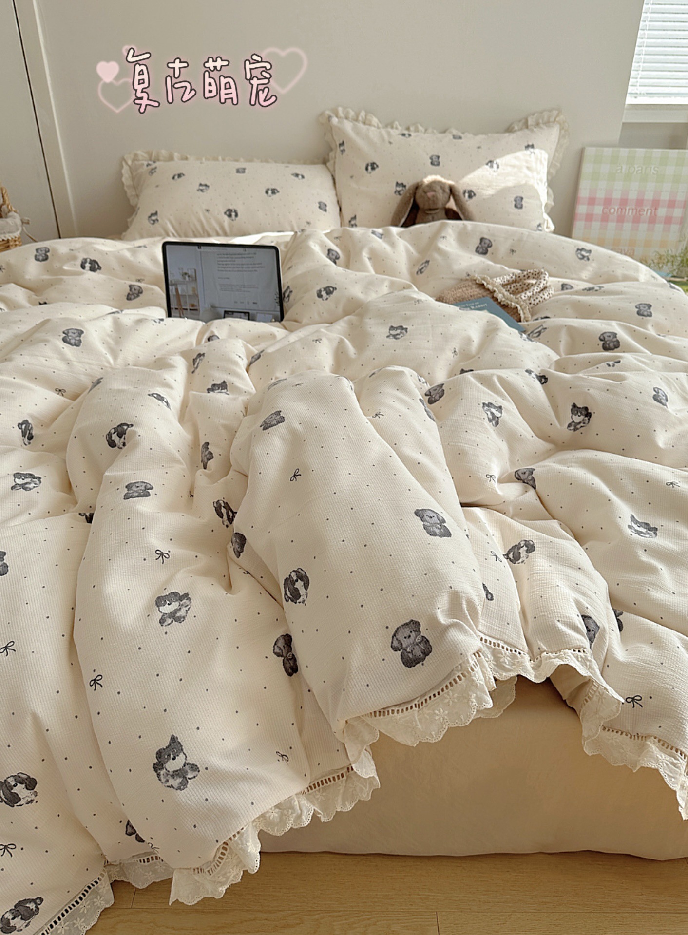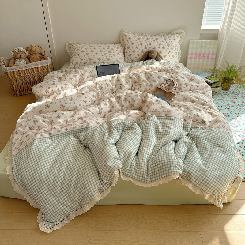 Комплект постельного белья из хлопчатобумажной ткани «сирсакер» с кружевом, 4 предмета, хлопковое полотно, супермягкий, для общежития, 3 предмета