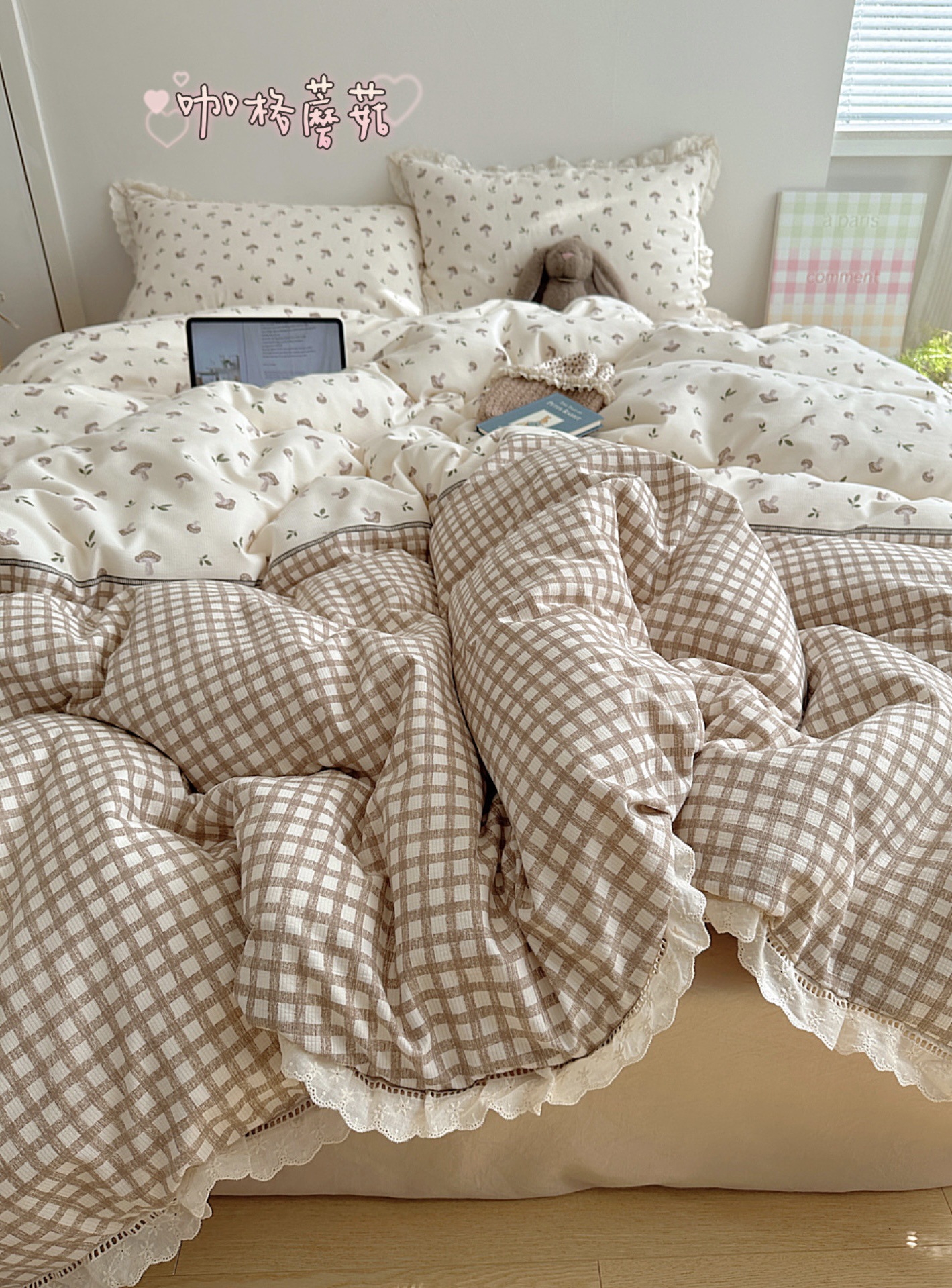 Кружево из сирсакера — французская Хепберн; Кружево из сирсакера — розовые клетчатые цветы; Кружево из сирсакера — милый питомец в стиле ретро; Кружево из сирсакера — винтажный цветочный узор; Кружево из сирсакера — гриб в виде кофейной сетки; Кружево из сирсакера — зеленые клетчатые тычинки.; Кружево из сирсакера — цветочный кролик
