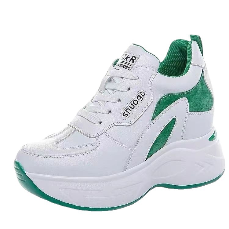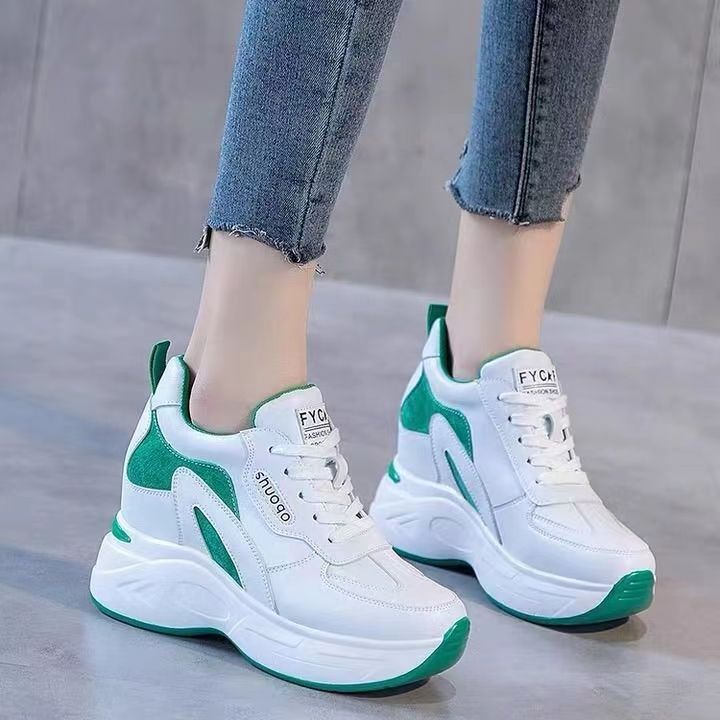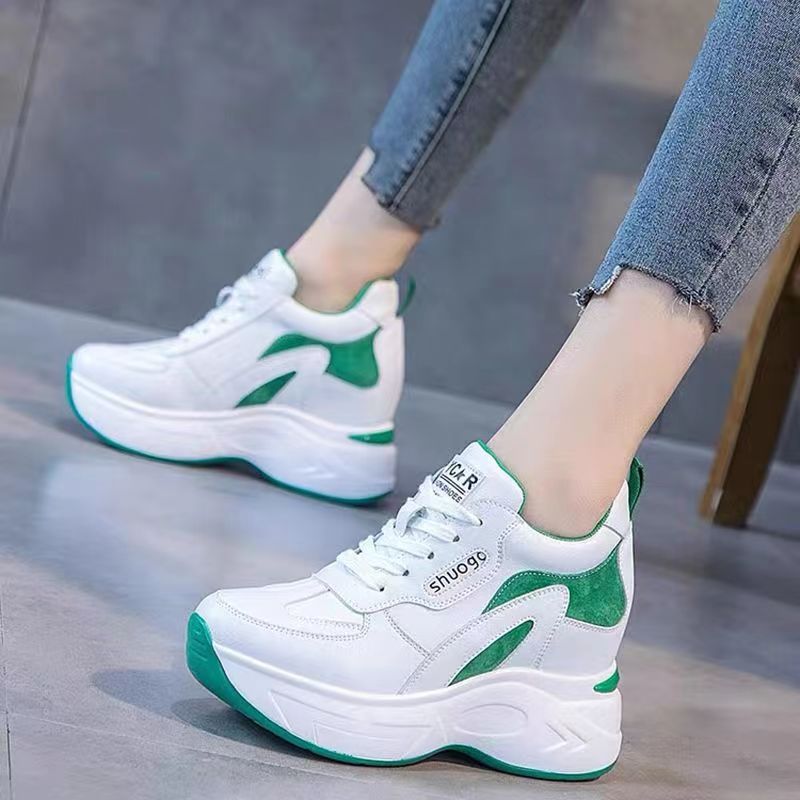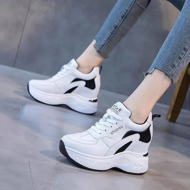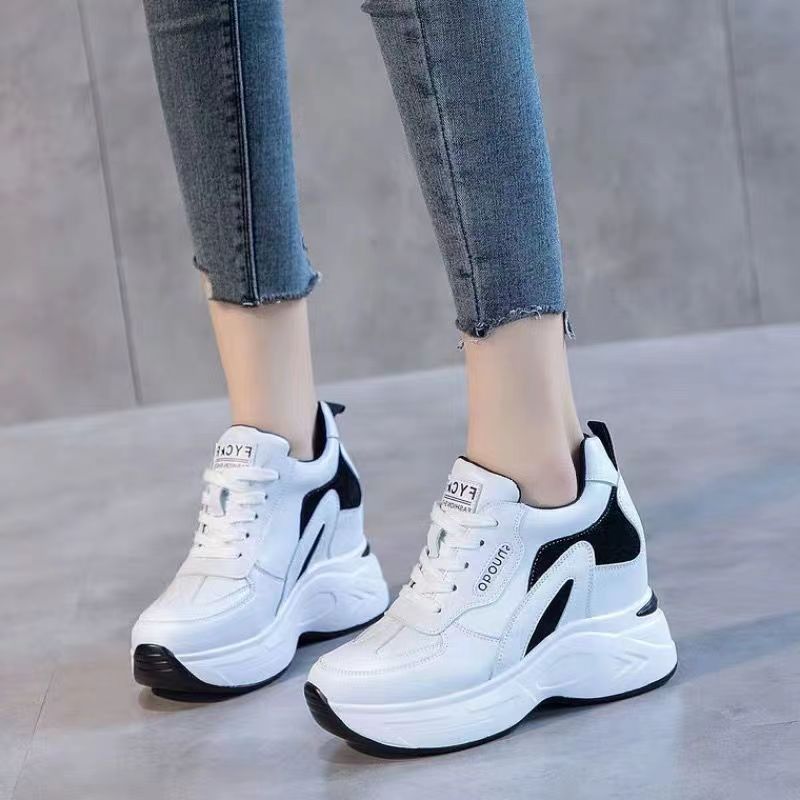 Женская спортивная повседневная обувь на толстой подошве с увеличением внутренней высоты, весна-осень 2025 года, удобные белые туфли для похудения в корейском стиле на флисовой подкладке для женщин