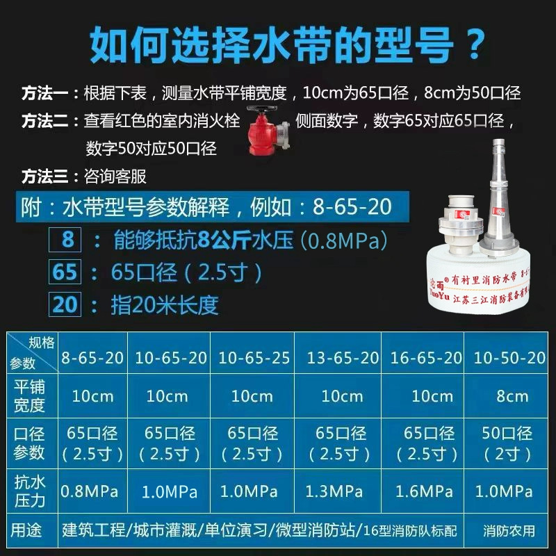 Противопожарный шланг дождевого поля; 50 зажим; 65 зажим; Пожалуйста, обратитесь в службу поддержки клиентов для получения подробной информации.