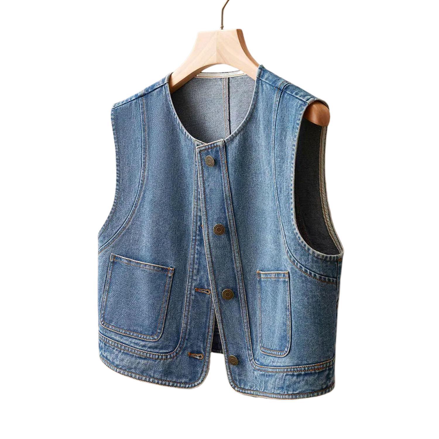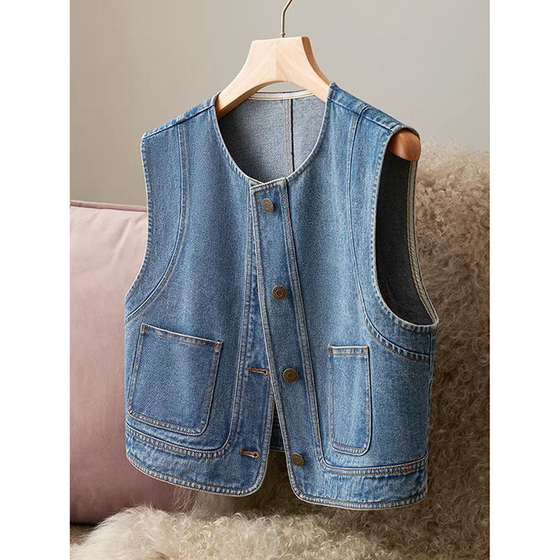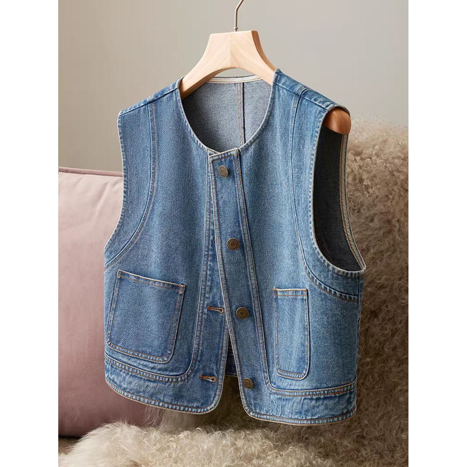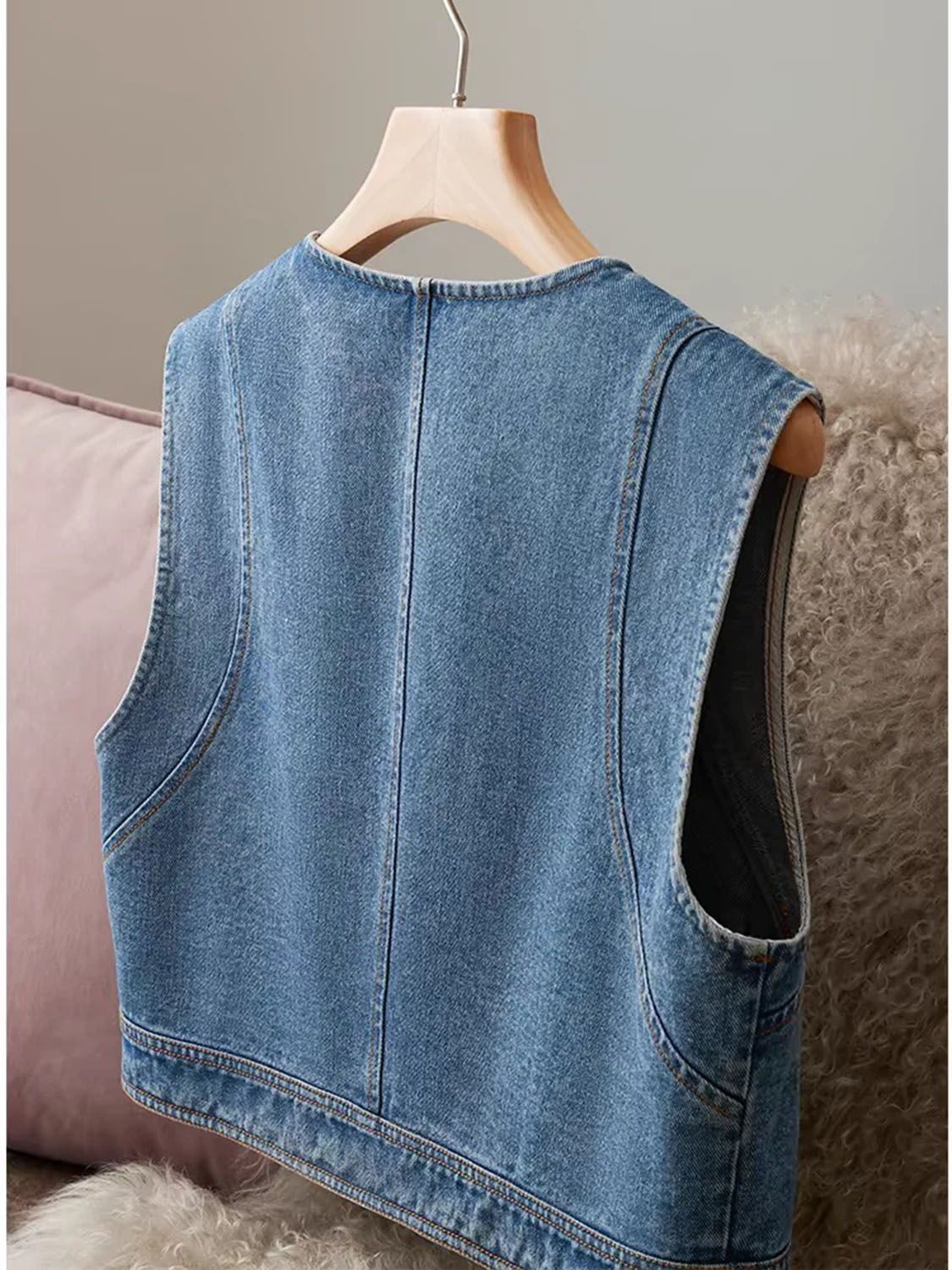 Модный универсальный многослойный джинсовый жилет для женщин, новая весенне-летняя свободная повседневная короткая куртка без рукавов для миниатюрных фигур.
