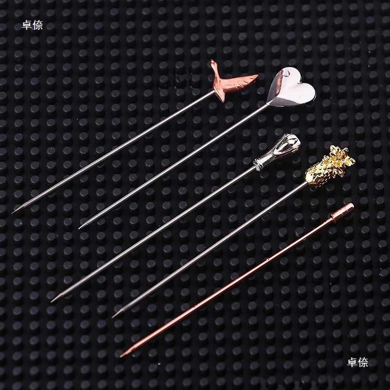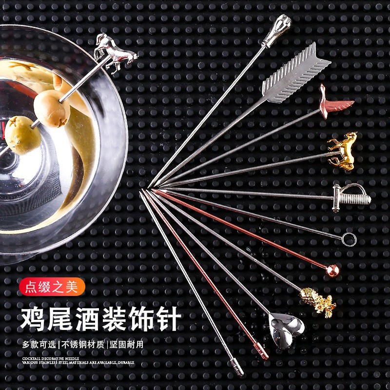 Иглы для коктейлей из нержавеющей стали, креативные украшения для фруктовых напитков, вина, оливок, бара, иглы для бокалов для вина