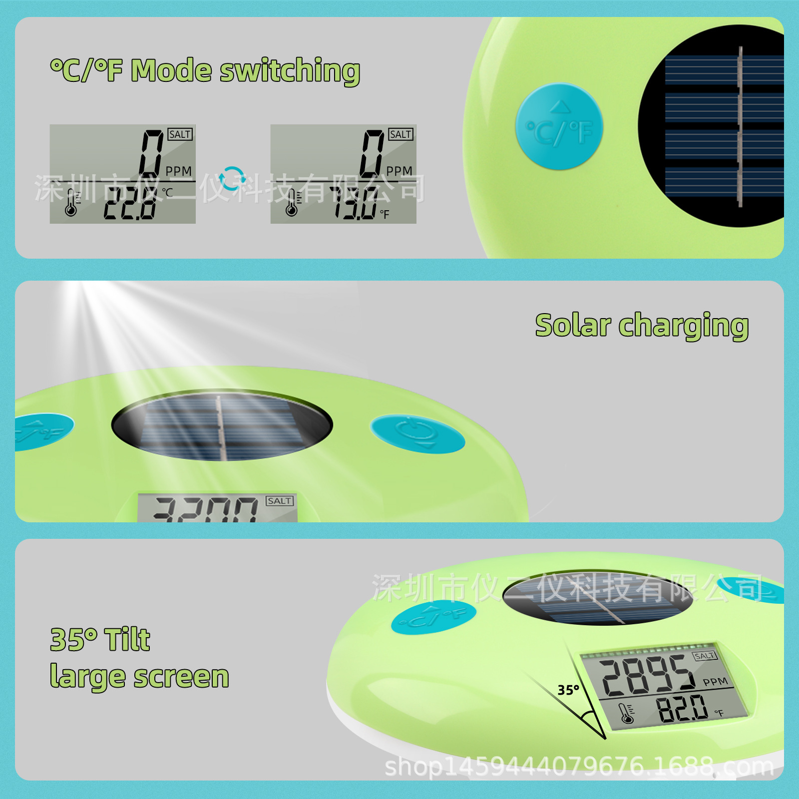 Трансграничный солнечный датчик качества воды для измерения солености и температуры, плавающий термометр для бассейнов и аквариумов, 2-в-1.
