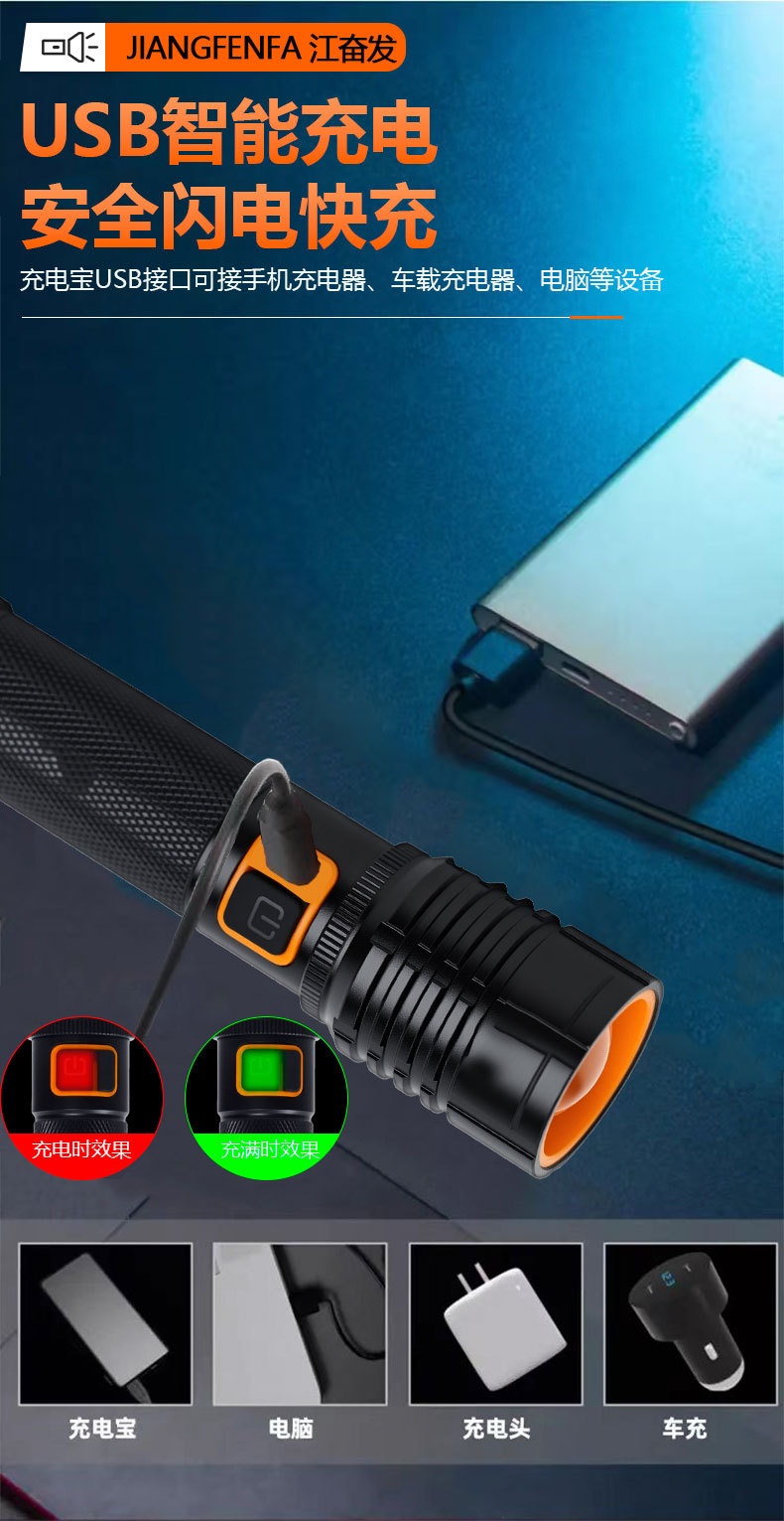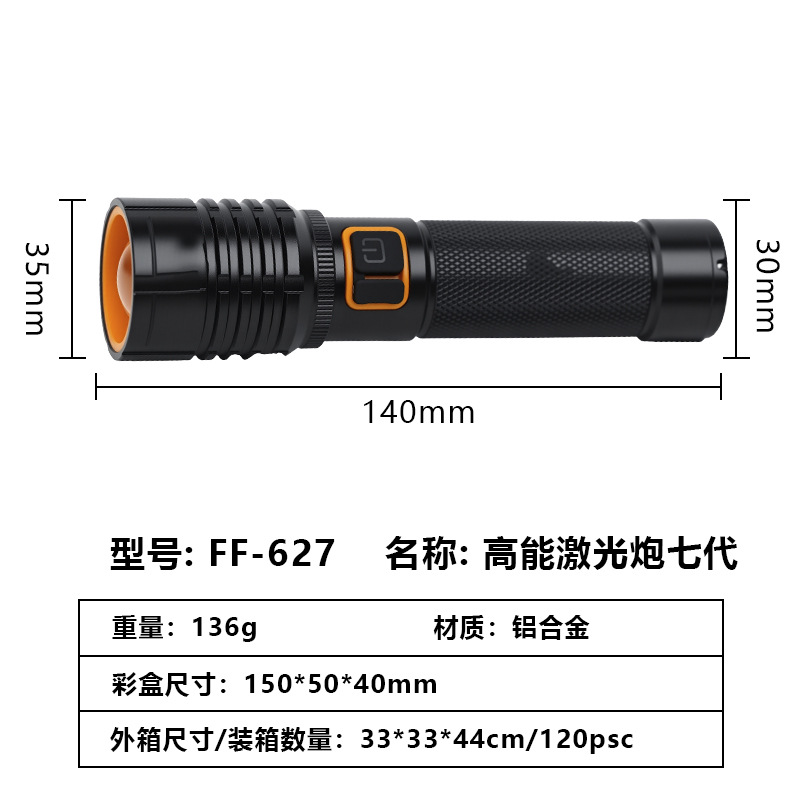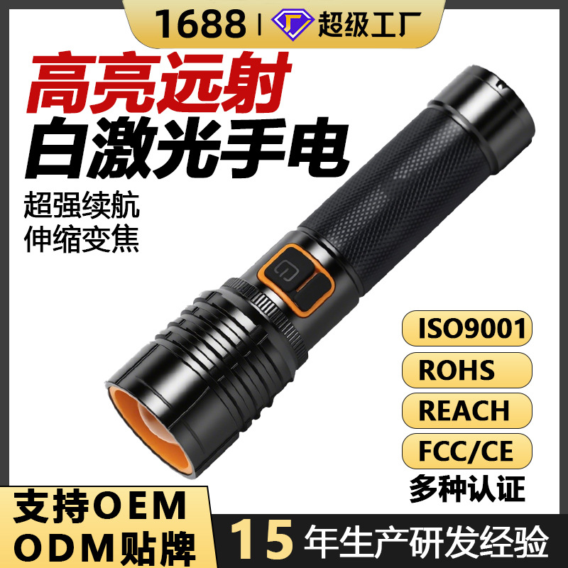 Мощный фонарь-лазерная пушка для улицы, тактический ручной фонарь из алюминиевого сплава, яркий, перезаряжаемый, долговечный, с зумом
