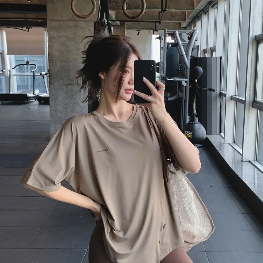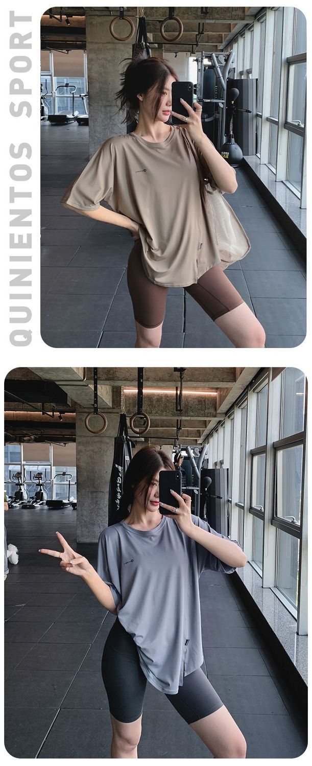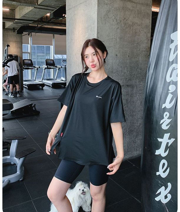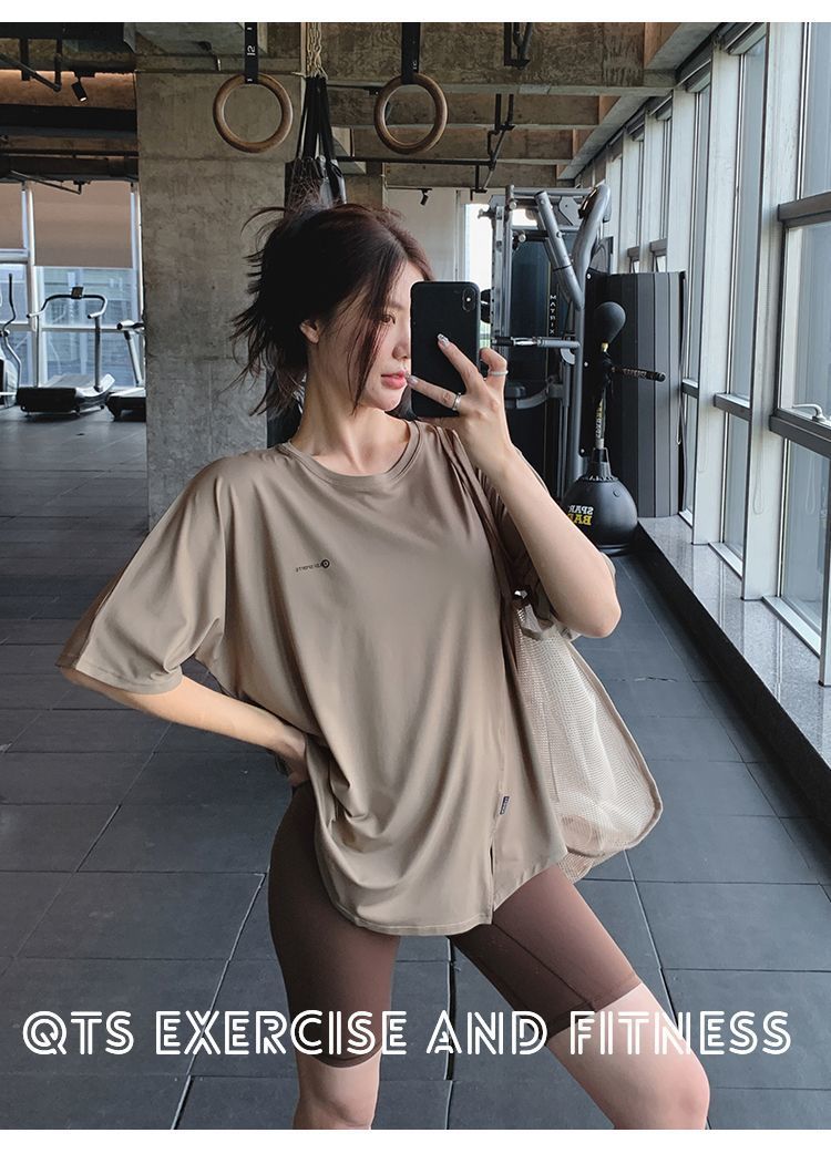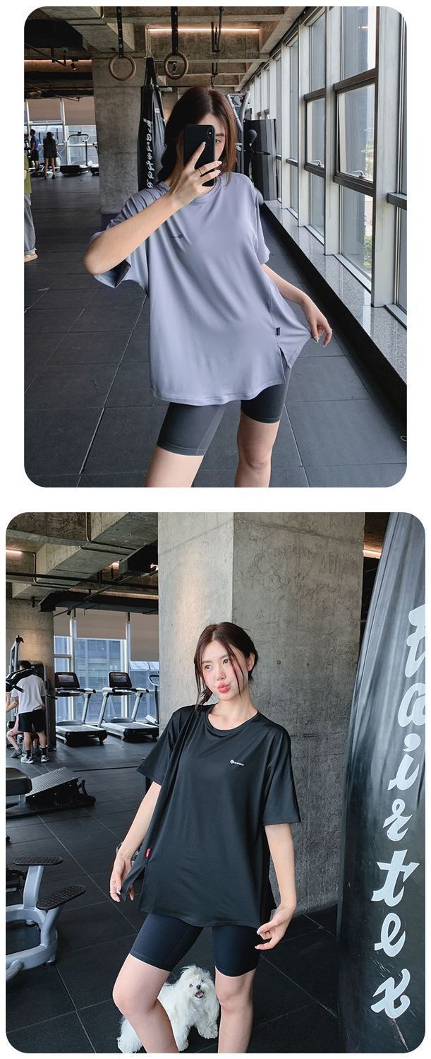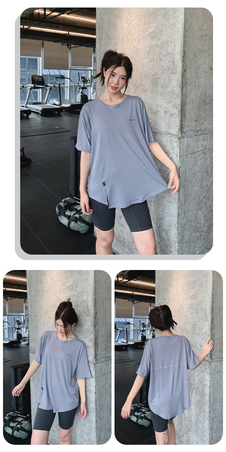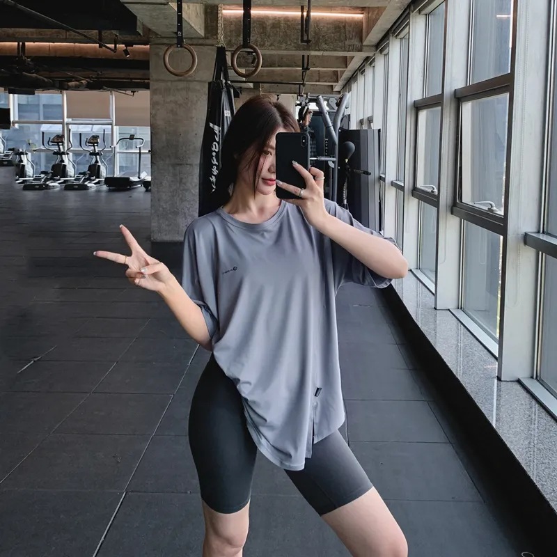 Одежда для фитнеса и йоги больших размеров, летний свободный спортивный костюм для полных девушек средней длины, закрывающий бедра, спортивный костюм для бега на открытом воздухе