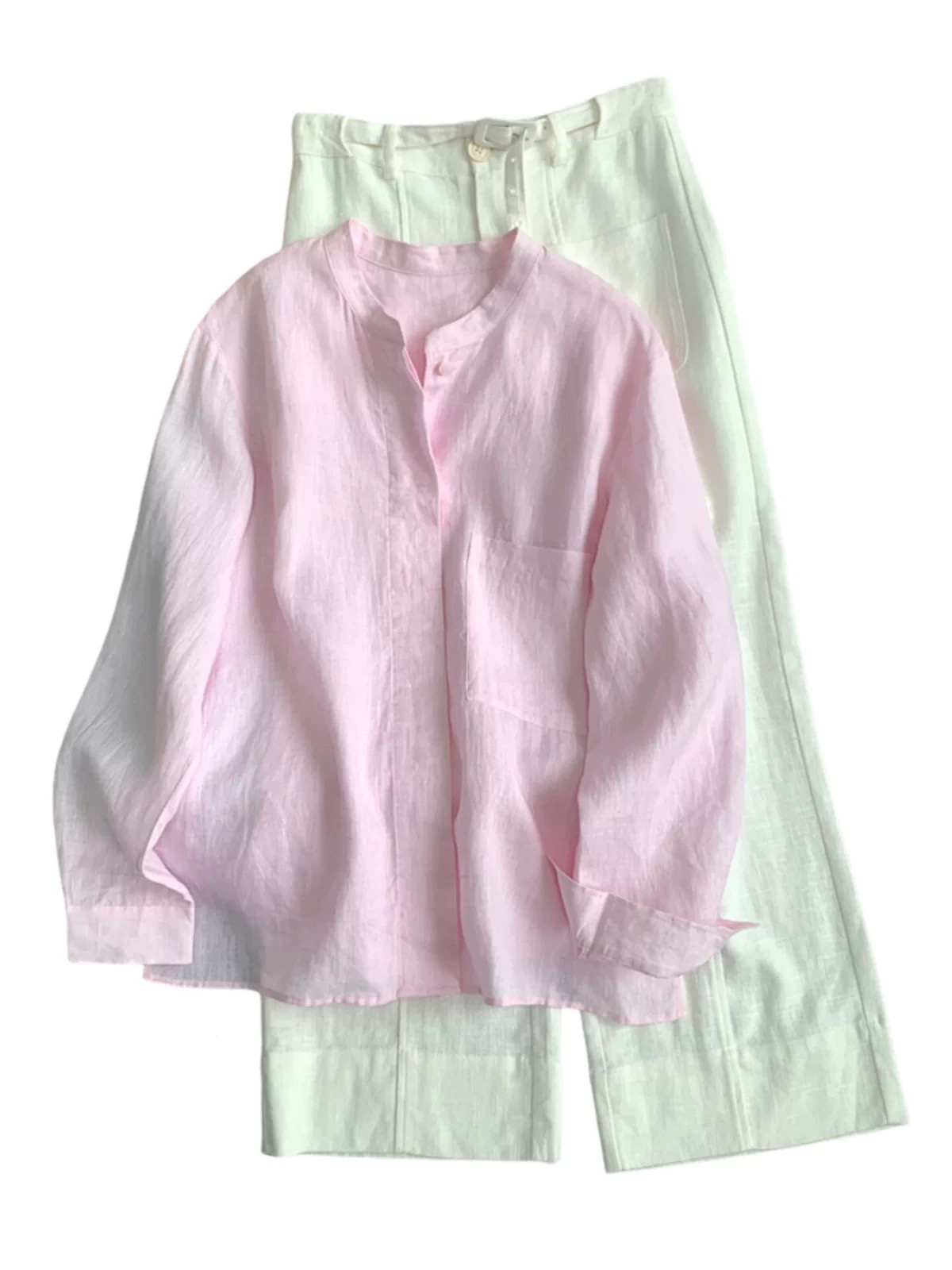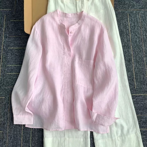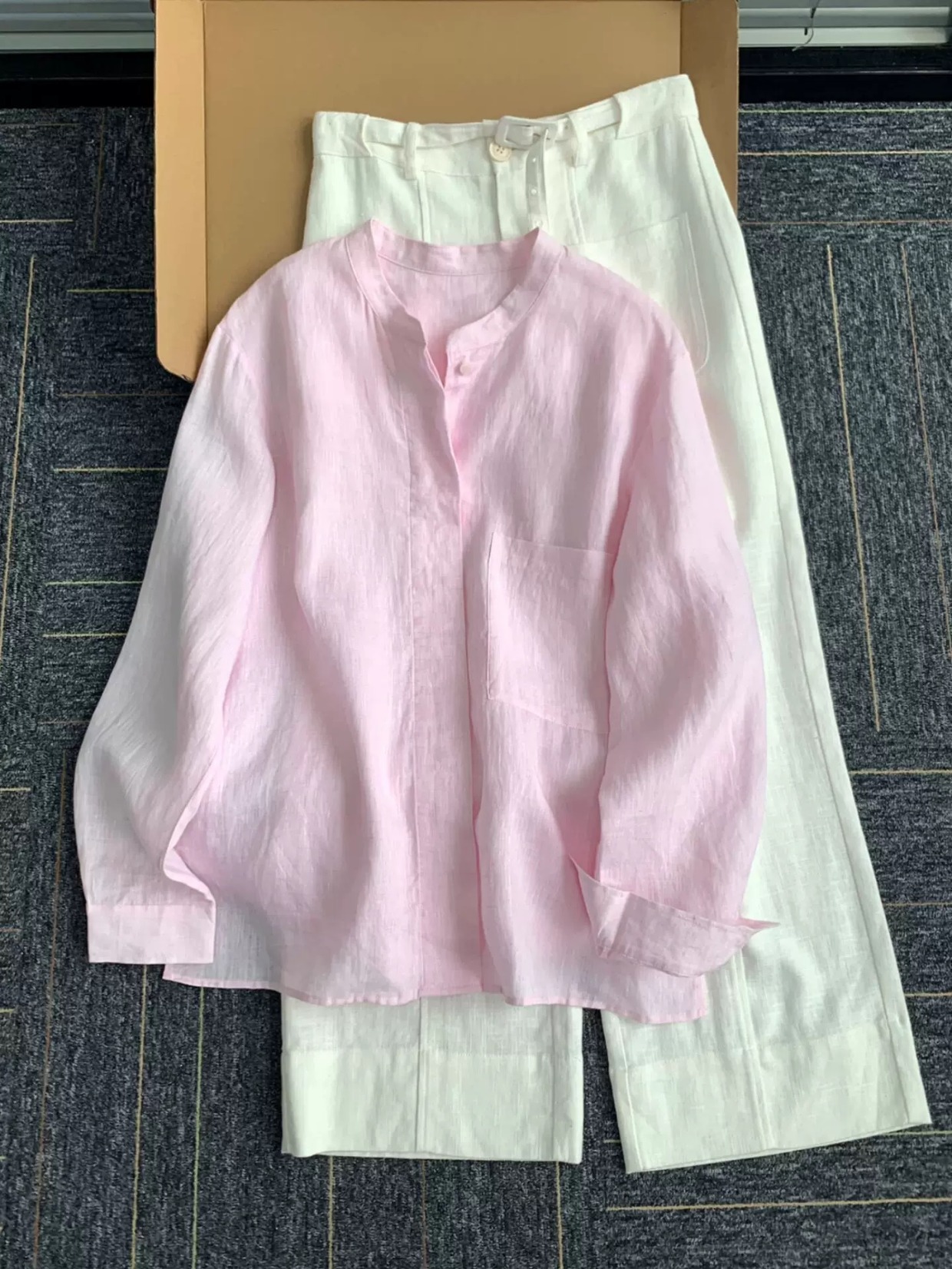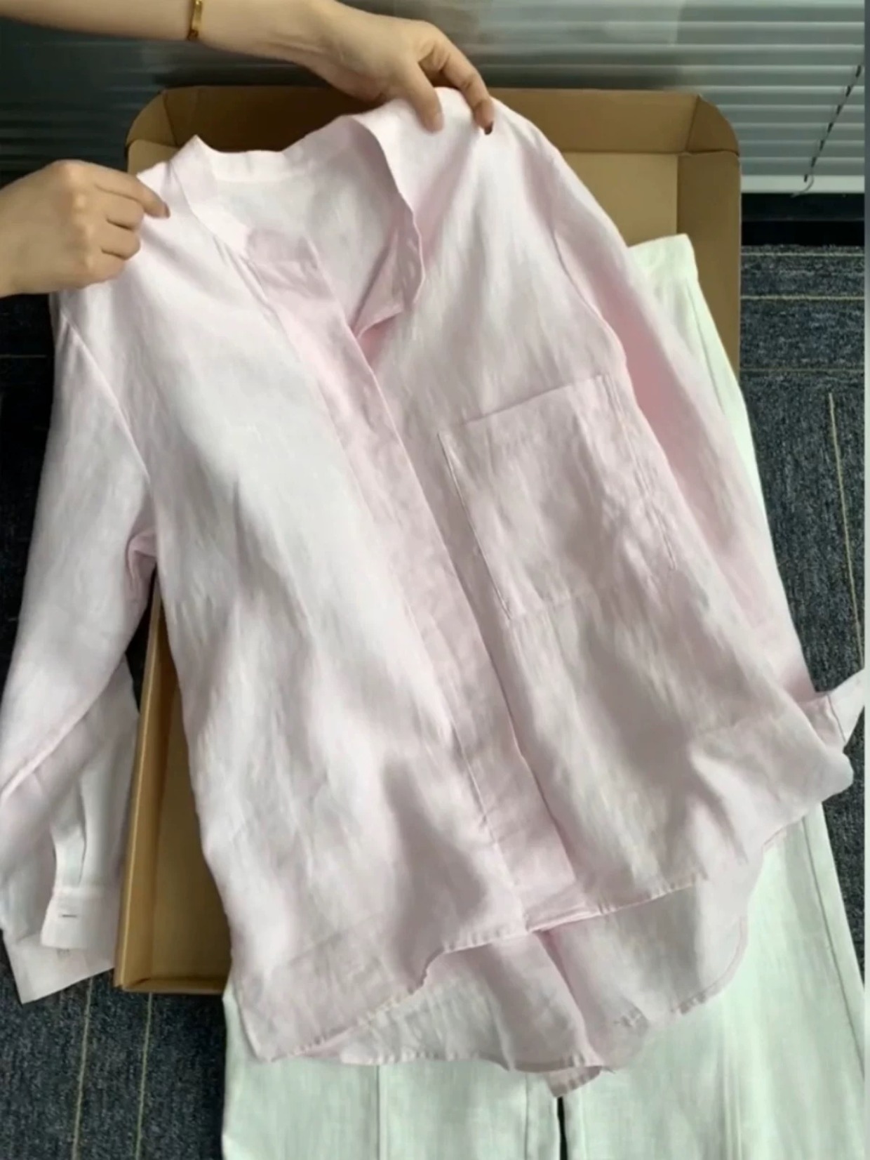 Женская льняная рубашка-жакет в стиле французского розового дзен, лето 2025, новый стиль «старые деньги», топ в стиле допамина