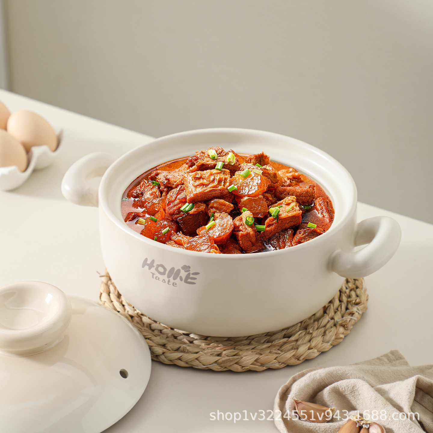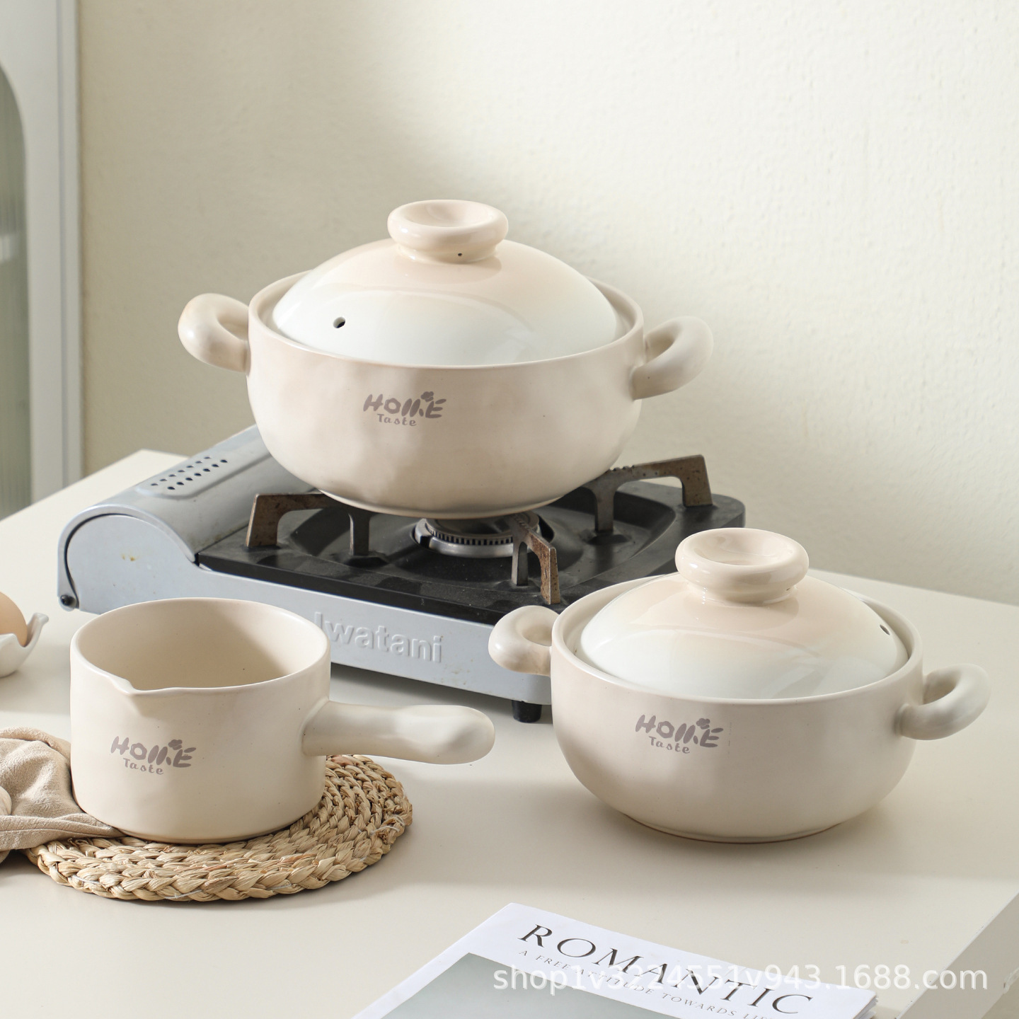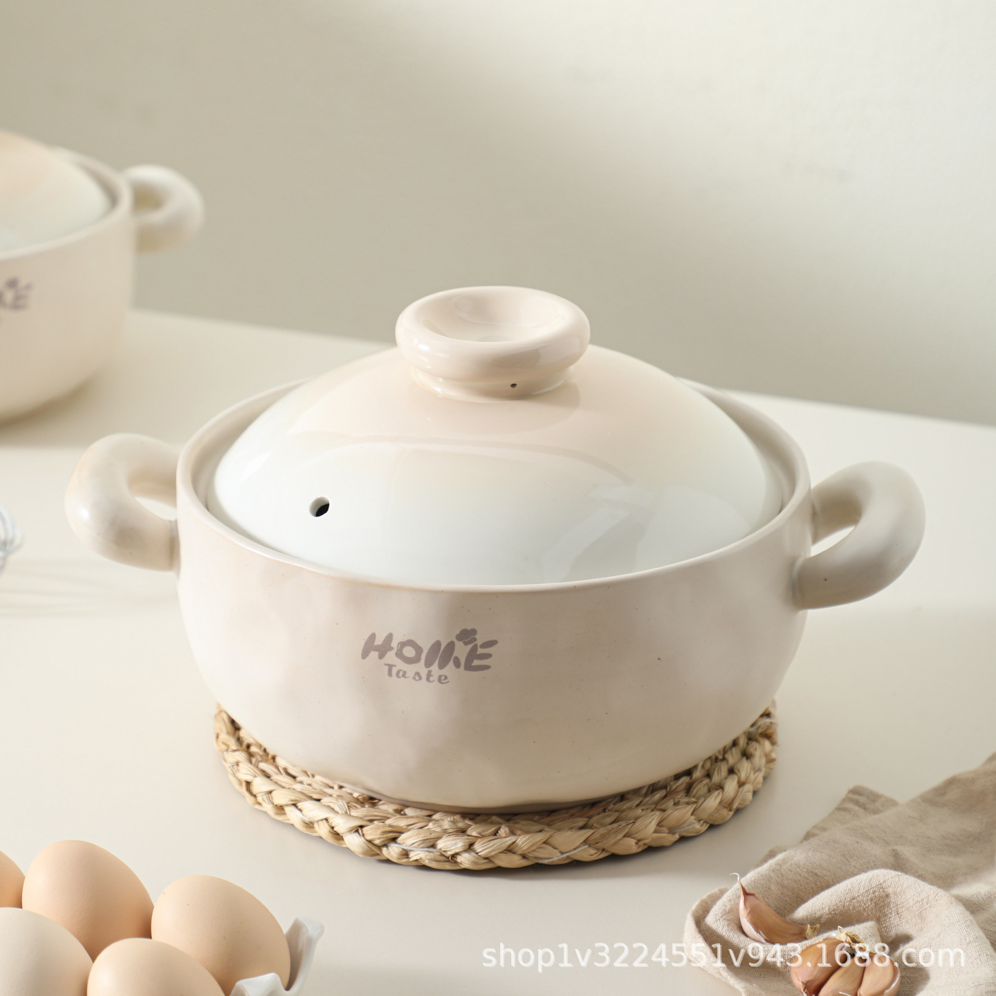 Керамическая кастрюля ручной работы в кремовом стиле, устойчивая к высоким температурам газовая плита, специальная кастрюля для тушения, бытовой глиняный горшок, рисовый тушёный суп, газовая кастрюля для тушения