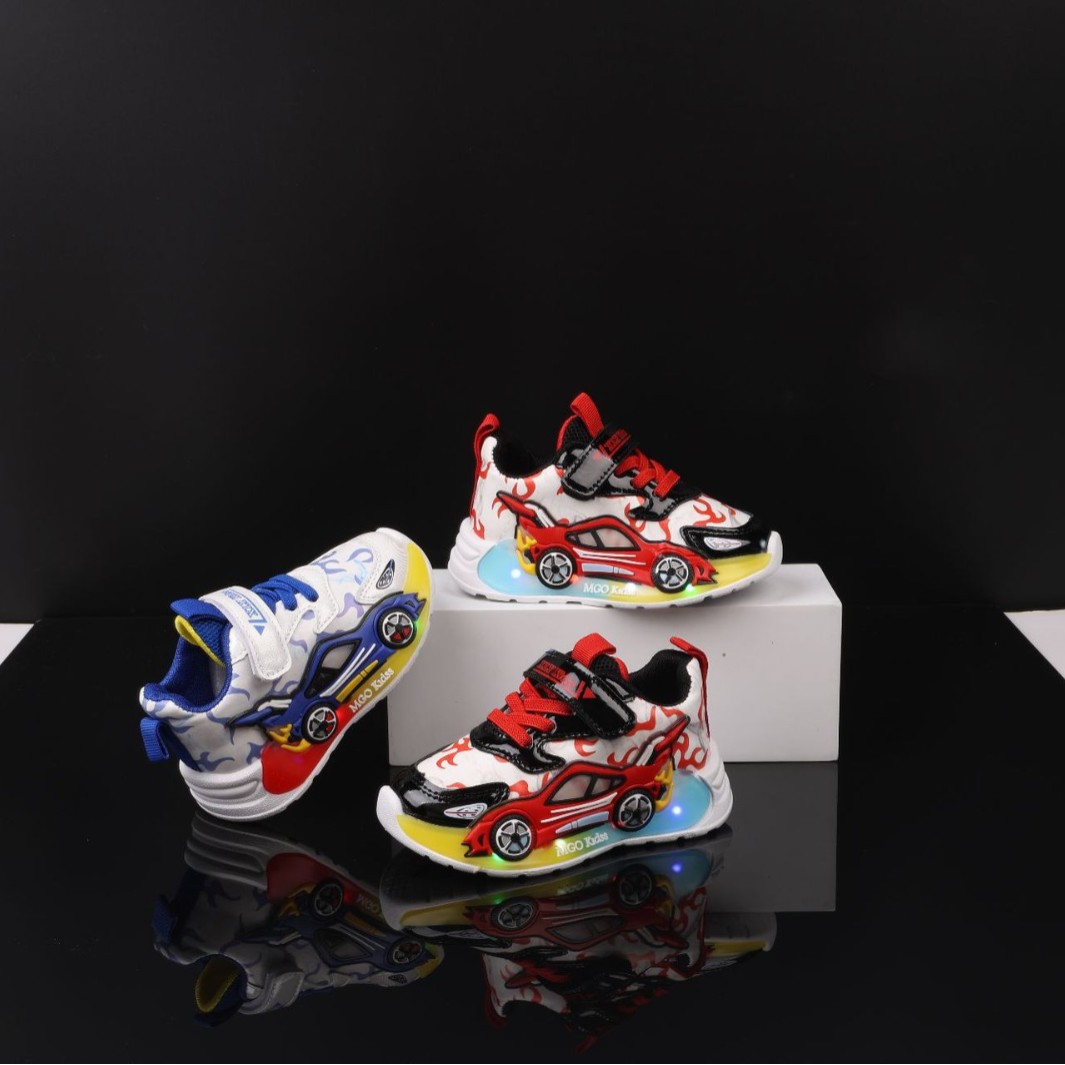 2025 Весенне-осенние модные дышащие кроссовки для детей с LED-подсветкой в виде спортивного автомобиля