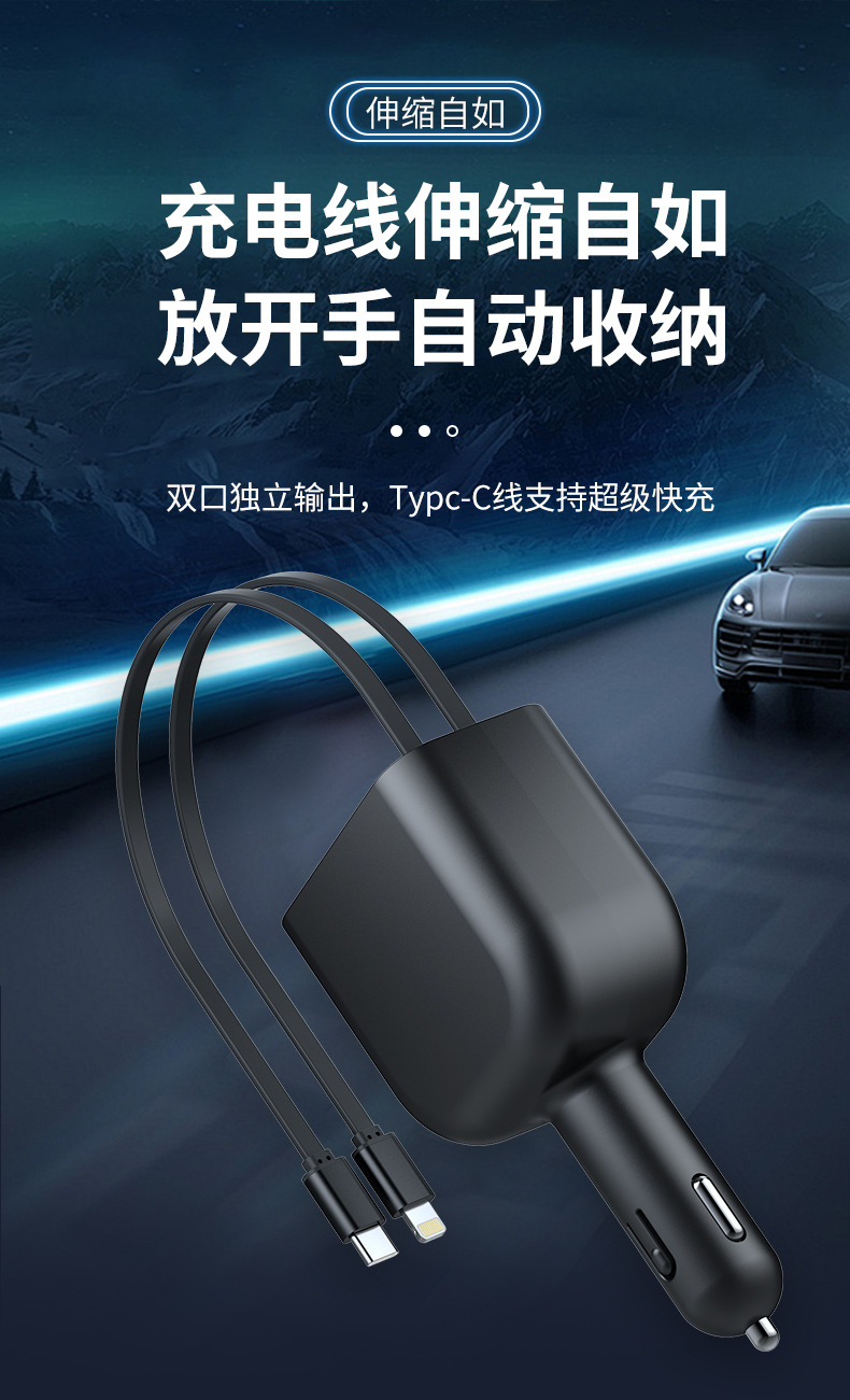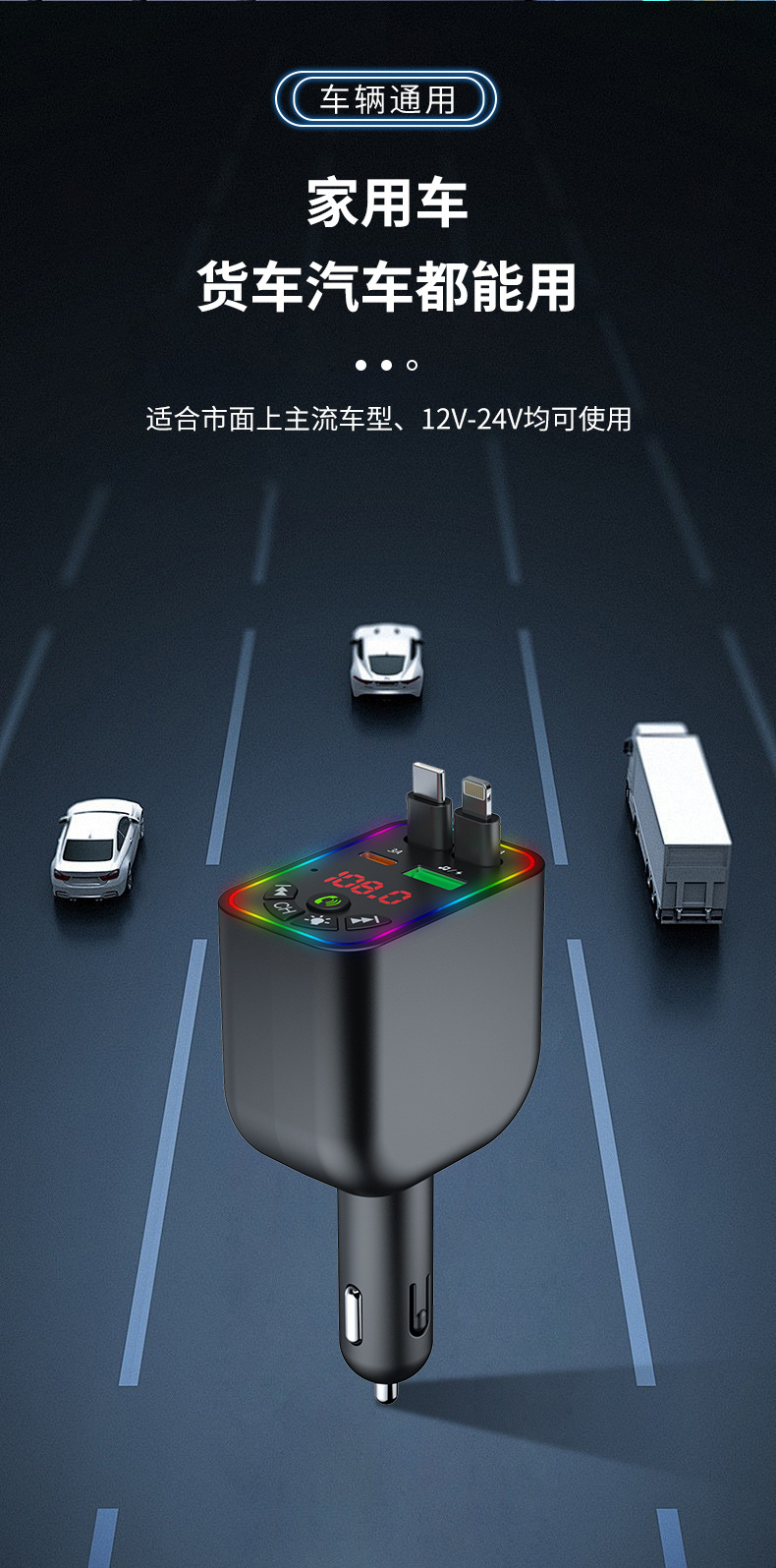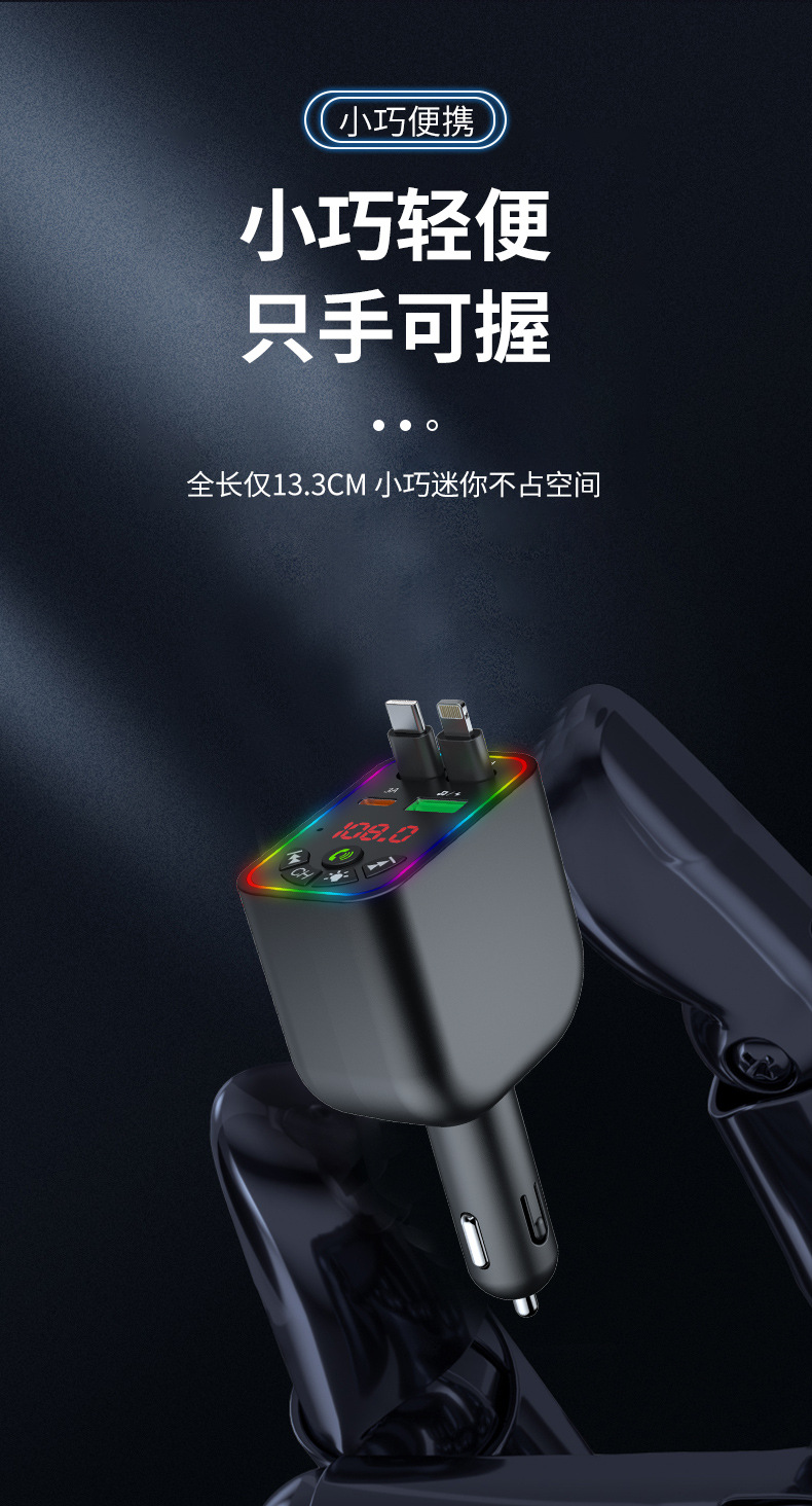 Y5车载蓝牙MP3点烟器一拖四伸缩线 车载MP3车载充电器超级快充