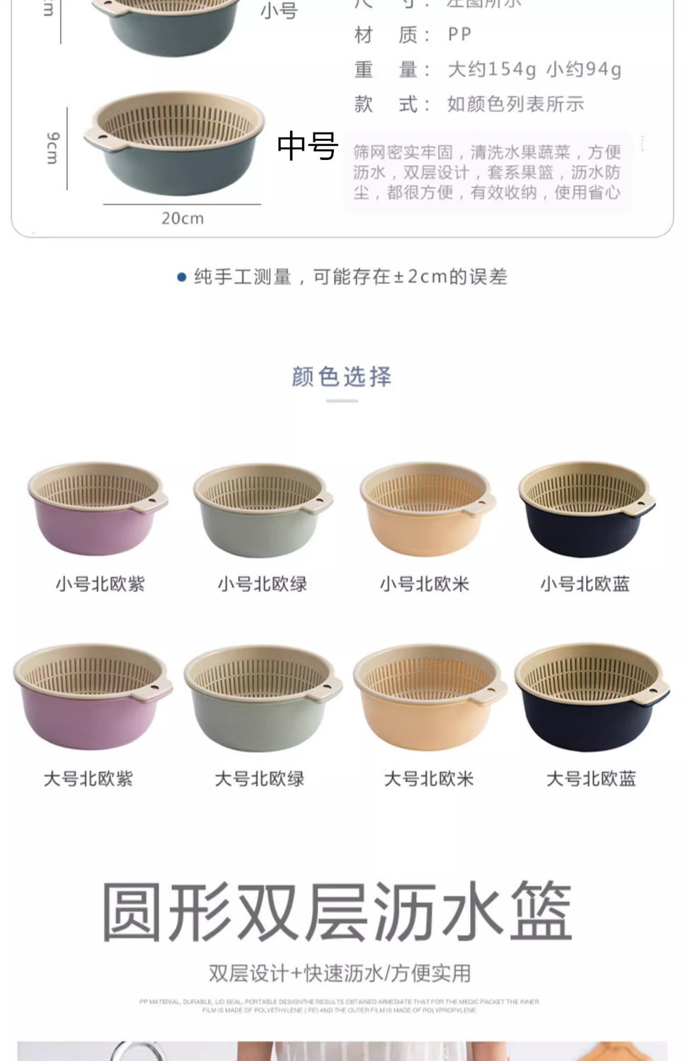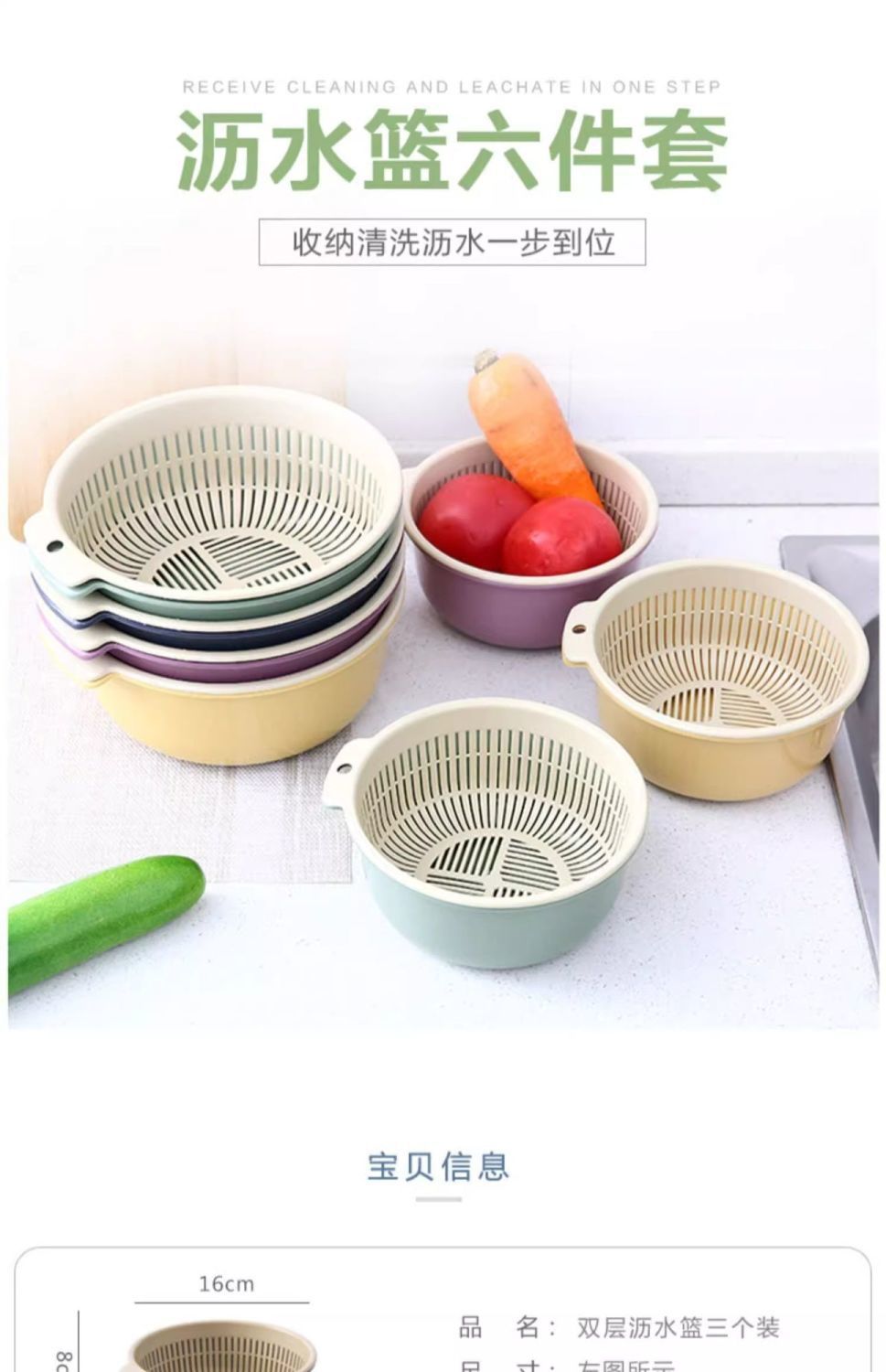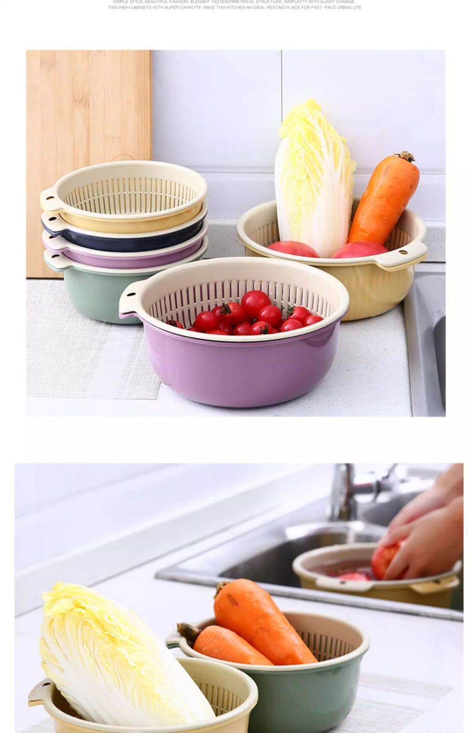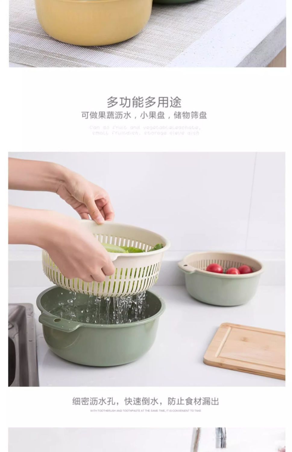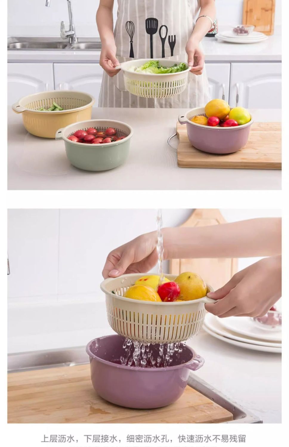 Двухслойная пластиковая корзина для овощей для мытья овощей, подходит для использования на кухне, дома и в гостиной, простая корзина для фруктов и овощей.