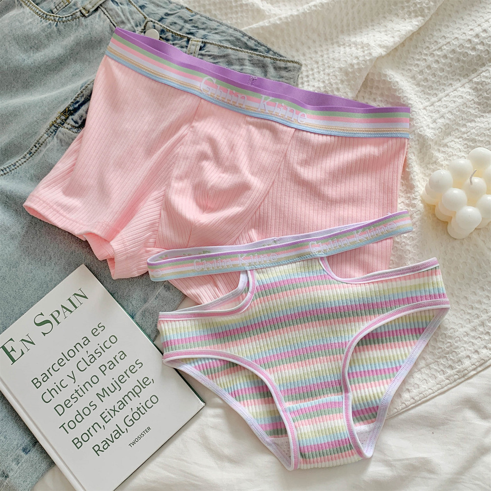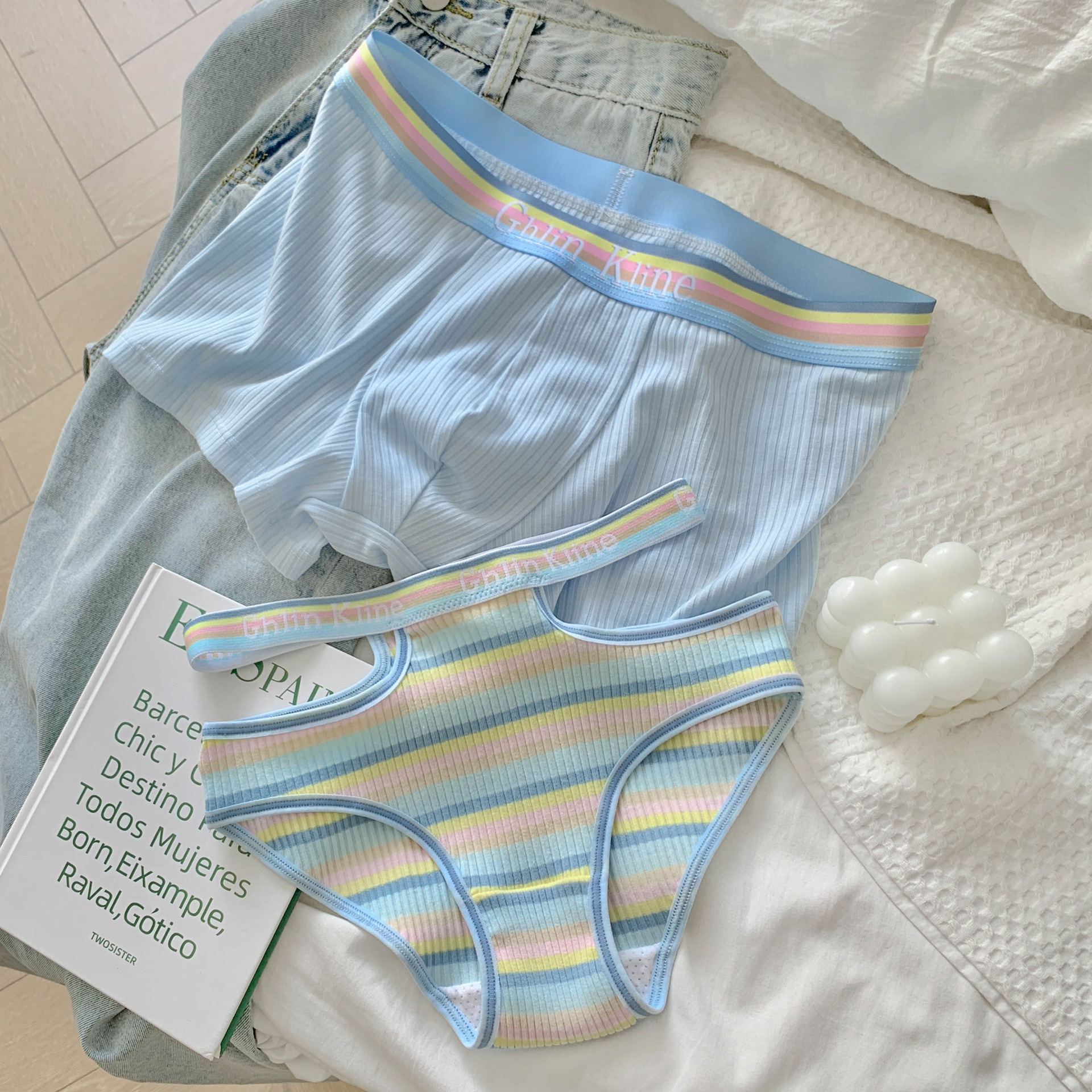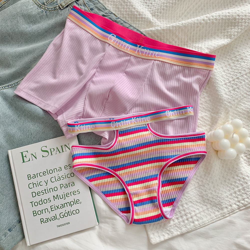 Нижнее белье для пар в радужную полоску, один мужчина и одна женщина, летние тонкие спортивные сексуальные мужские боксеры и женские треугольные шорты
