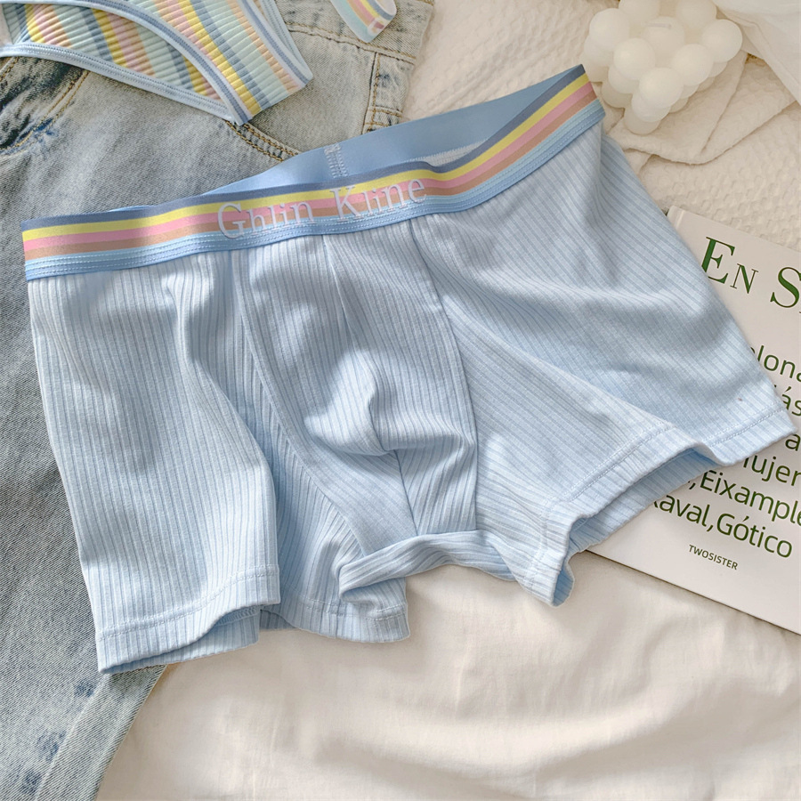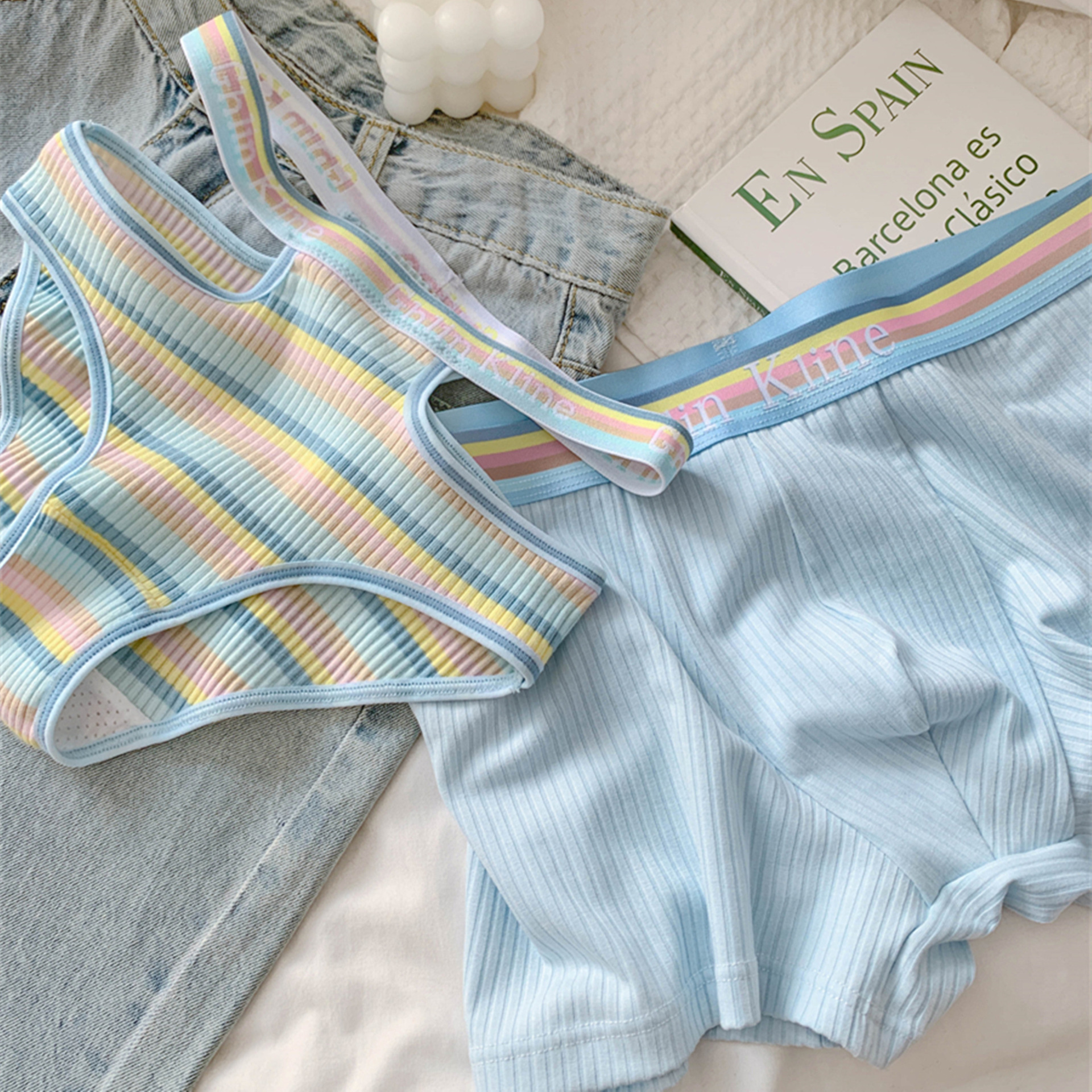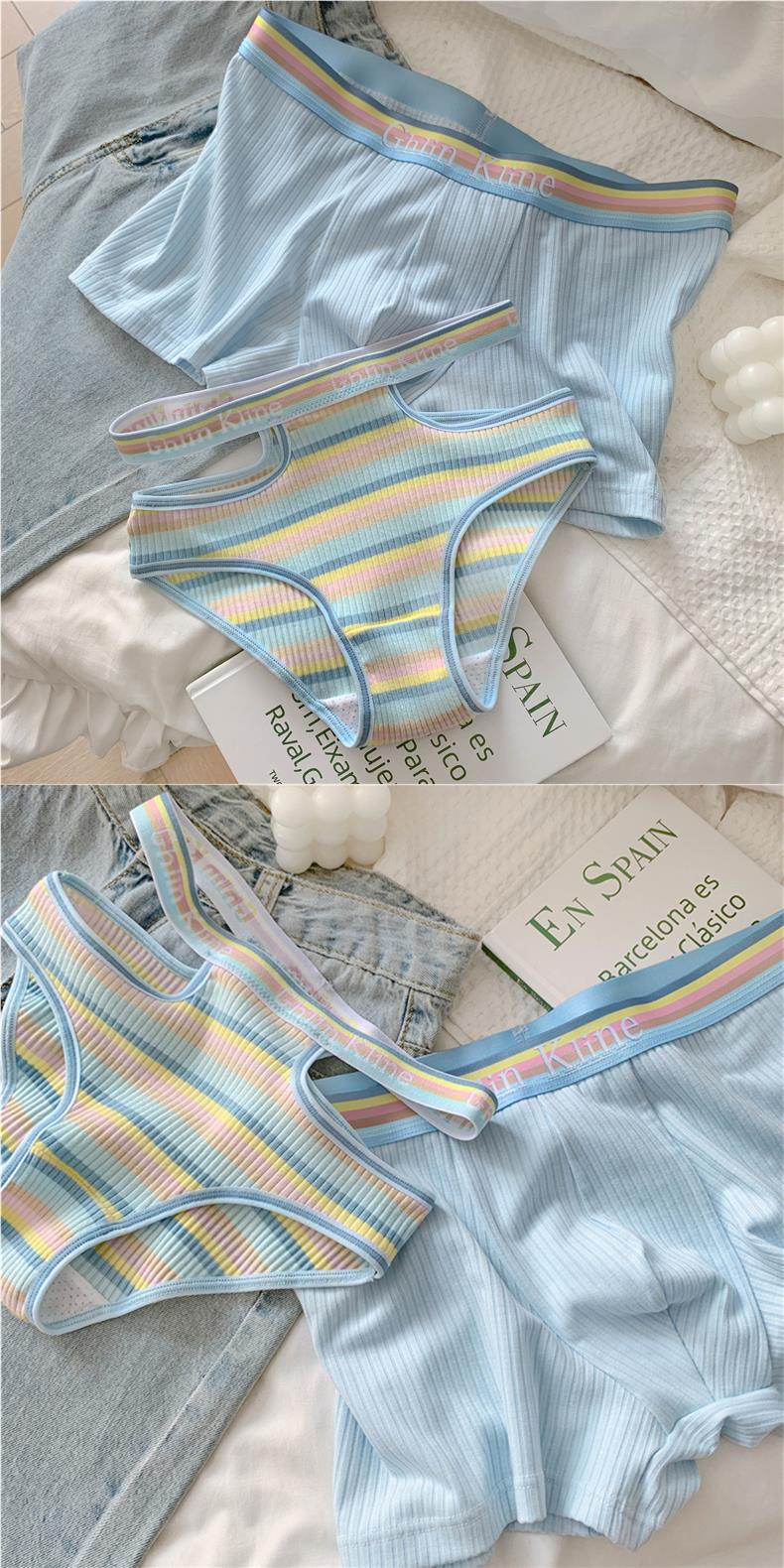 Нижнее белье для пар в радужную полоску, один мужчина и одна женщина, летние тонкие спортивные сексуальные мужские боксеры и женские треугольные шорты