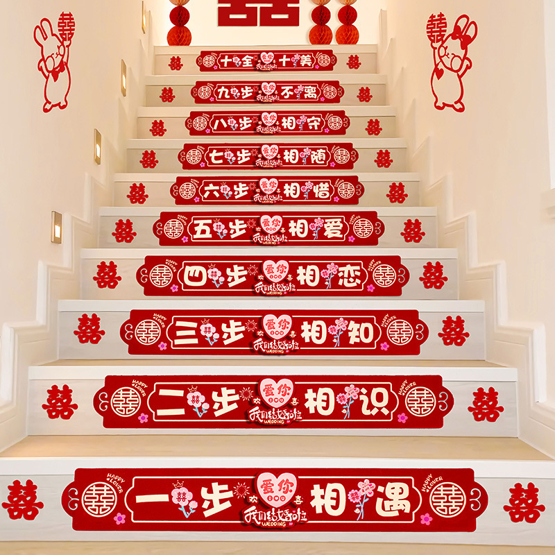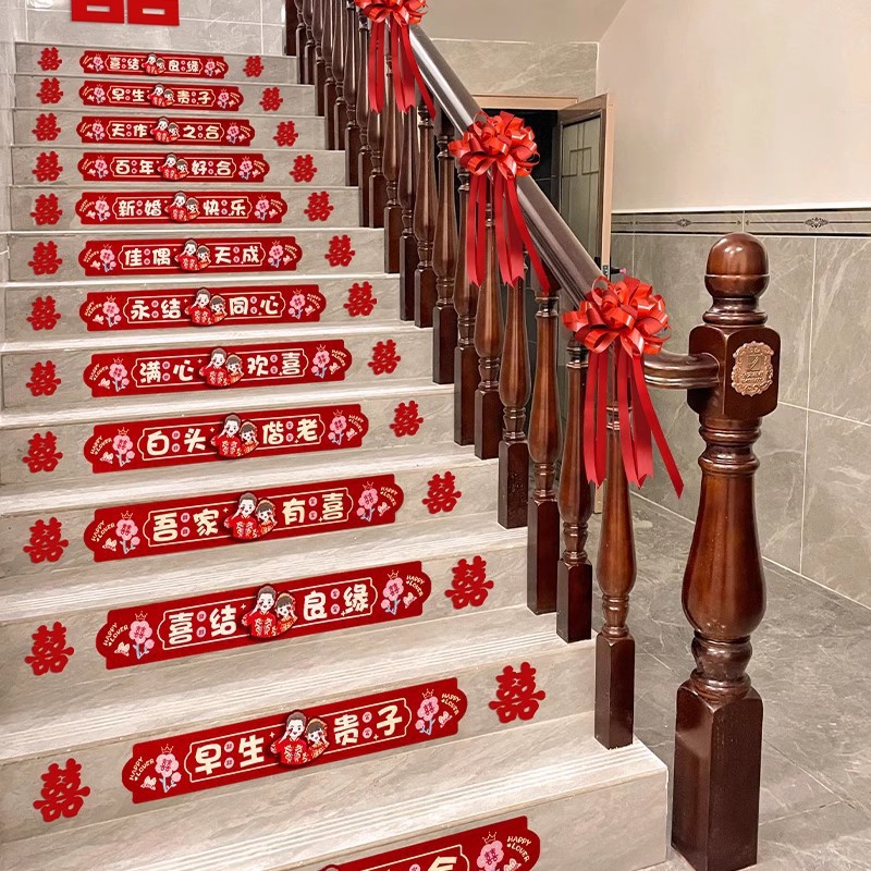 ✅ Наклейки на ступеньки, свадебные украшения, свадебные перила жениха, ступеньки, наклейки с двойным счастьем, свадебные наклейки, партия украшений для свадебной комнаты.