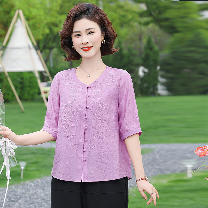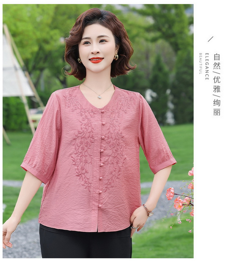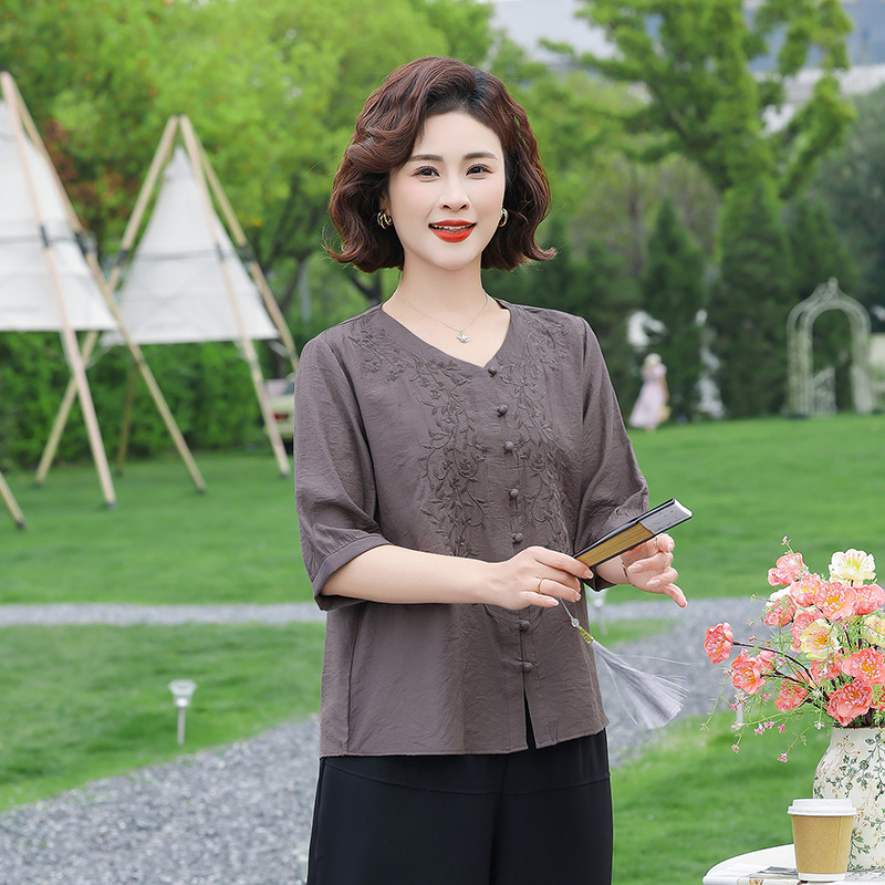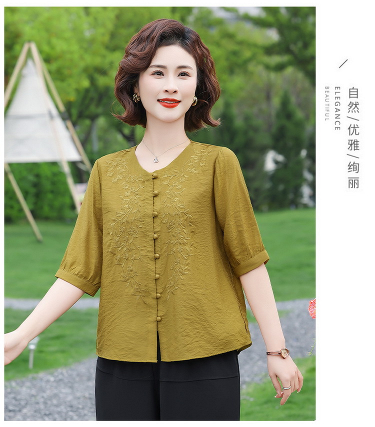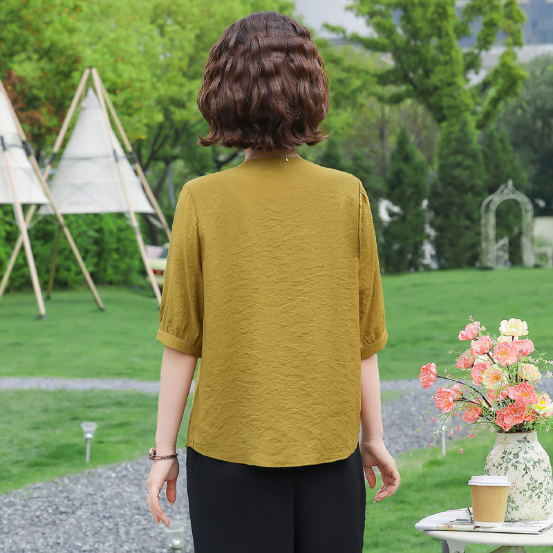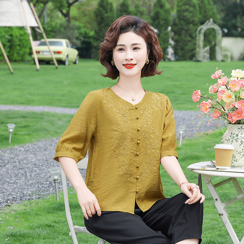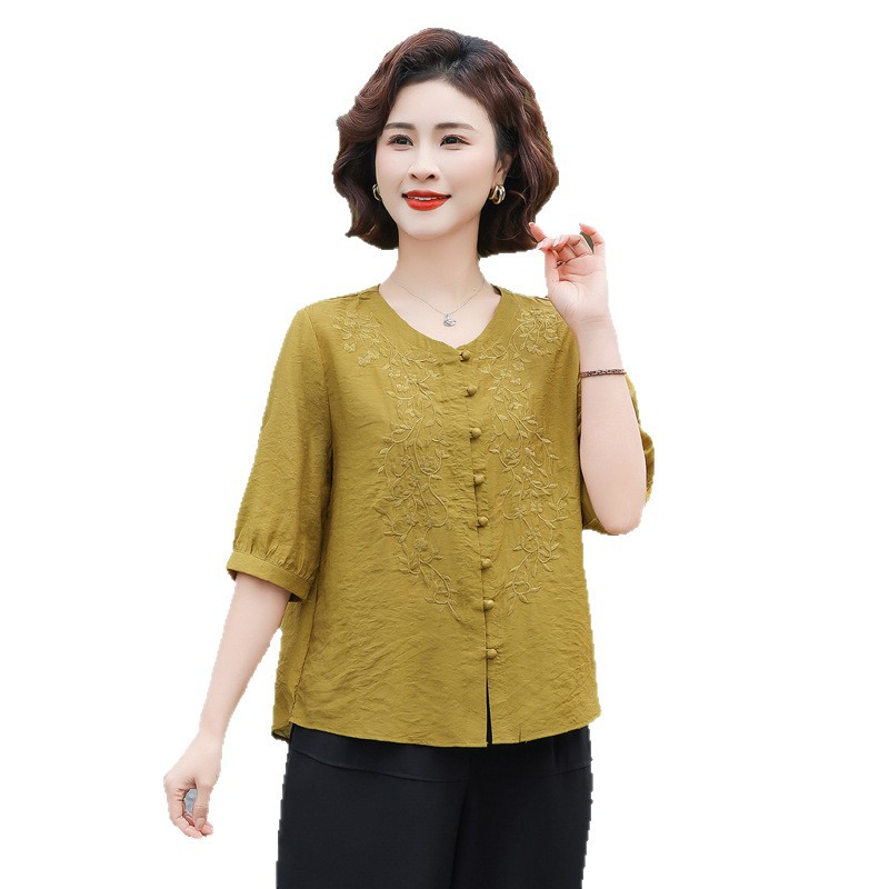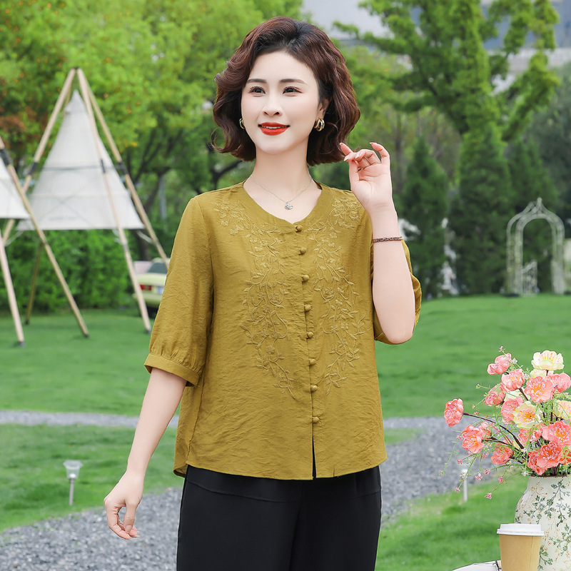 Летний топ с рукавами четверти в стиле ретро для мамы, большой размер, новый стиль, маленькая рубашка, свободная женская футболка среднего и пожилого возраста