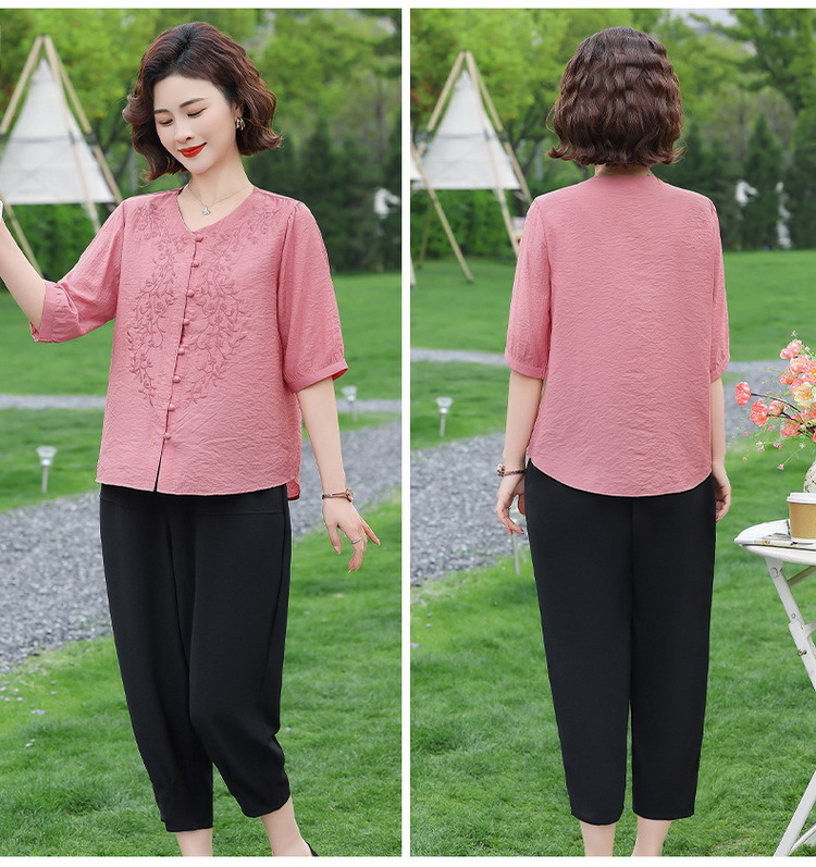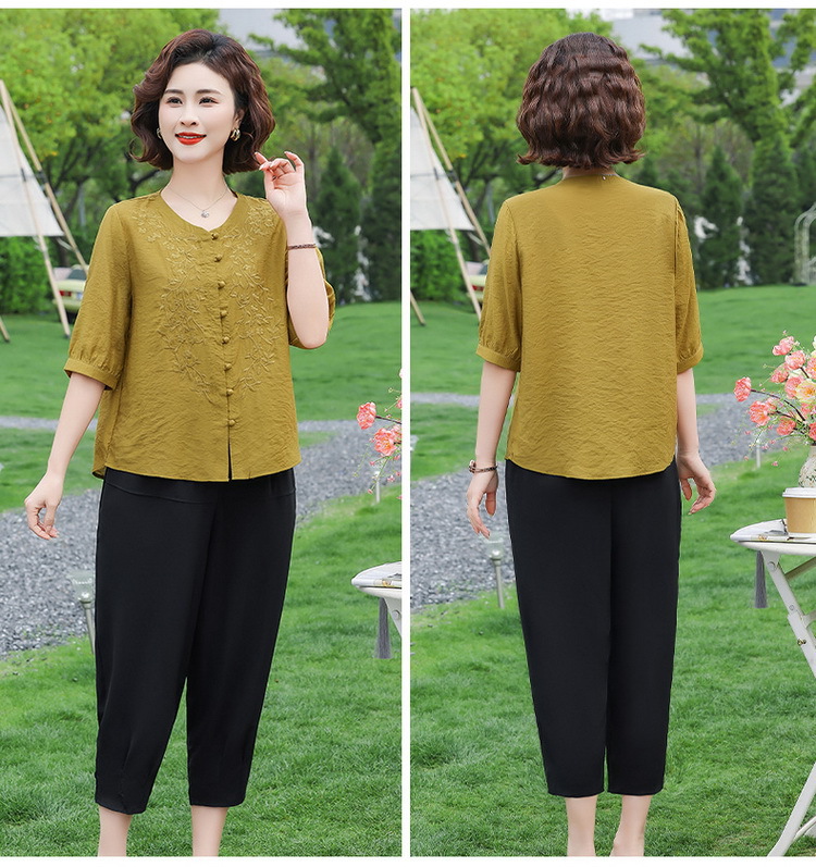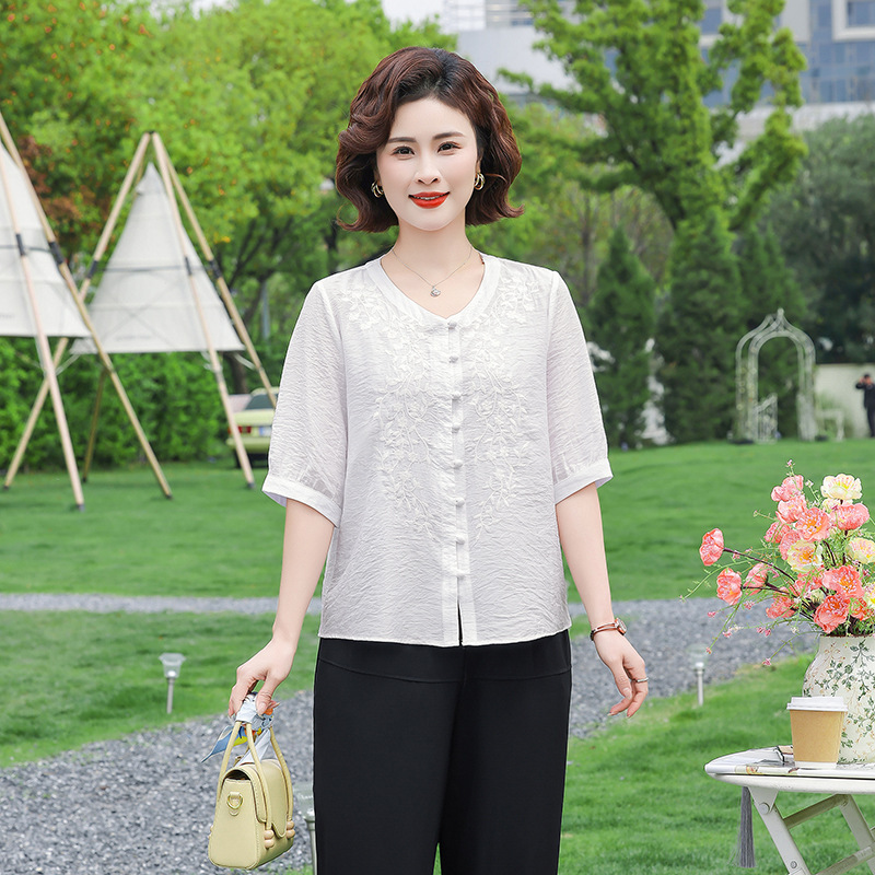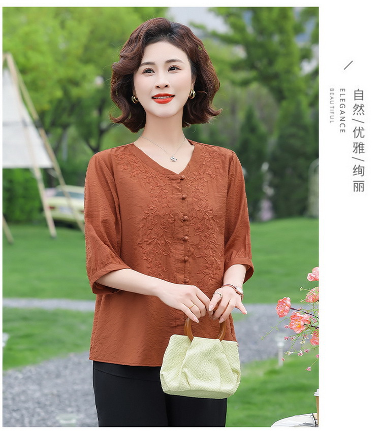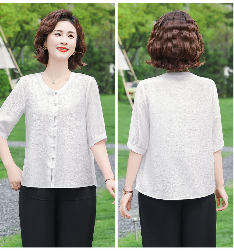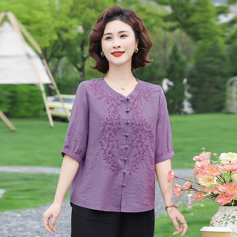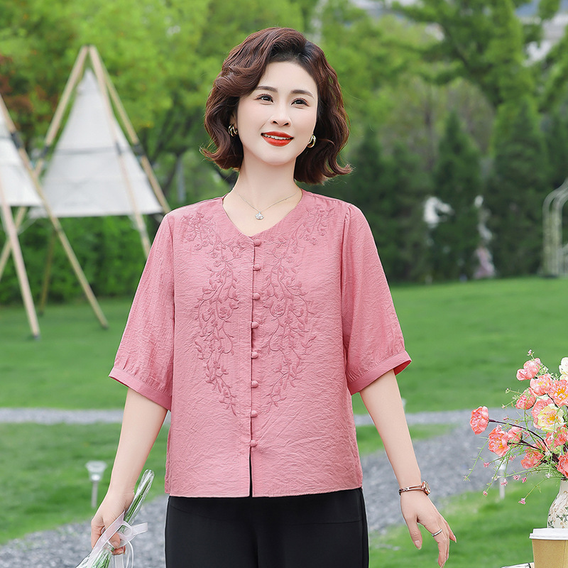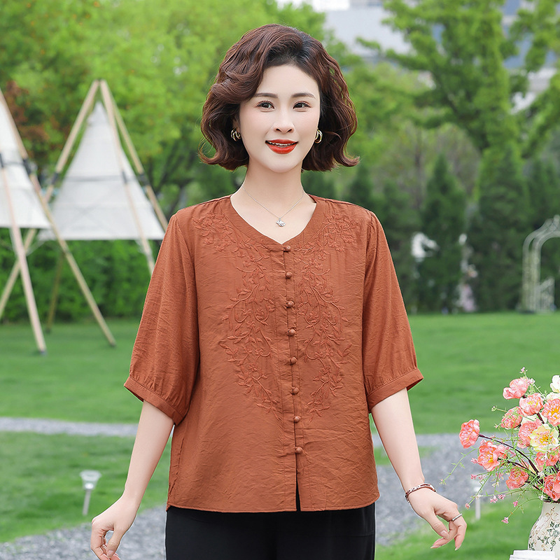 Летний топ с рукавами четверти в стиле ретро для мамы, большой размер, новый стиль, маленькая рубашка, свободная женская футболка среднего и пожилого возраста