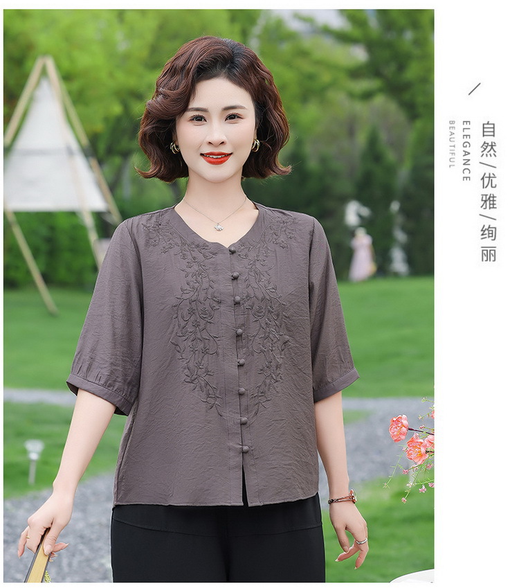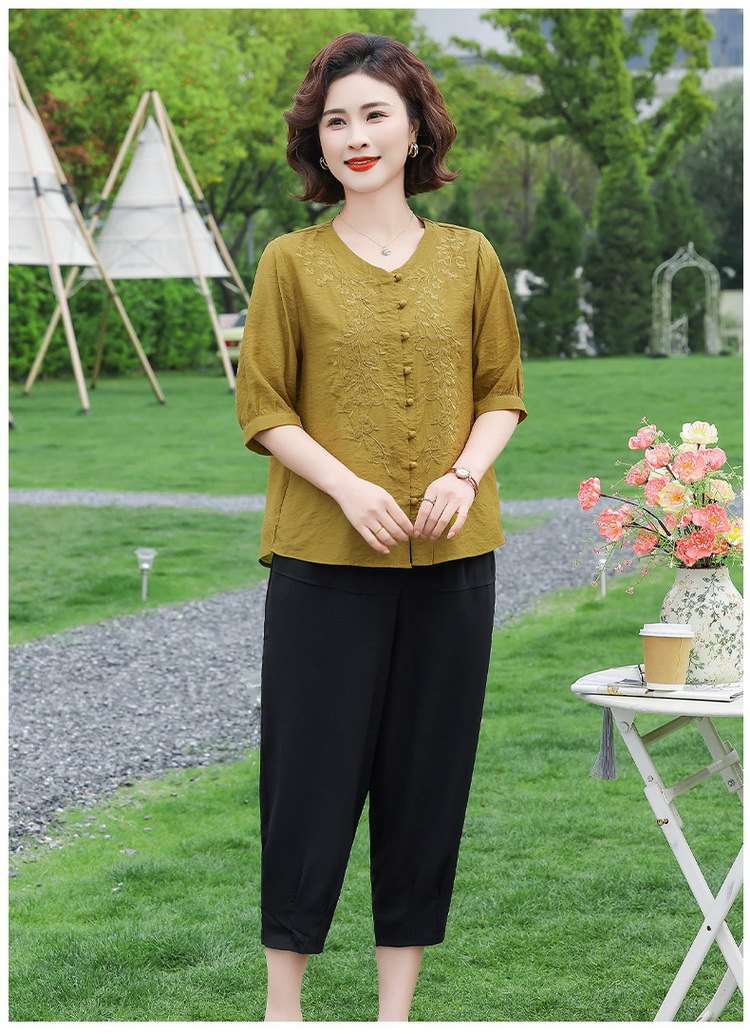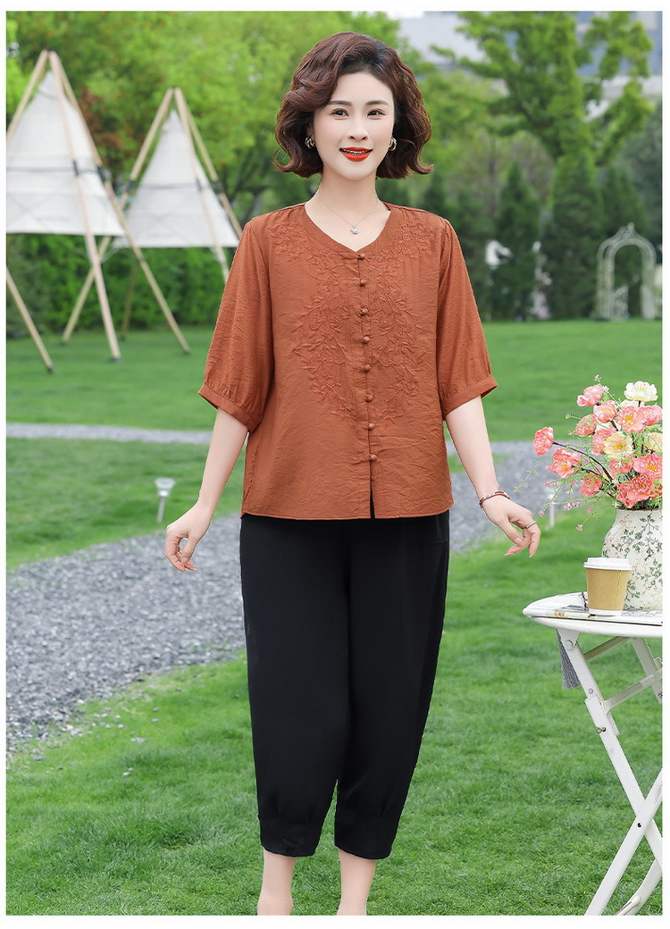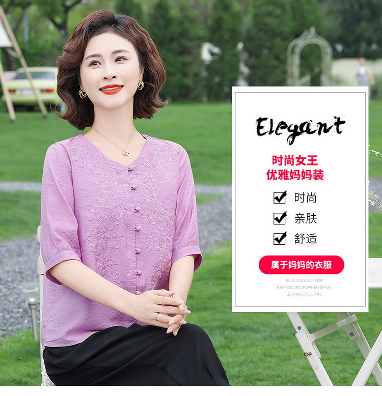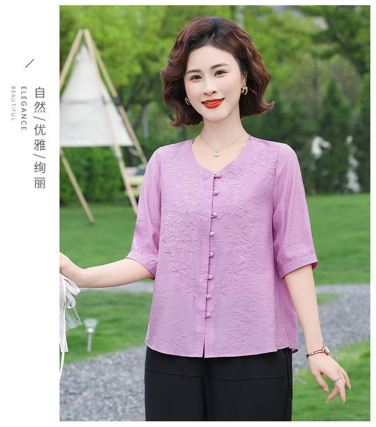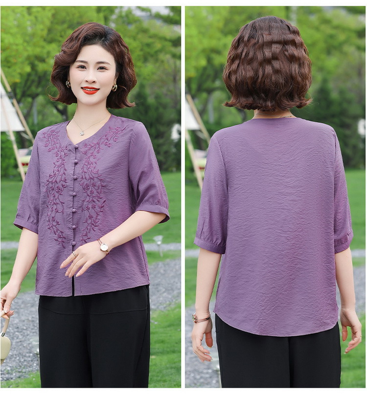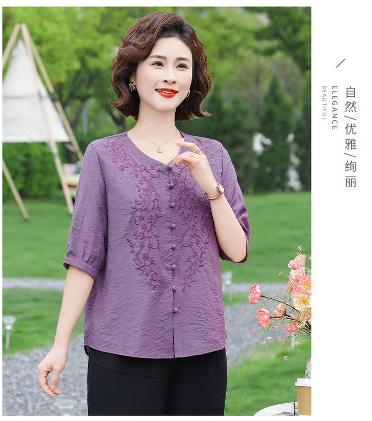 Летний топ с рукавами четверти в стиле ретро для мамы, большой размер, новый стиль, маленькая рубашка, свободная женская футболка среднего и пожилого возраста
