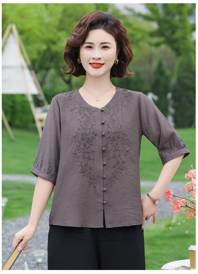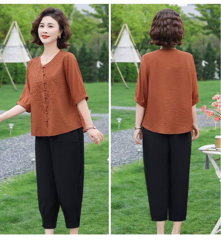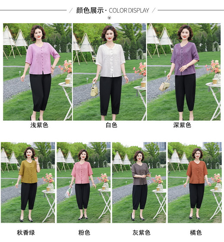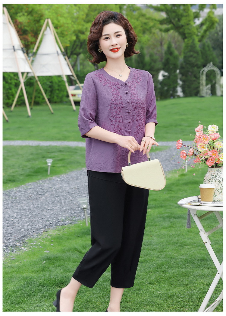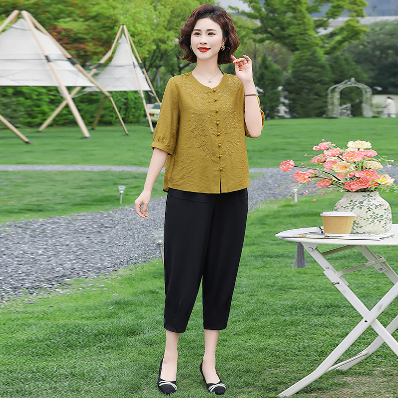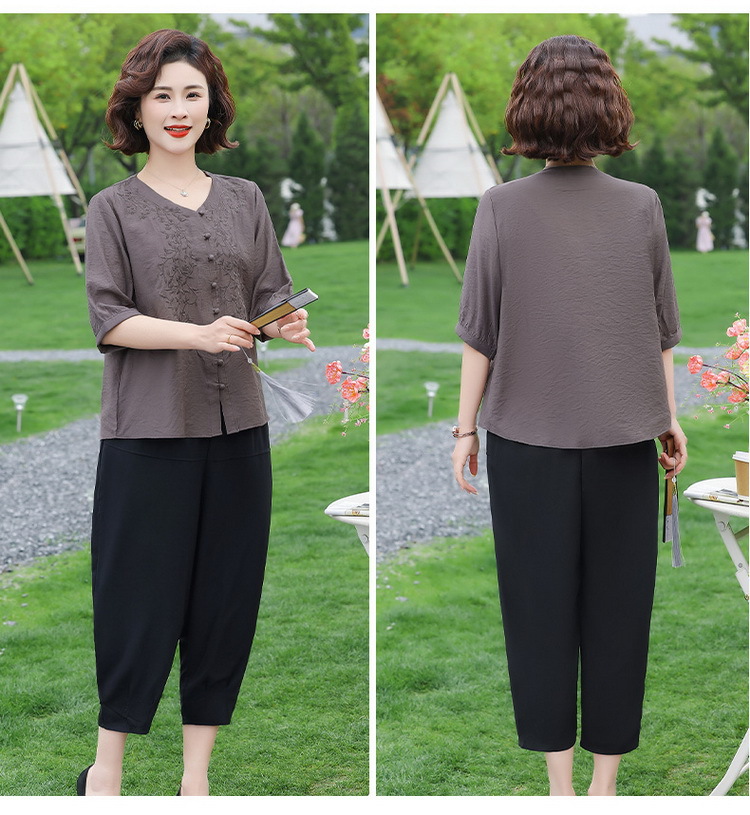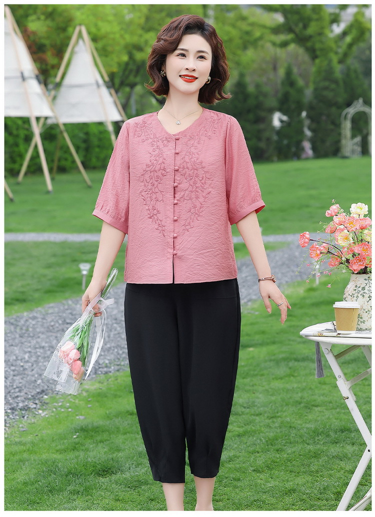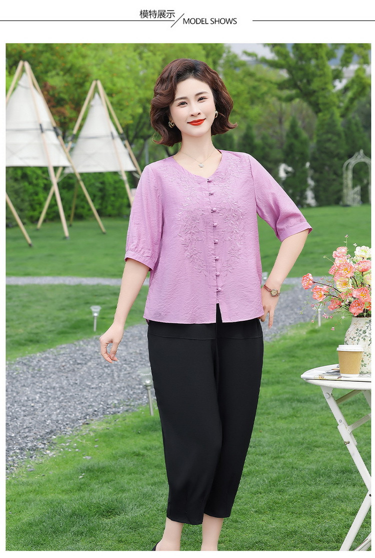 Летний топ с рукавами четверти в стиле ретро для мамы, большой размер, новый стиль, маленькая рубашка, свободная женская футболка среднего и пожилого возраста