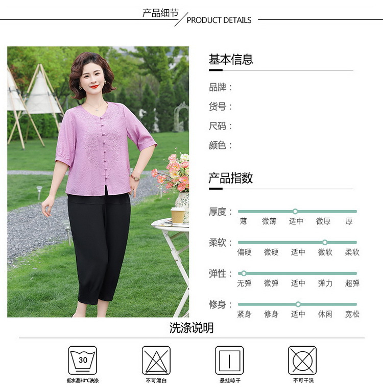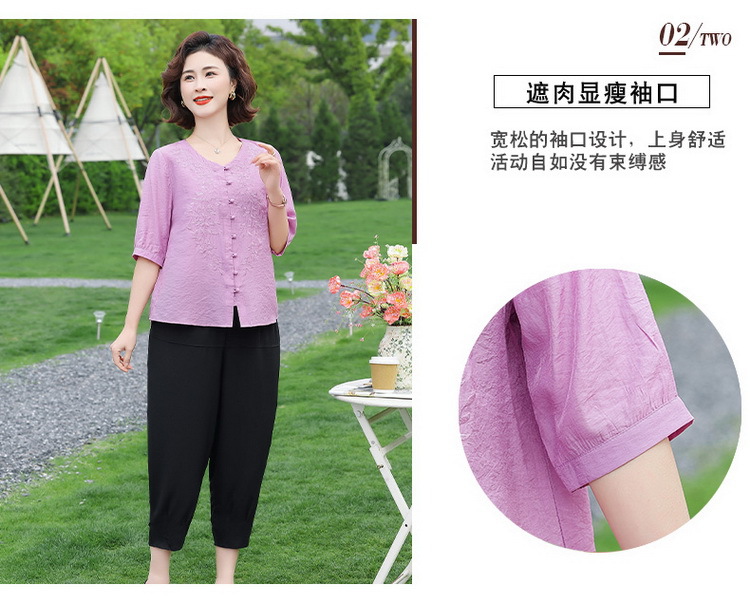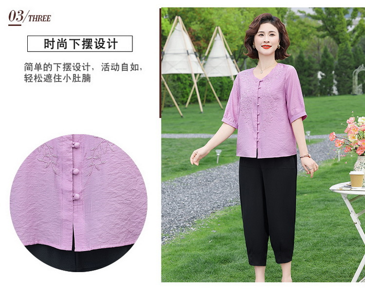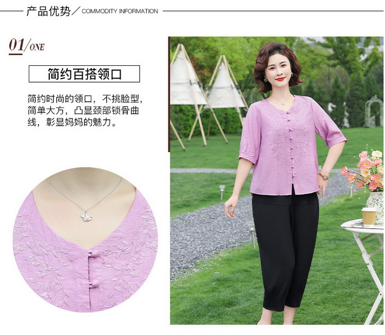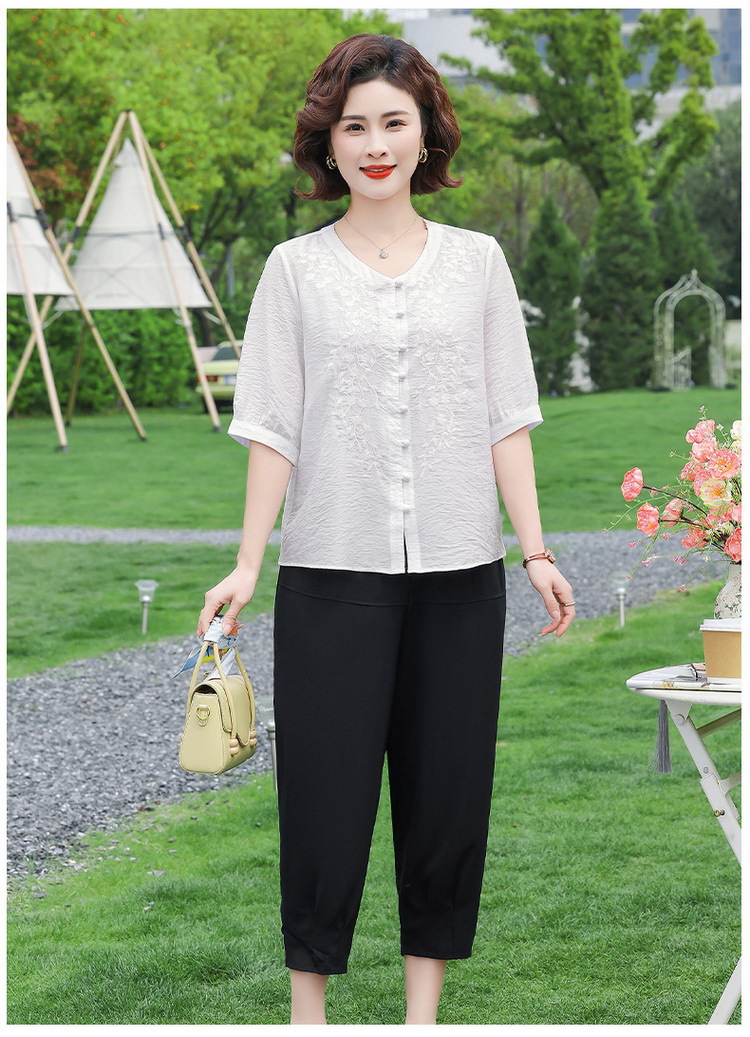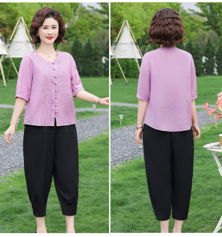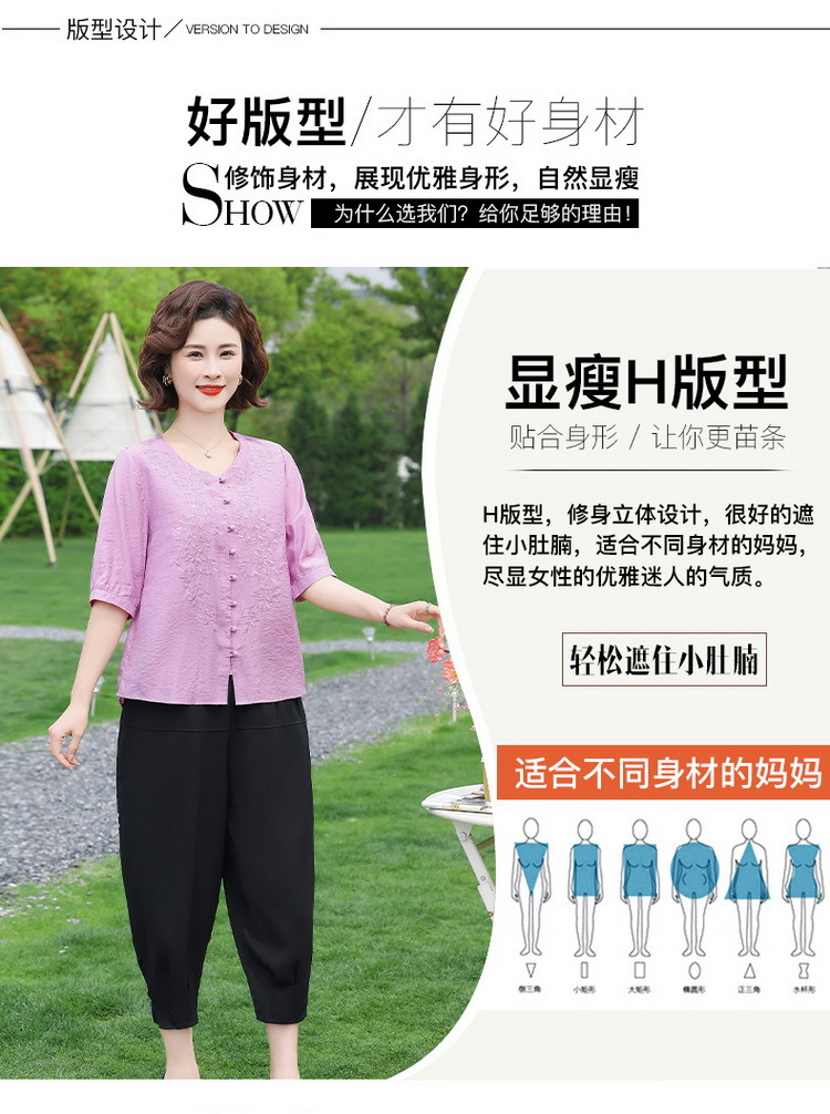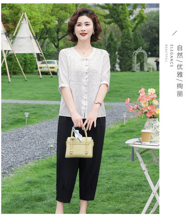 Летний топ с рукавами четверти в стиле ретро для мамы, большой размер, новый стиль, маленькая рубашка, свободная женская футболка среднего и пожилого возраста