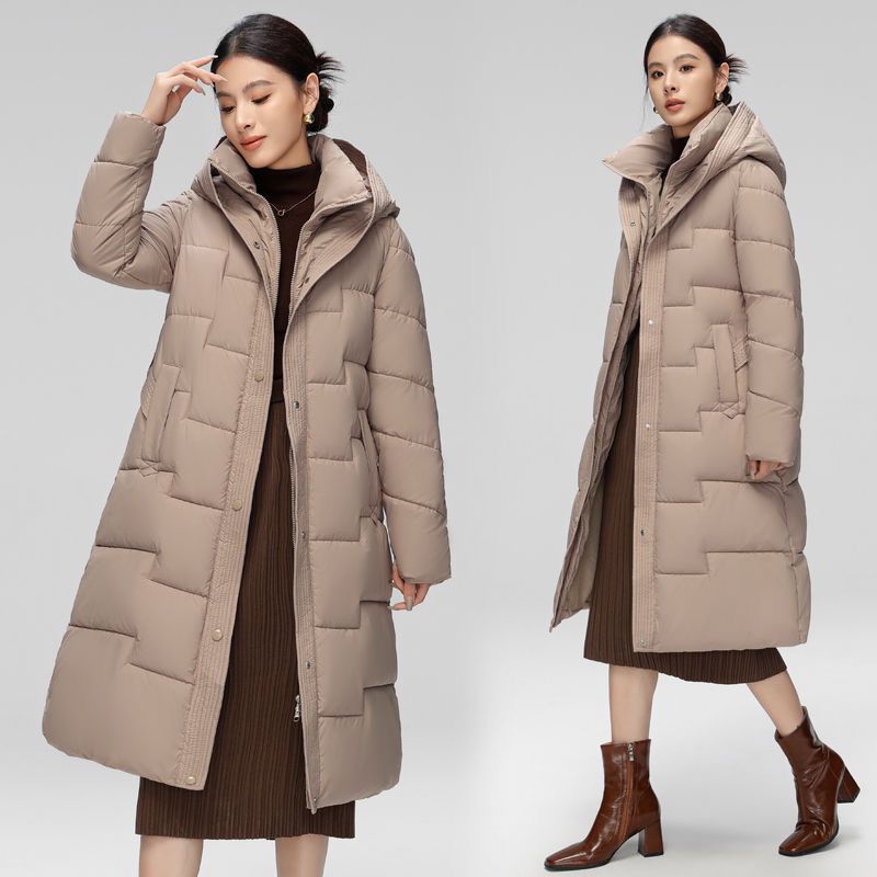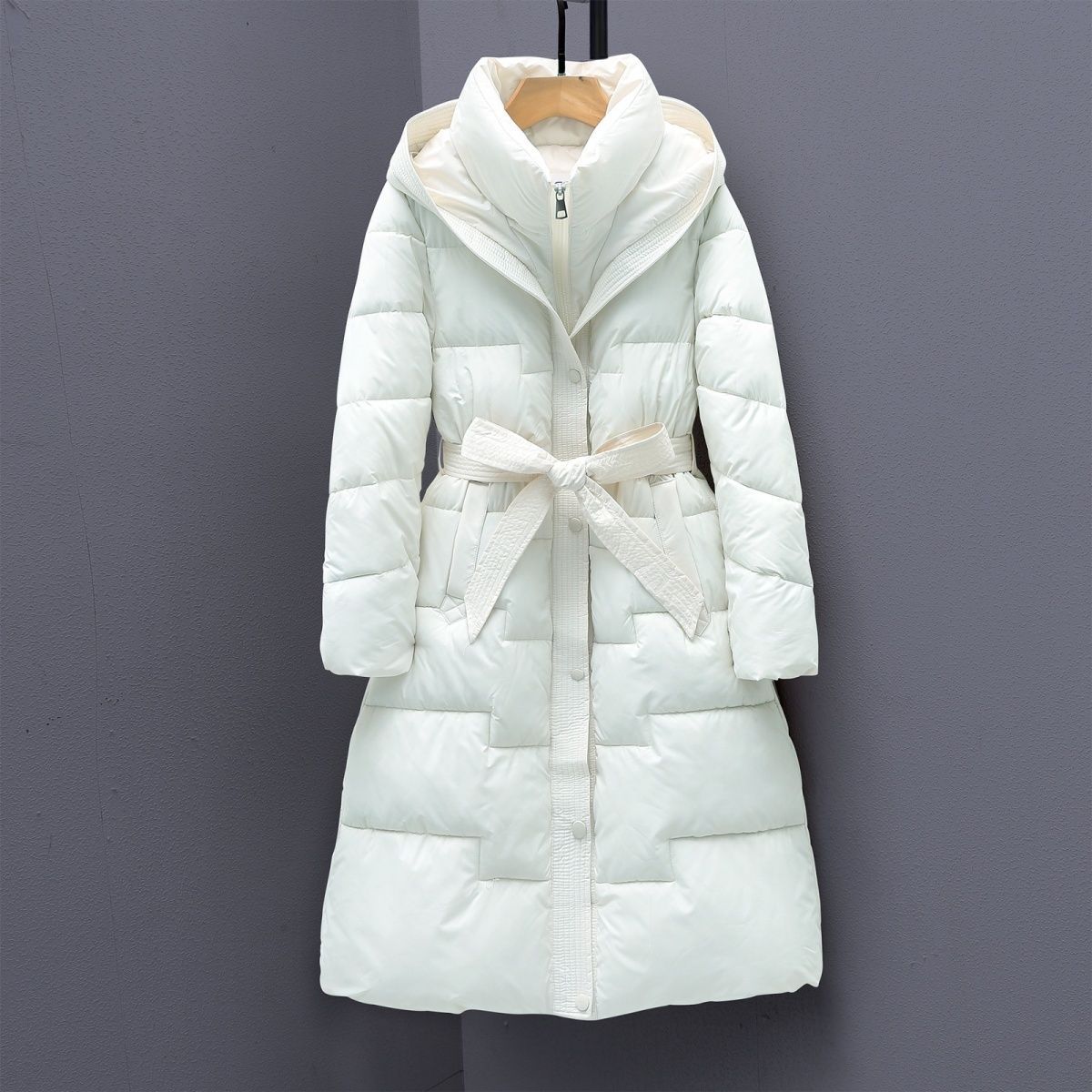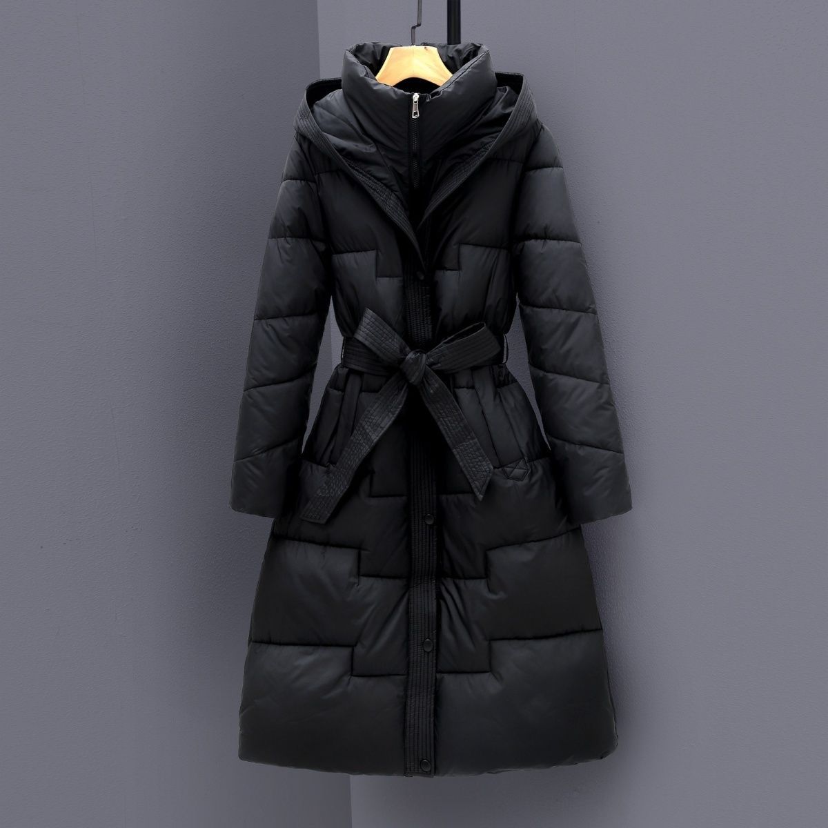 2025 новая пуховая хлопковая верхняя одежда, женская длинная хлопковая верхняя одежда выше колена с капюшоном, утягивающая талию, зимняя утолщенная верхняя одежда, хлопковая верхняя одежда