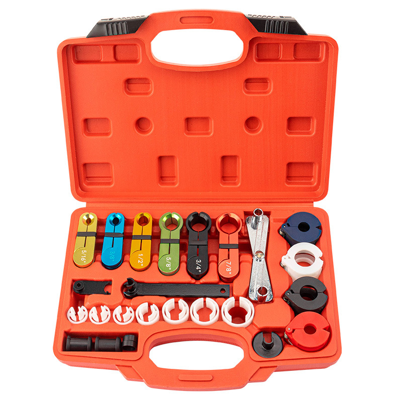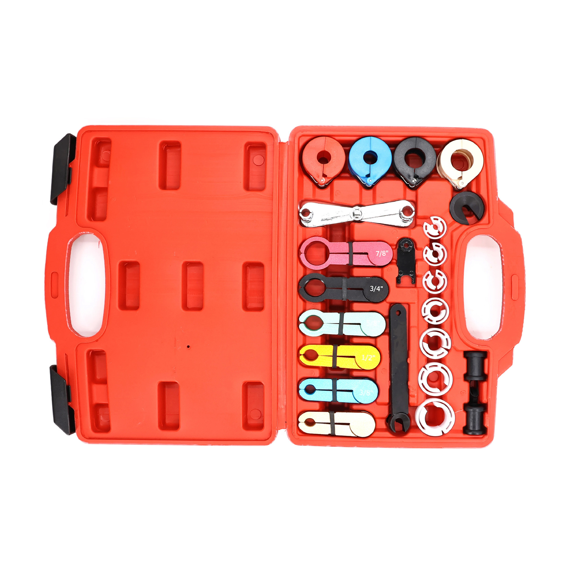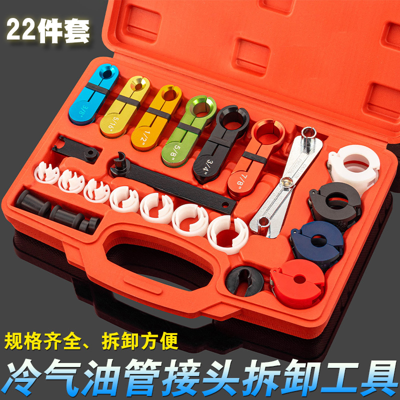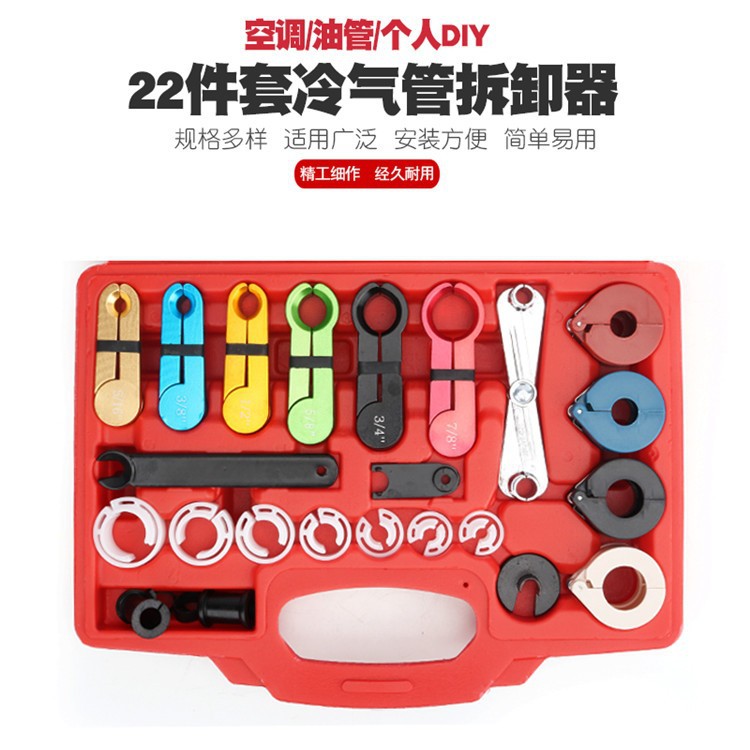 Набор из 22 предметов для снятия трубок автомобильного кондиционера.