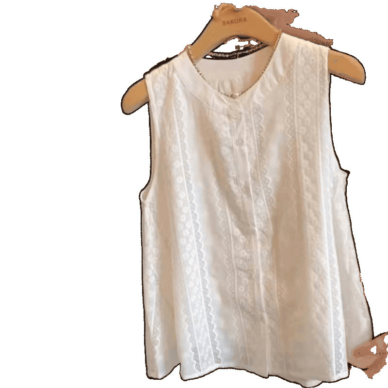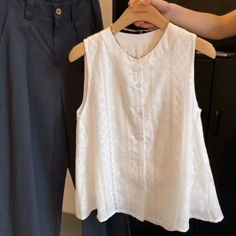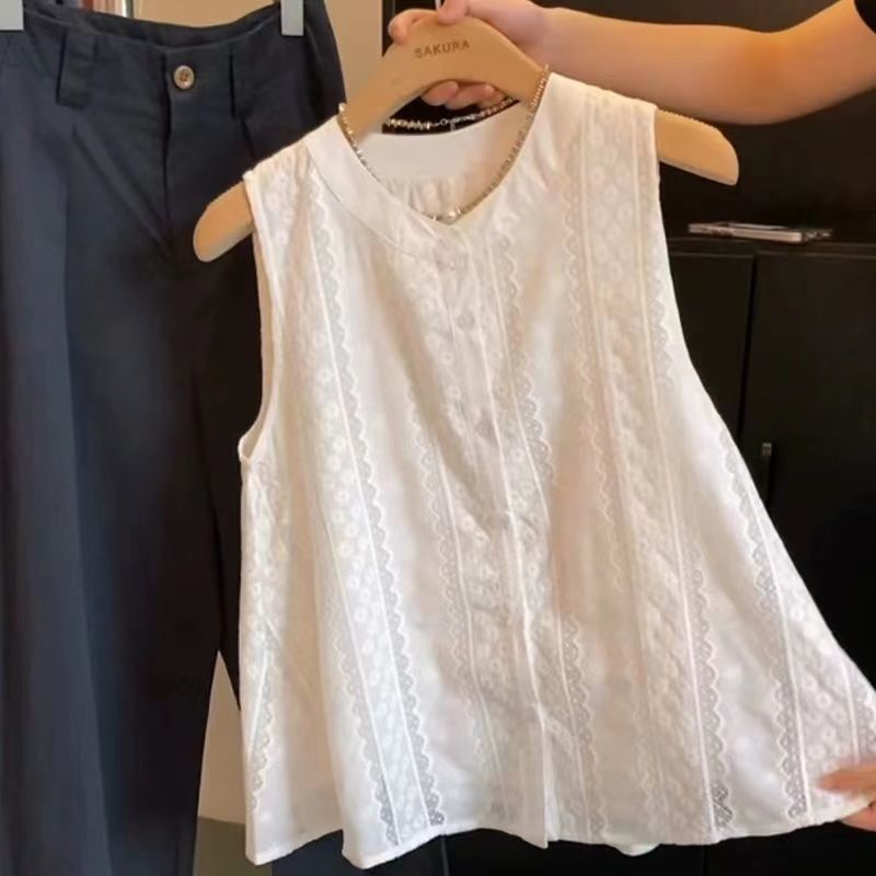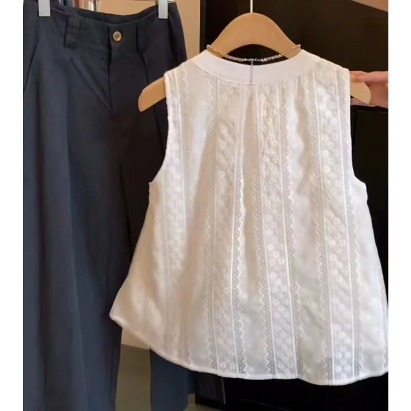 Рекомендуется для самостоятельного ношения ~ белая безрукавка с французской кружевной вышивкой для женщин, летняя новинка 2025 года, свободный топ
