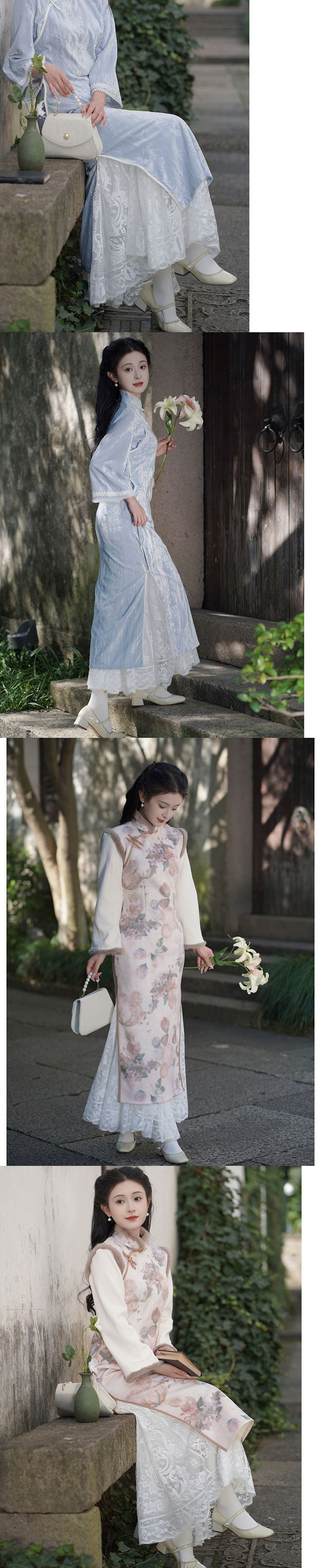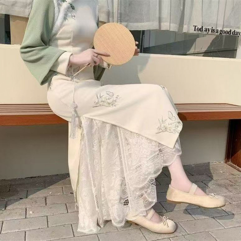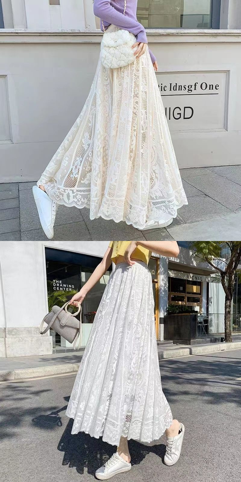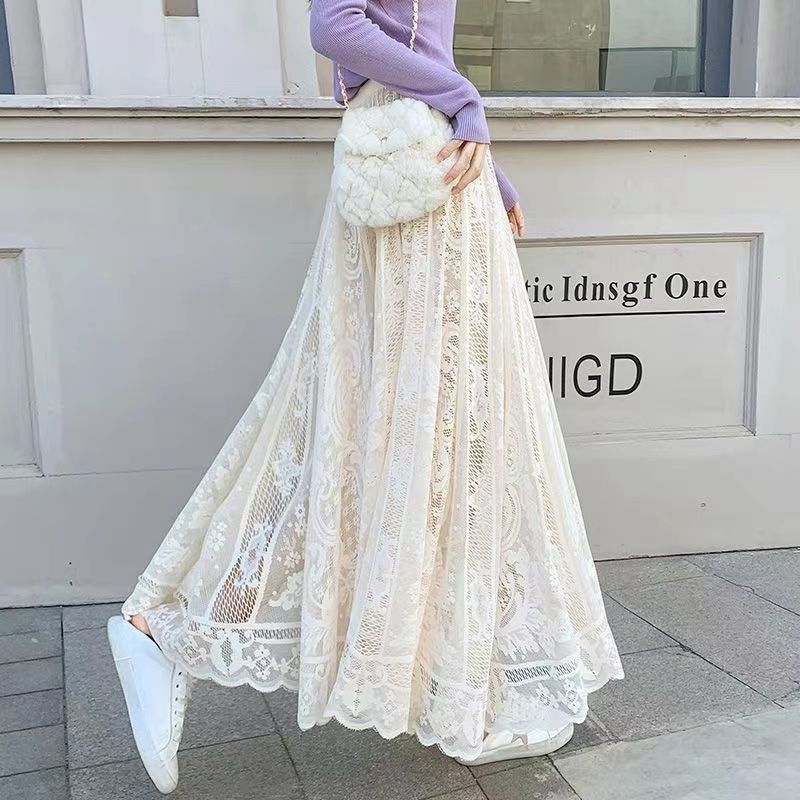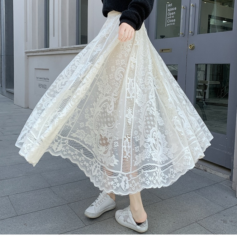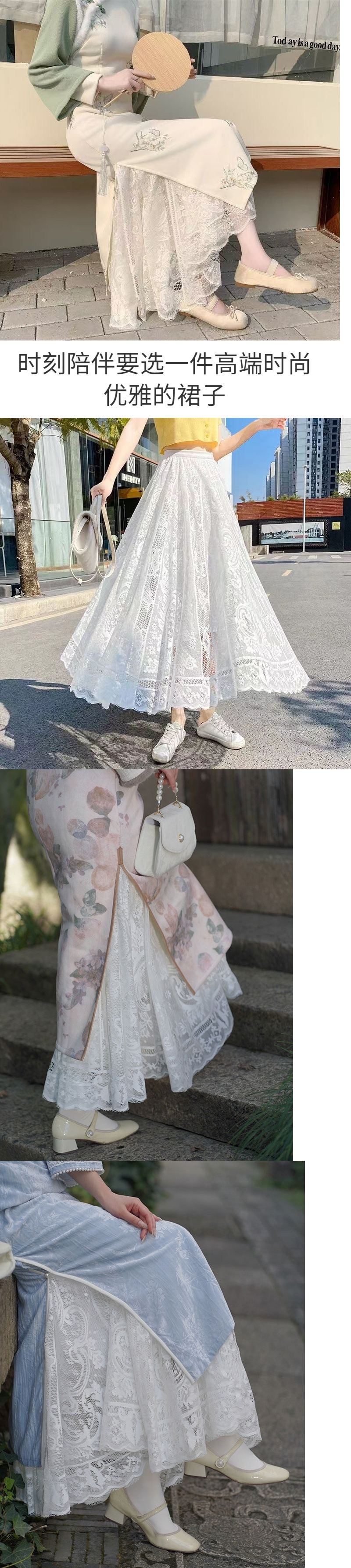 Плюс-сайз чонсам с высокой талией, кружевная юбка-петтикоат с ажурными вставками, новая универсальная юбка-миди с длинной пышной юбкой.