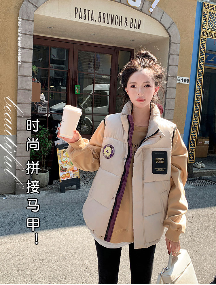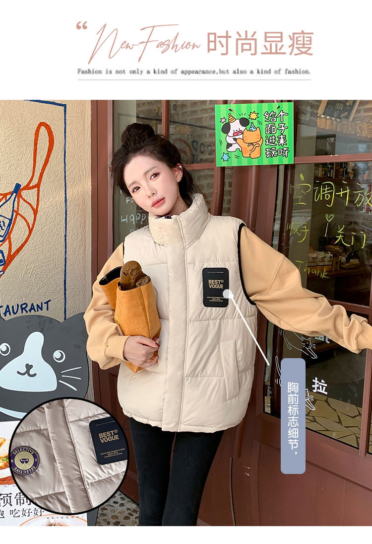 Утолщенный жилет из хлопчатобумажной ткани с цветными блоками для женщин, осень-зима, европейские товары 2025, новая мода, свободный универсальный жилет, тренд