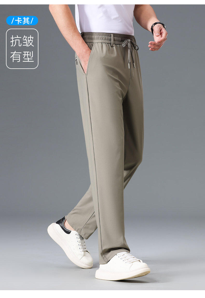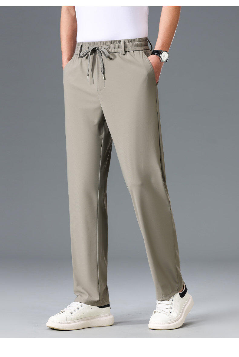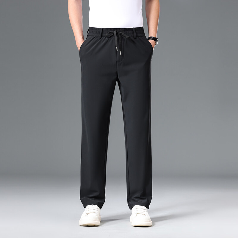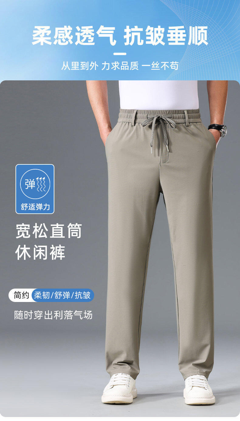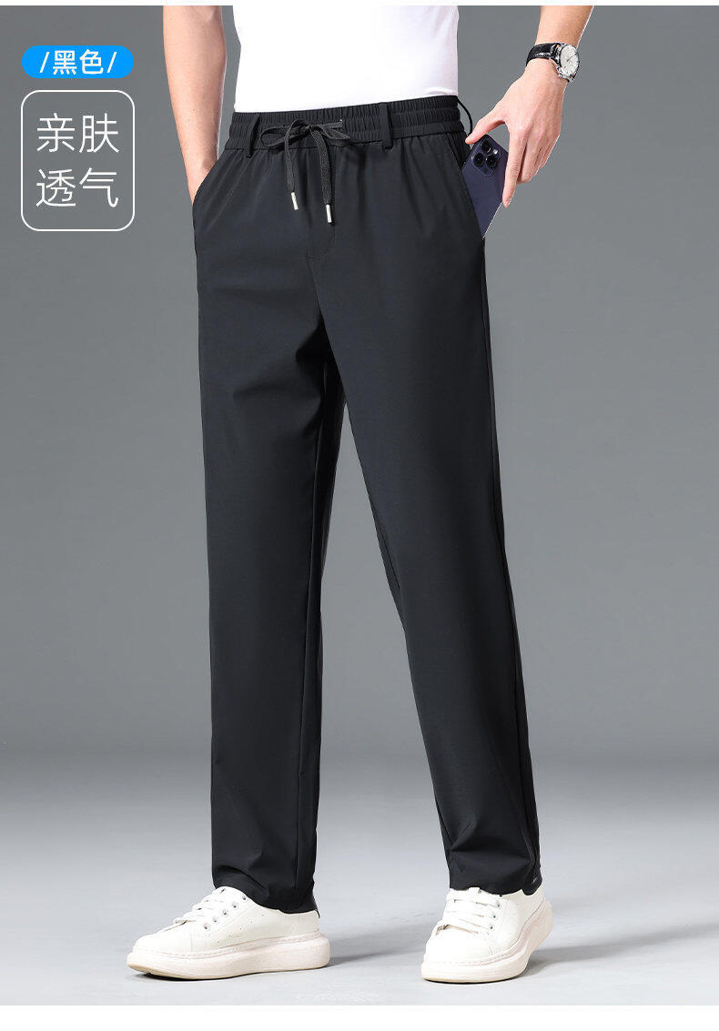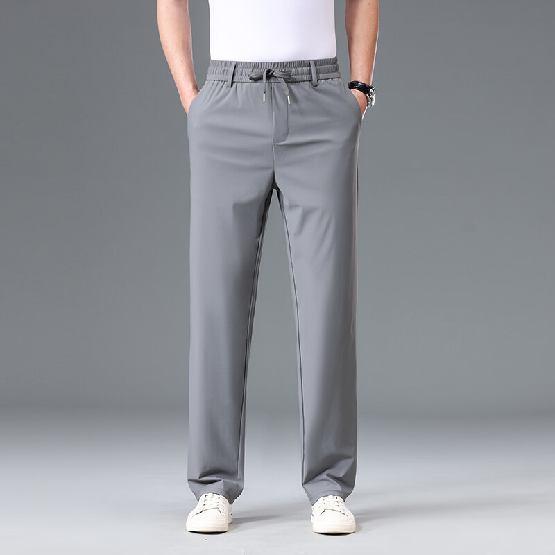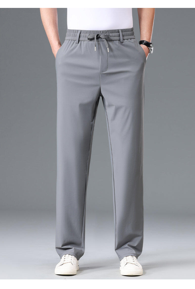 Летние мужские брюки для бизнес-кэжуал 2025 года, высокая эластичная тонкая резинка на талии, прямой крой, универсальный серый и черный цвета