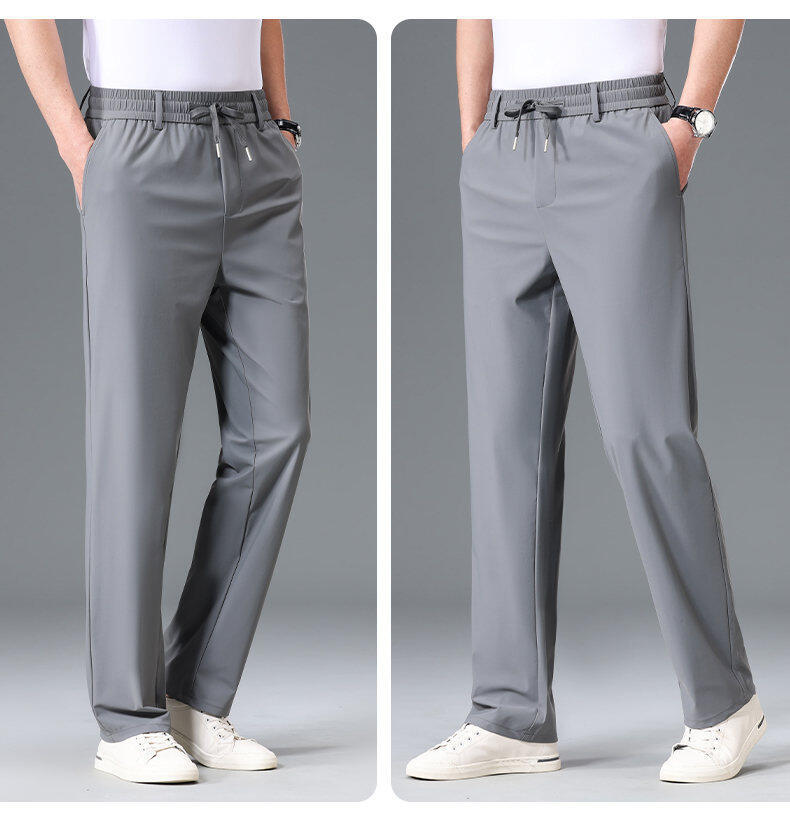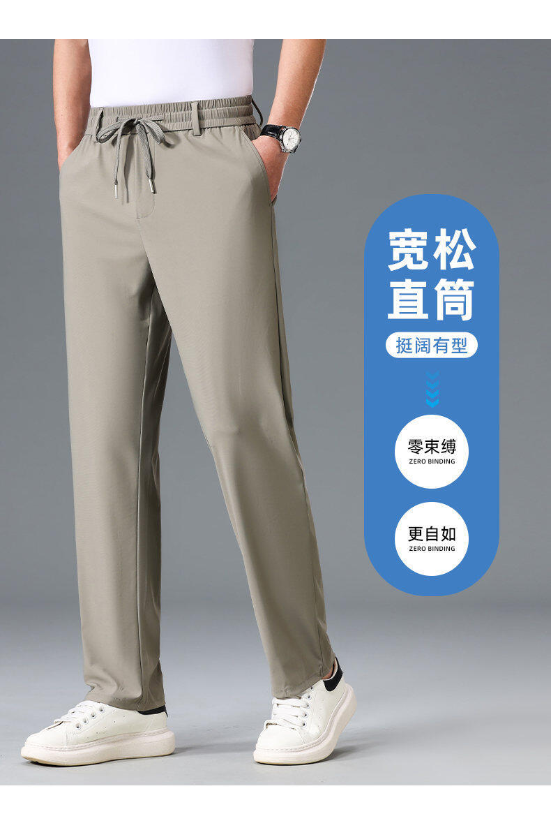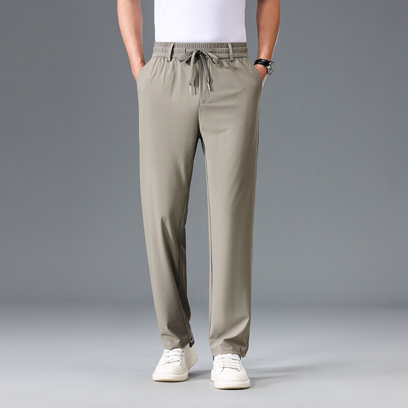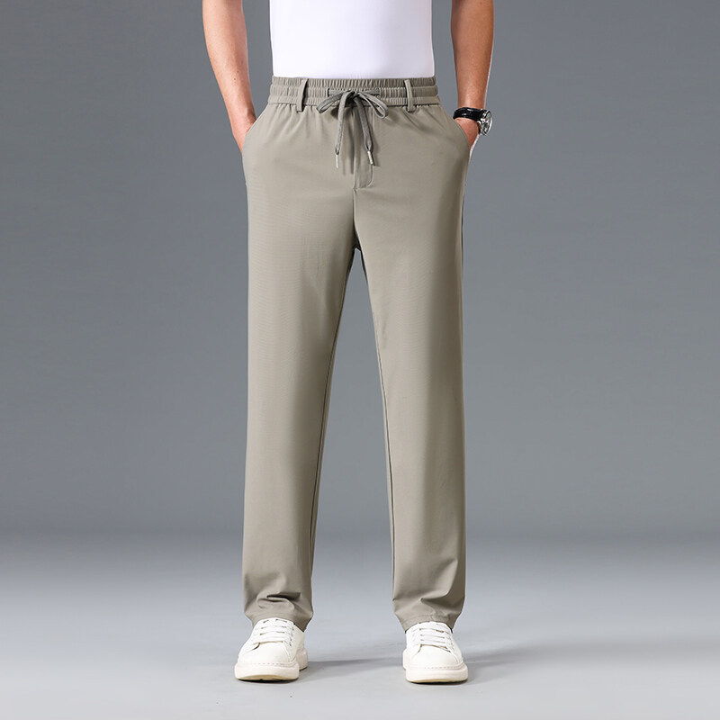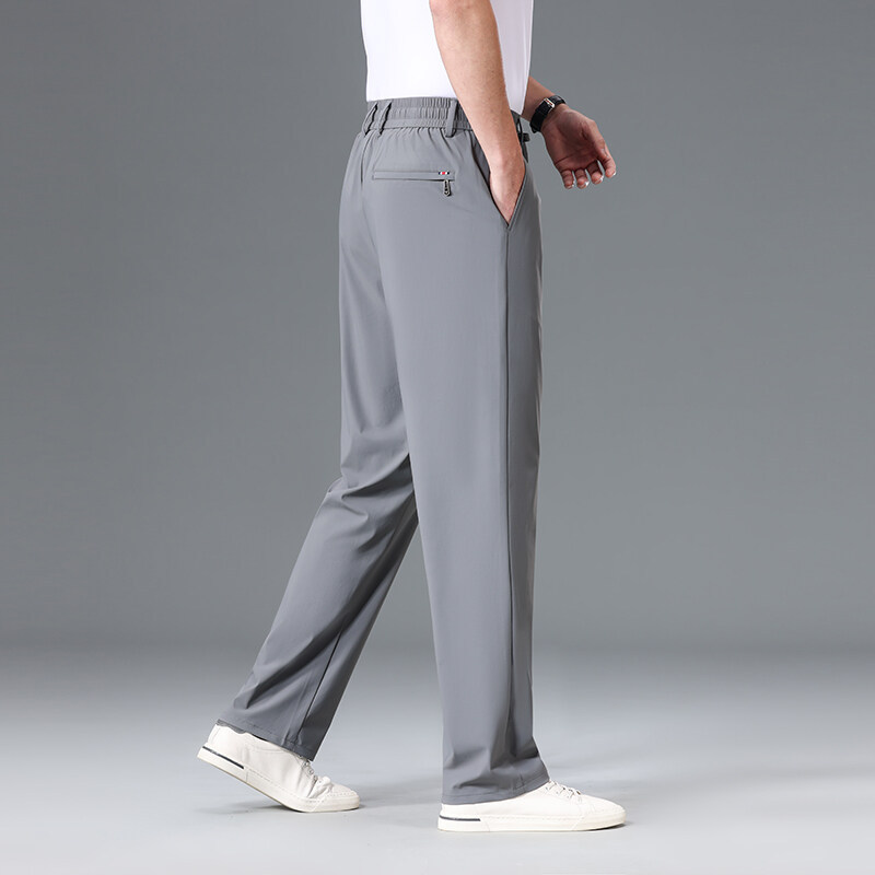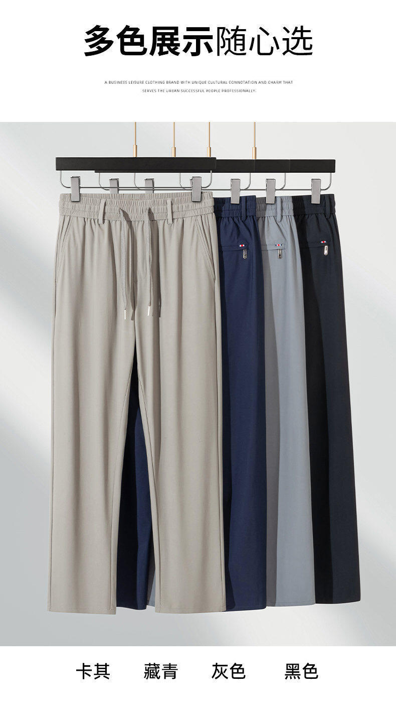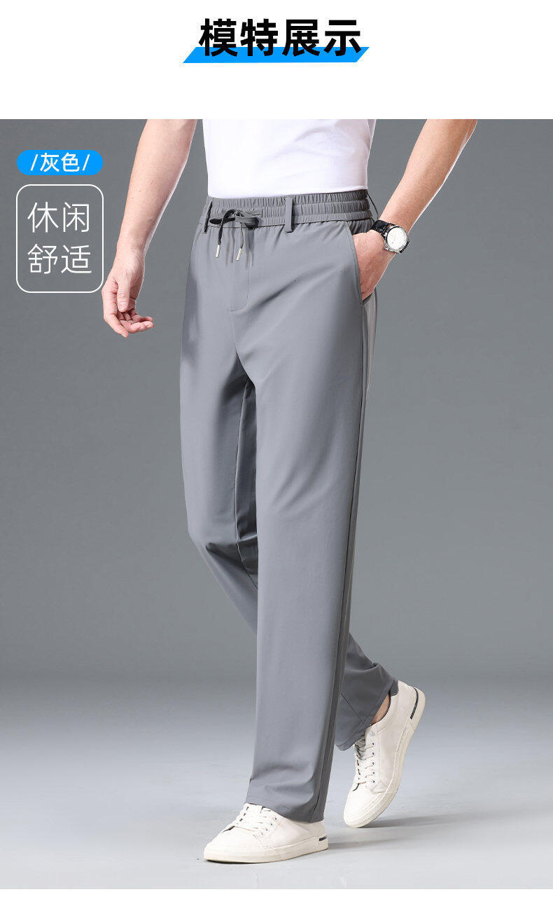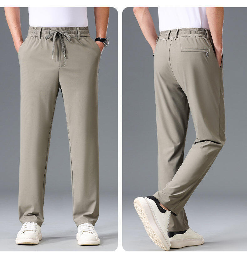 Летние мужские брюки для бизнес-кэжуал 2025 года, высокая эластичная тонкая резинка на талии, прямой крой, универсальный серый и черный цвета