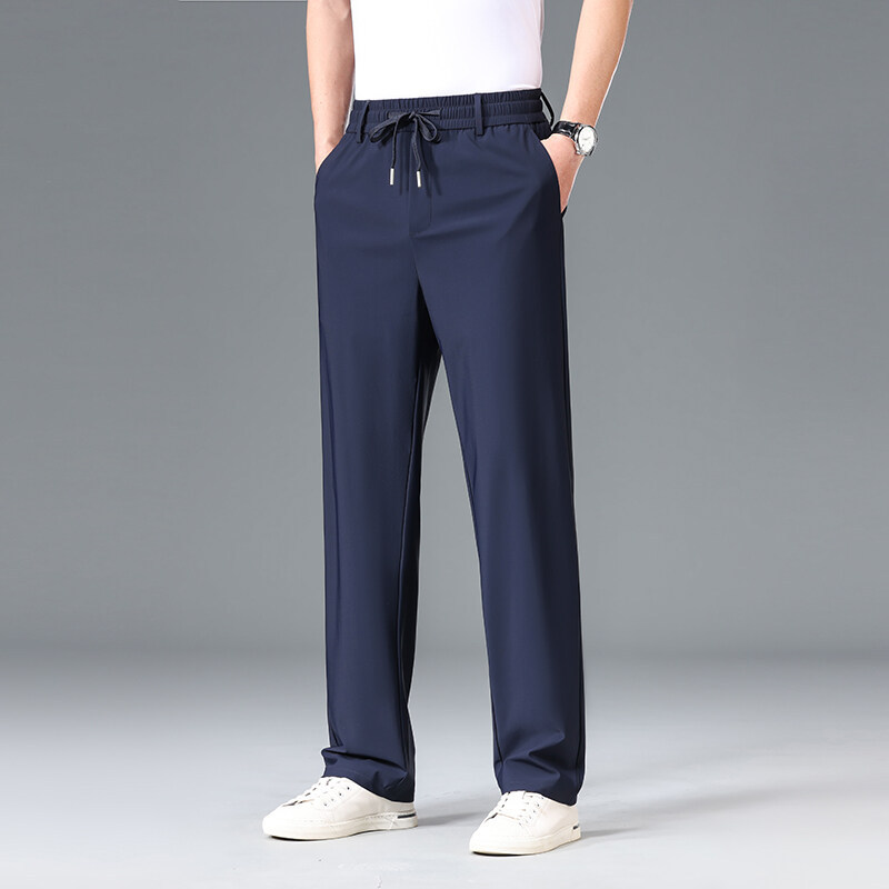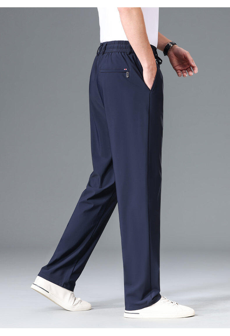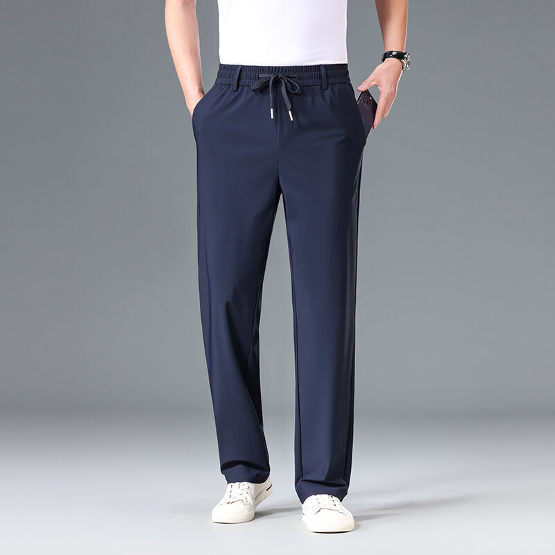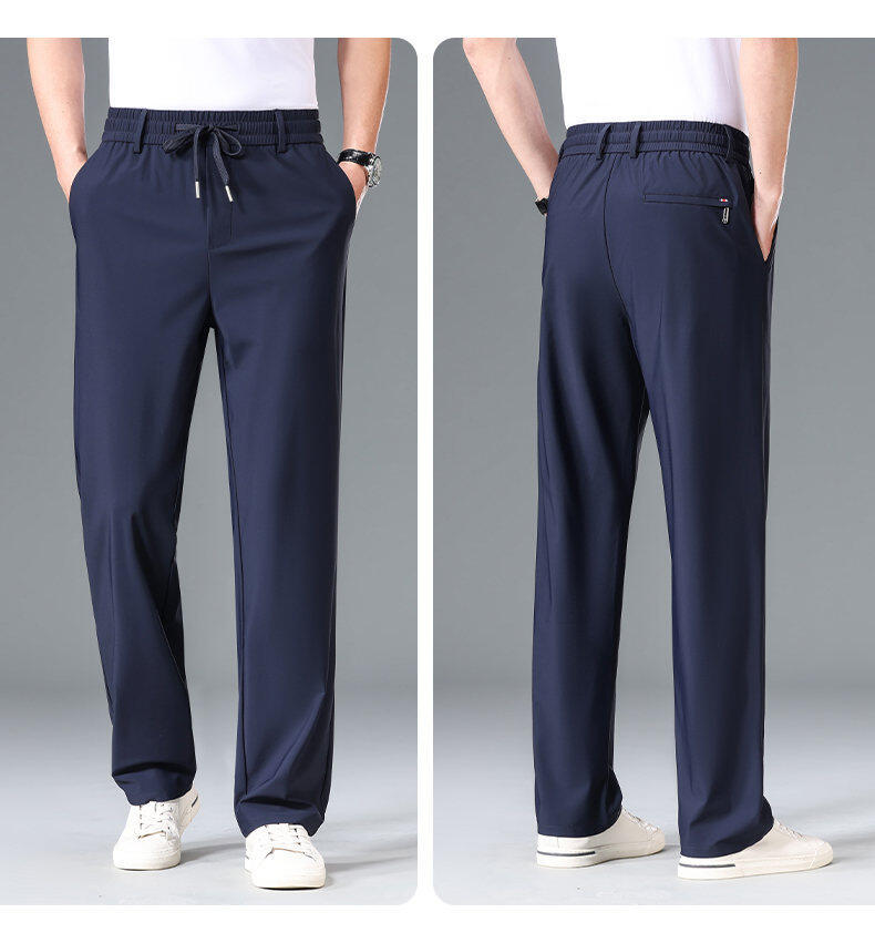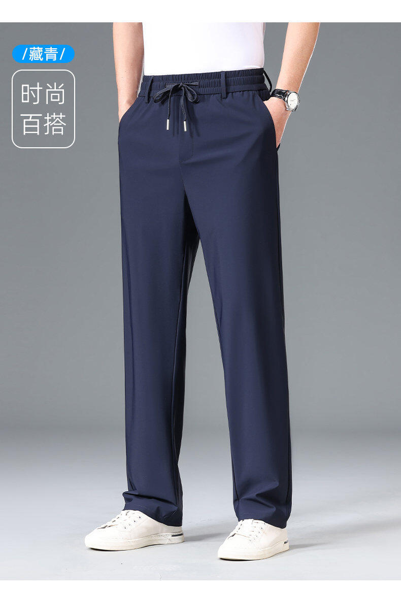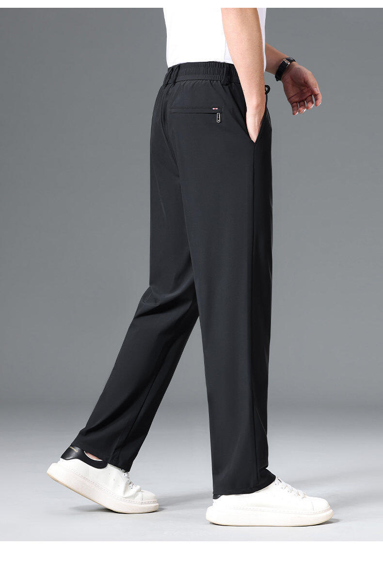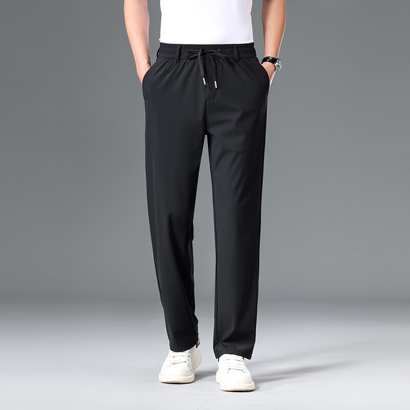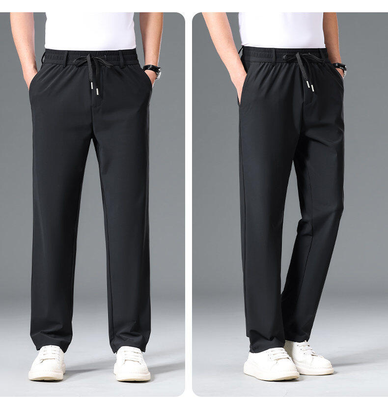 Летние мужские брюки для бизнес-кэжуал 2025 года, высокая эластичная тонкая резинка на талии, прямой крой, универсальный серый и черный цвета