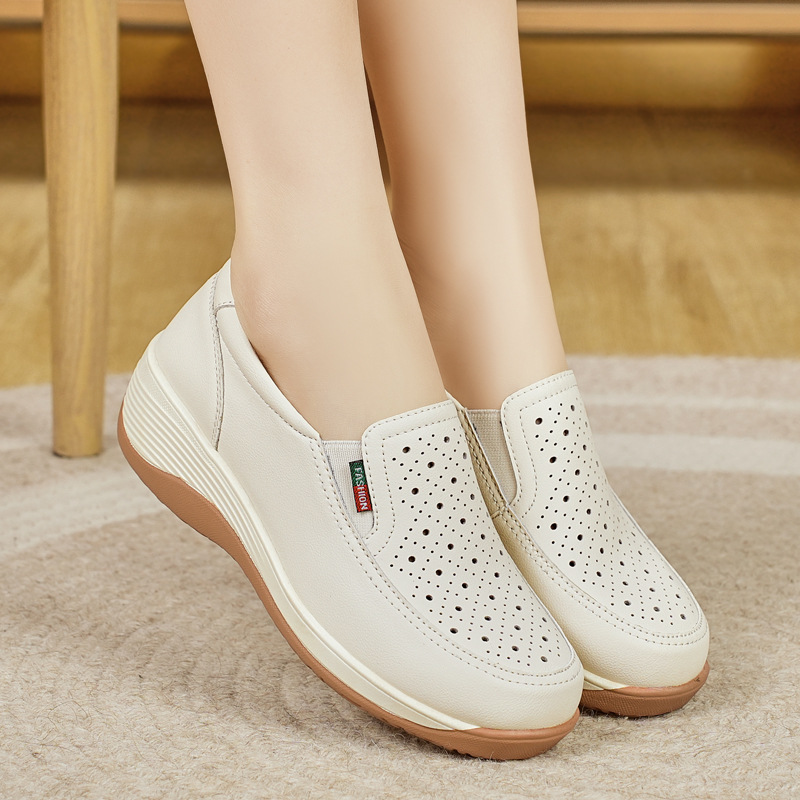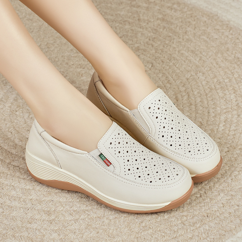Женские сабо из натуральной кожи, весна-лето 2024, новая дорожная обувь для мам, туфли на платформе с толстой подошвой, дышащая повседневная обувь с вырезами