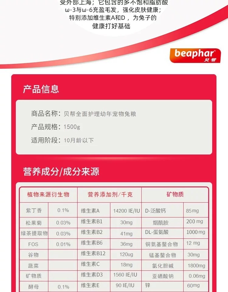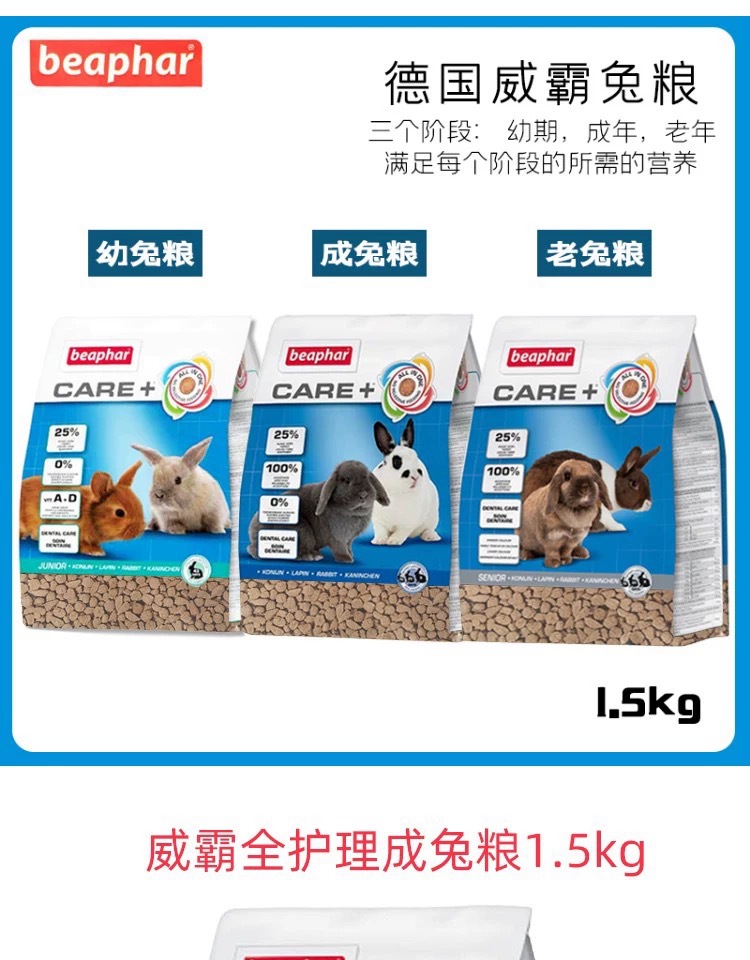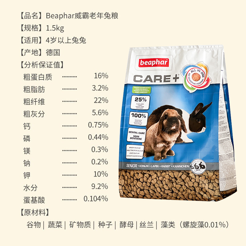 Beaphar корм для молодых кроликов, корм для взрослых кроликов, питание для пожилых людей с высоким содержанием клетчатки, красота волос, зубы, корм для кроликов, 1,5 кг, немецкий Beaphar