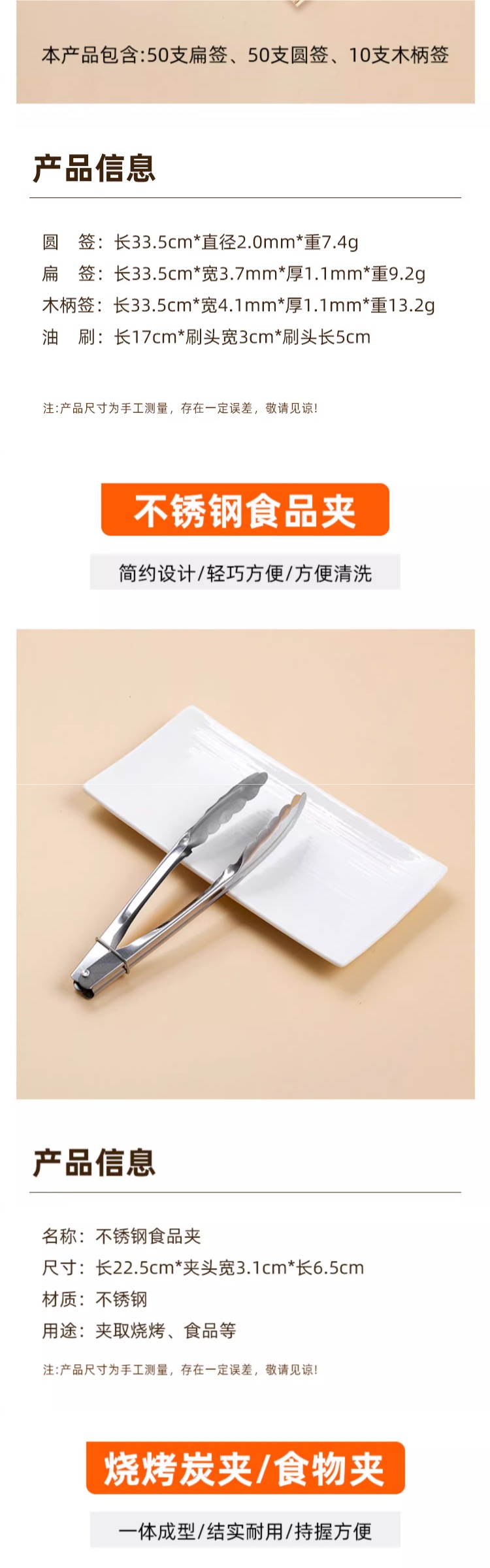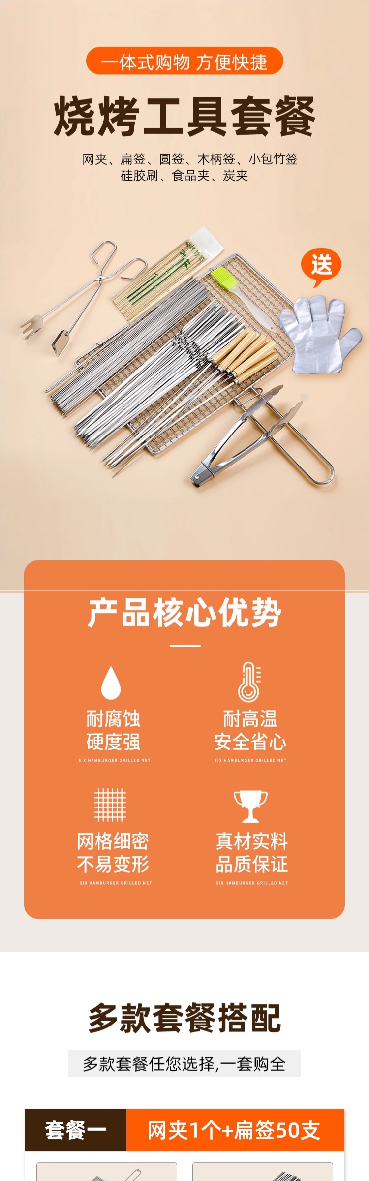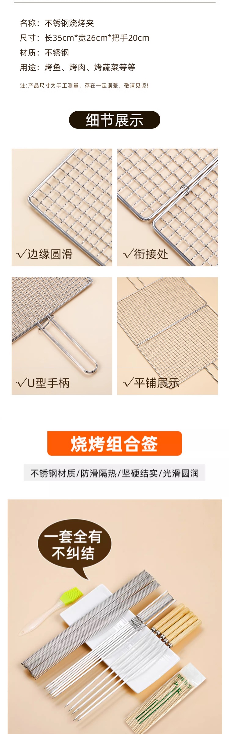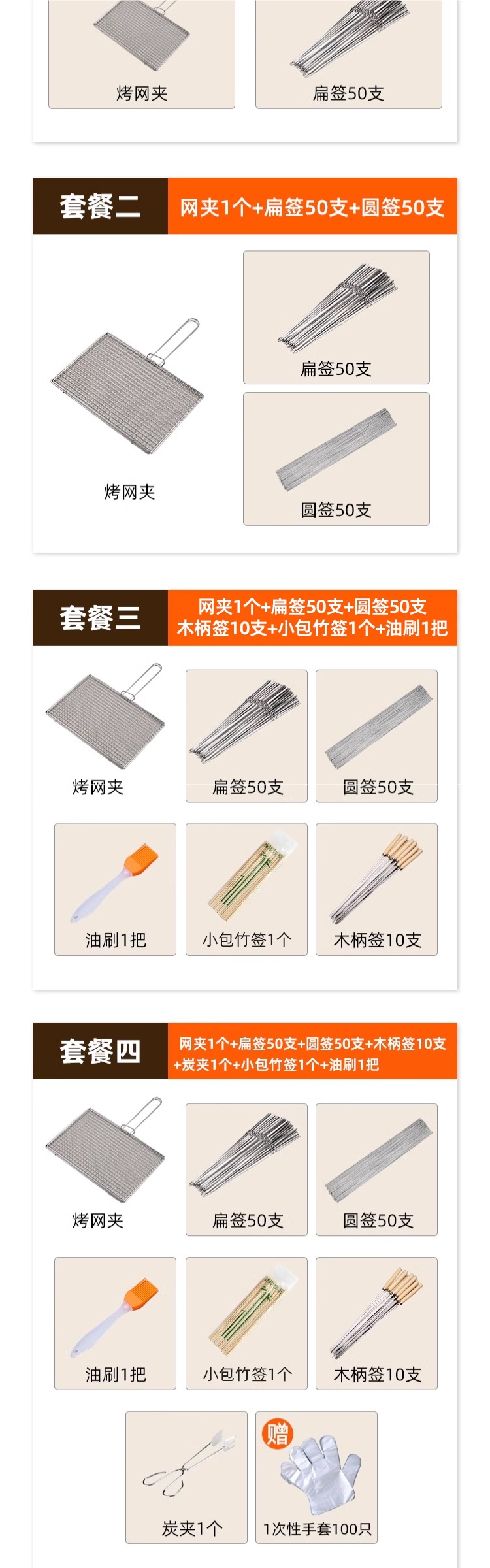 [Круглый знак] 30 см в длину, толщина 1,5 мм, 50 штук.; Пакет один; Пакет 2; [Рекомендация для бизнеса] Третий пакет; Многофункциональный зажим для гриля.; 34 см в длину и 22 см в ширину (в расширенном виде — не 304 — не рекомендуется); [материал 304] длина 32 см, ширина 22 см (большой размер); Плоские палочки длиной 30 см, шириной 3,6 мм и толщиной 1,0 мм, 50 штук.; Деревянная ручка из нержавеющей стали - длина 35 см, ширина 4,0 мм, толщина 1,0 мм, 50 штук.; Пакет четвертый