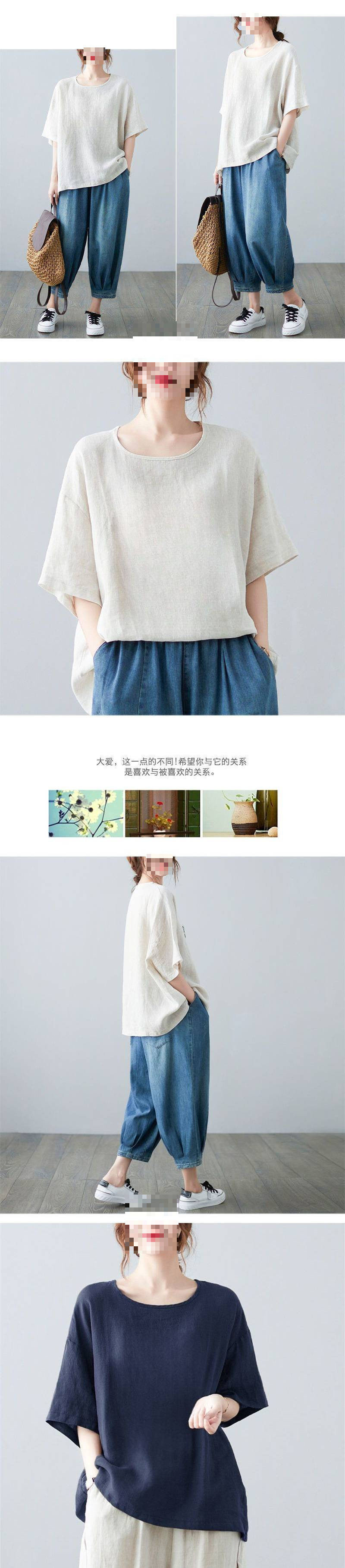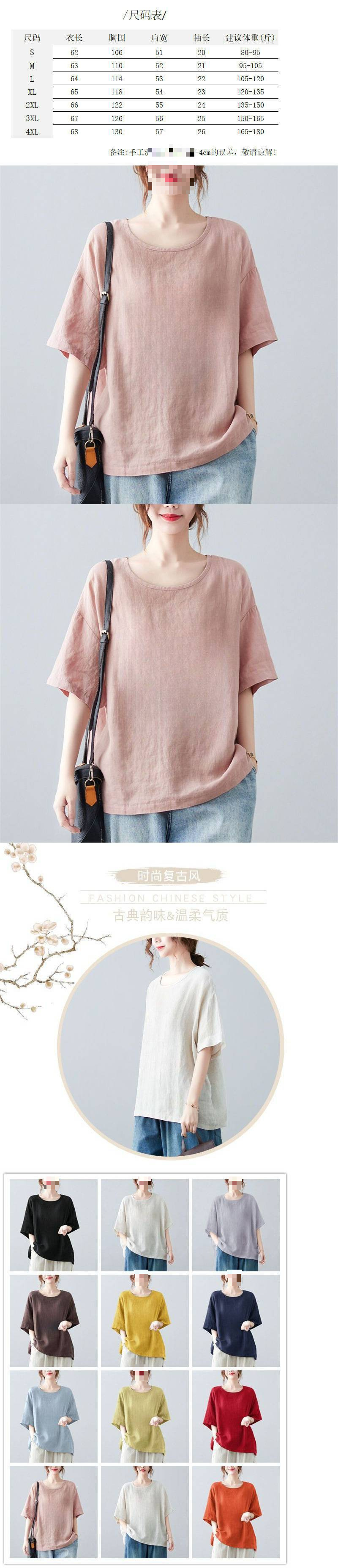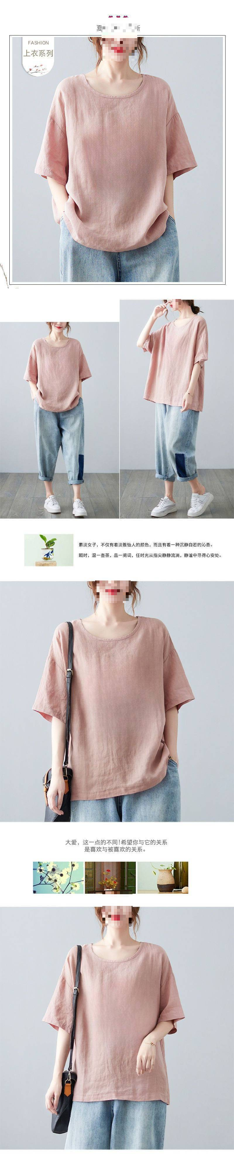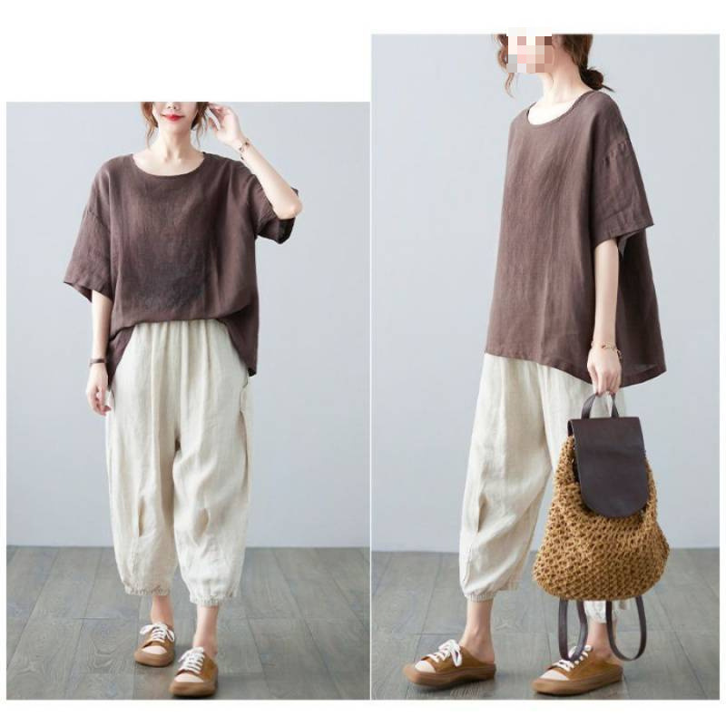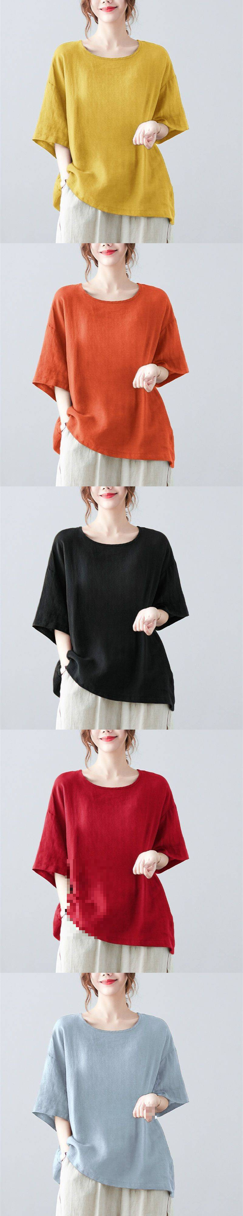 Повседневные однотонные ретро-литературные топы 2025 года, новые свободные женские хлопковые и льняные топы с короткими рукавами, облегающие и универсальные, больших размеров