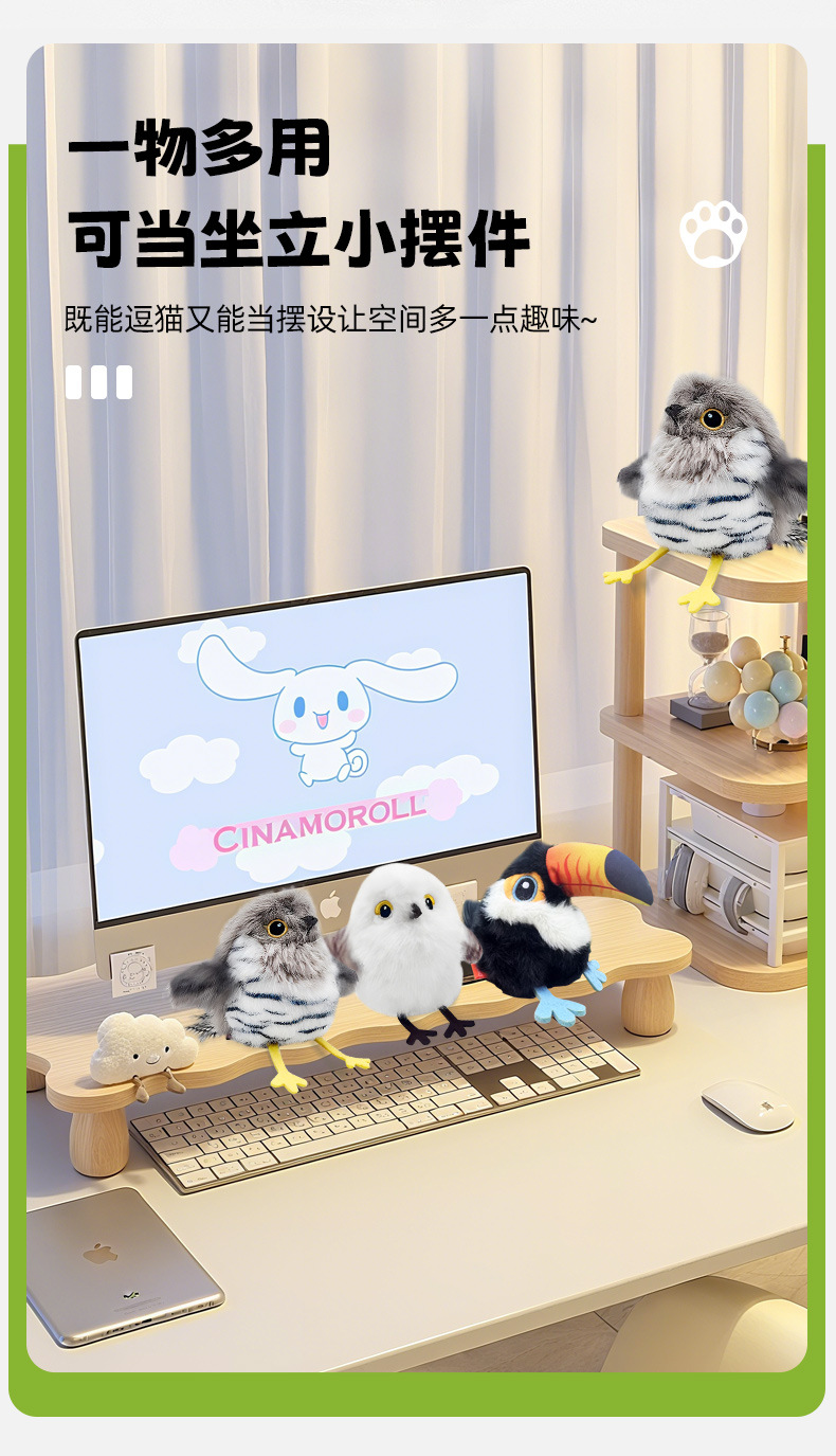 Хэллоуинская летучая мышь [Звук махания крыльями + Съемная и моющаяся]; Голова тыквы [Крылья с звуковыми эффектами + Съемная и моющаяся]; Мистер Гоуст [Звук махания крыльями + съемный и моющийся]; Большая синяя птица [махает крыльями и издает звуки + снимается и моется]; Angry Birds [махайте крыльями, чтобы издать звук + съемный и моющийся]; Утка с зеленой головой [махает крыльями и издает шум + снимается и моется]; Красноокая воробья [махает крыльями, издавая звук + снимается и моется]; Кукушка [махает крыльями и издает звуки + снимается и моется]; Желтоокая воробья [махает крыльями, издавая звук + снимается и моется]; Маленькая летающая белка [махает крыльями, чтобы издать звук + съемная и моющаяся]; Красочный ворон [Легкий звук касания/Имитация птичьего пения]; Синий Робин [Легкое прикосновение для извлечения звука/имитация крика птицы]; Сине-белая чайка [легкий звук прикосновения/имитация крика птицы]; Серый Байлуо [легкий звук прикосновения/имитация крика птицы]; Гравитационный маленький толстый кукушонок [Звук махания крыльями + съемный и моющийся]; Гравитационная плавающая рыба - Тихоокеанская сайра [Биомиметическое движение + Съемный и моющийся]; Гравити Маленький Толстый Звонкий Воробей [Звук махания крыльями + съемный и моющийся]; Гравитационная плавающая рыба - Сардина [Биомиметический движение + Съемная и моющаяся]; Гравити Маленький Толстый Чирп-Пеликан [Крылья двигаются и издают звук + съемный и моющийся]; Гравитационная прыгающая рыба — маленькая желтая крукера [бионическое движение + съемный и моющийся]