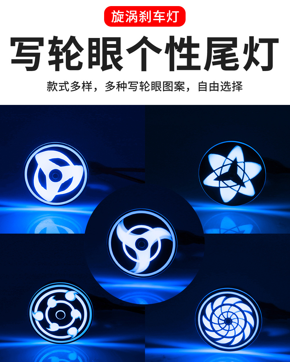 Мотоциклетный/скутерный светодиодный задний стоп-сигнал с вращающимся Sharingan, мигающий стоп-сигнал