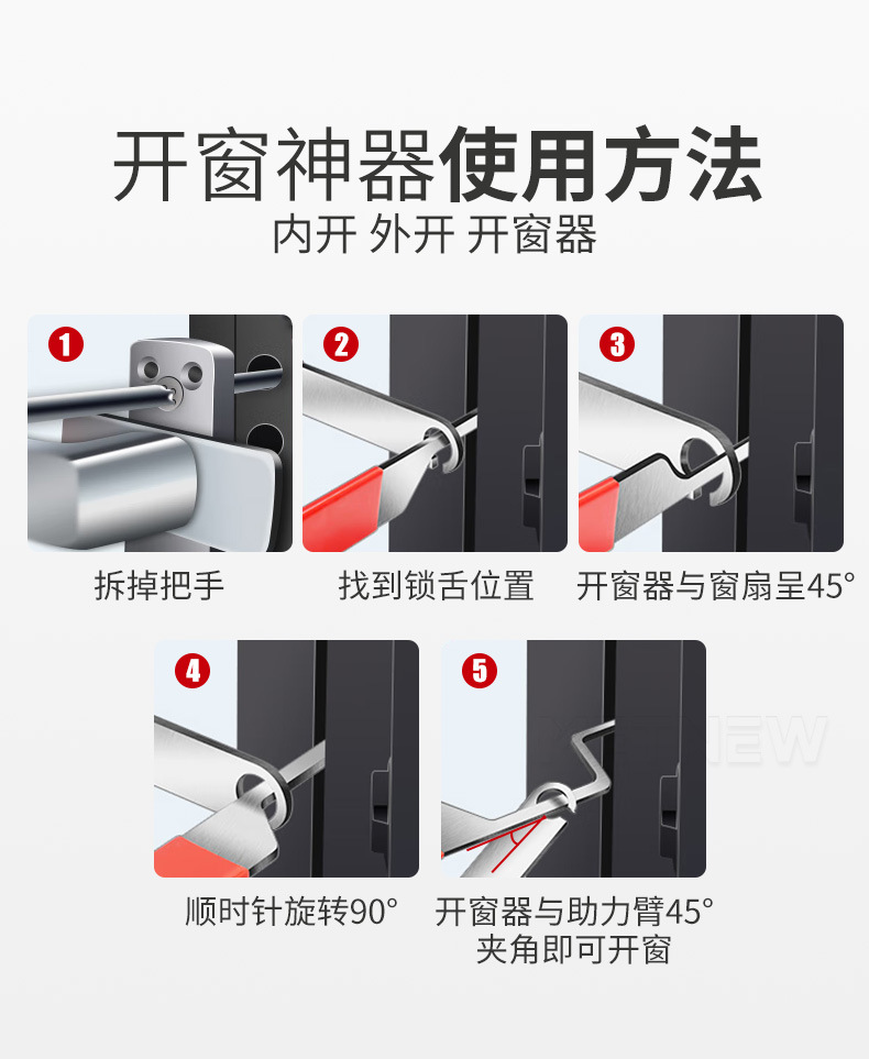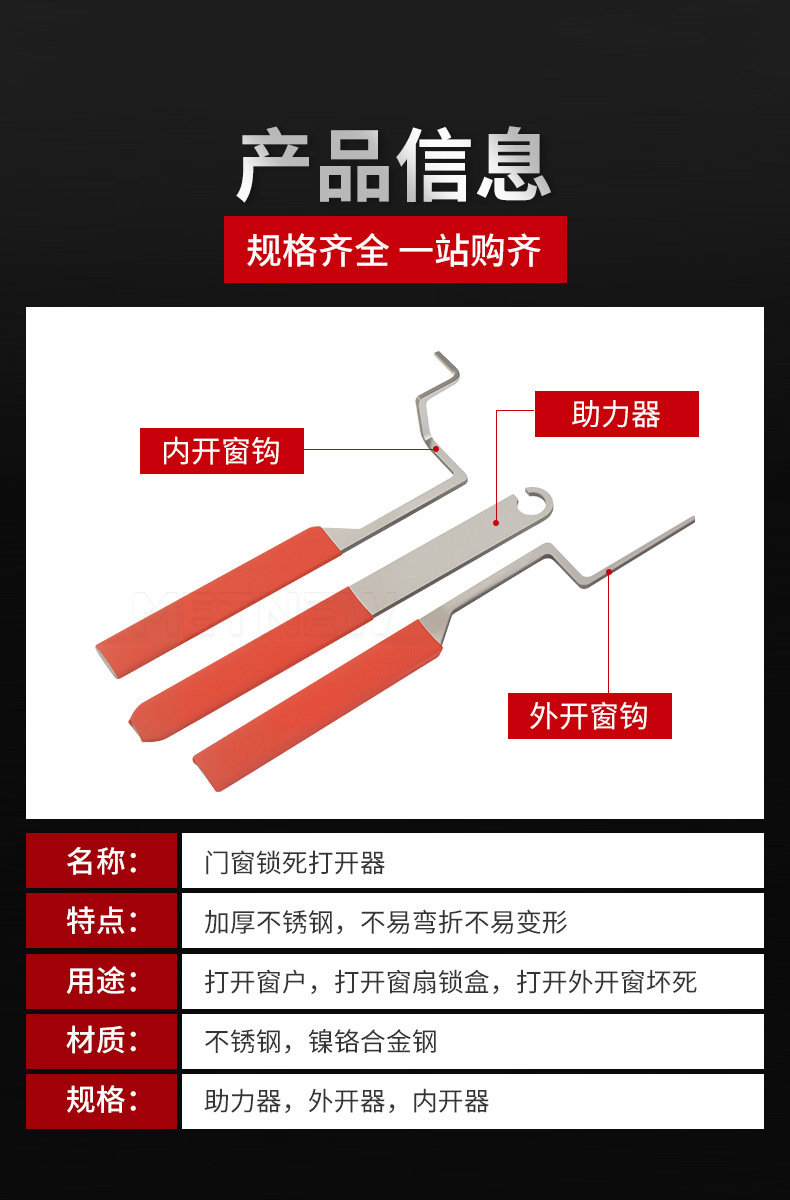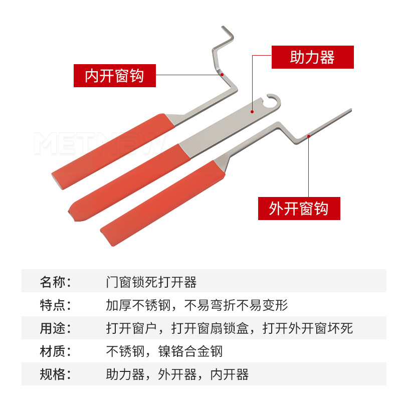 [Толстая нержавеющая сталь] Крючок для внутреннего открытия; [Толстая нержавеющая сталь] Крючок для внешнего открывания; [Толстая нержавеющая сталь] Бустер; Набор инструментов для открытия окон, три предмета