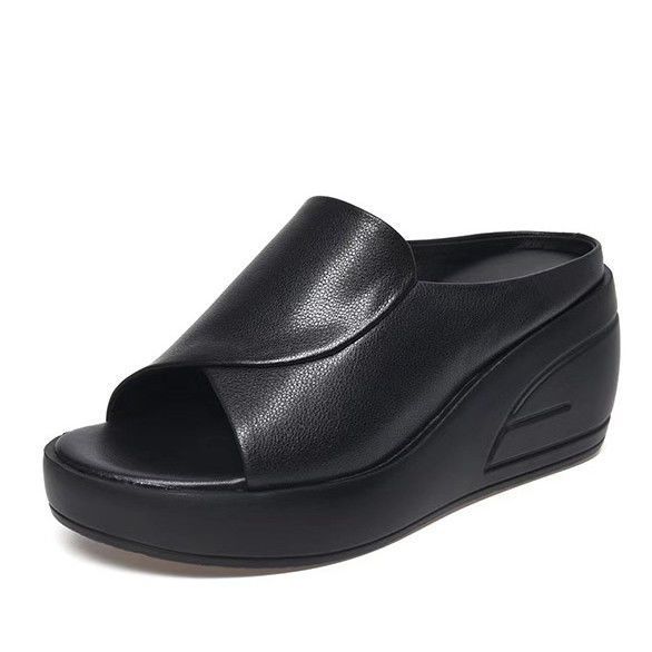 Новые летние шлепанцы-танкетки 2025 года для женщин, женские туфли из натуральной кожи на толстой подошве, летние сандалии на платформе, сандалии на высоком каблуке