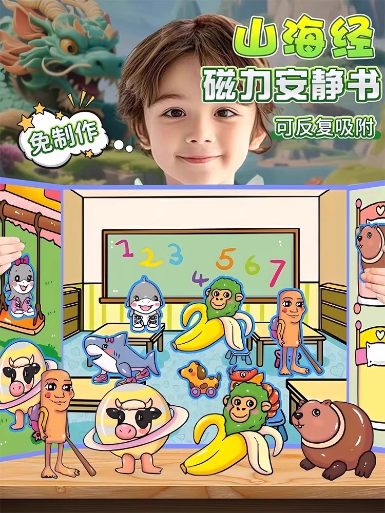 AI Shan Hai Jing Магнитная тихая книга для девочек, резка не требуется, магнитные наклейки для детей, магнитная игрушка для мальчиков.