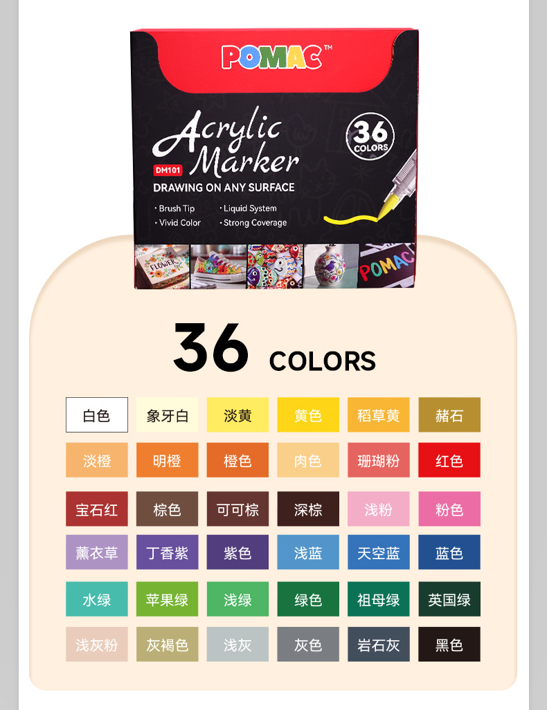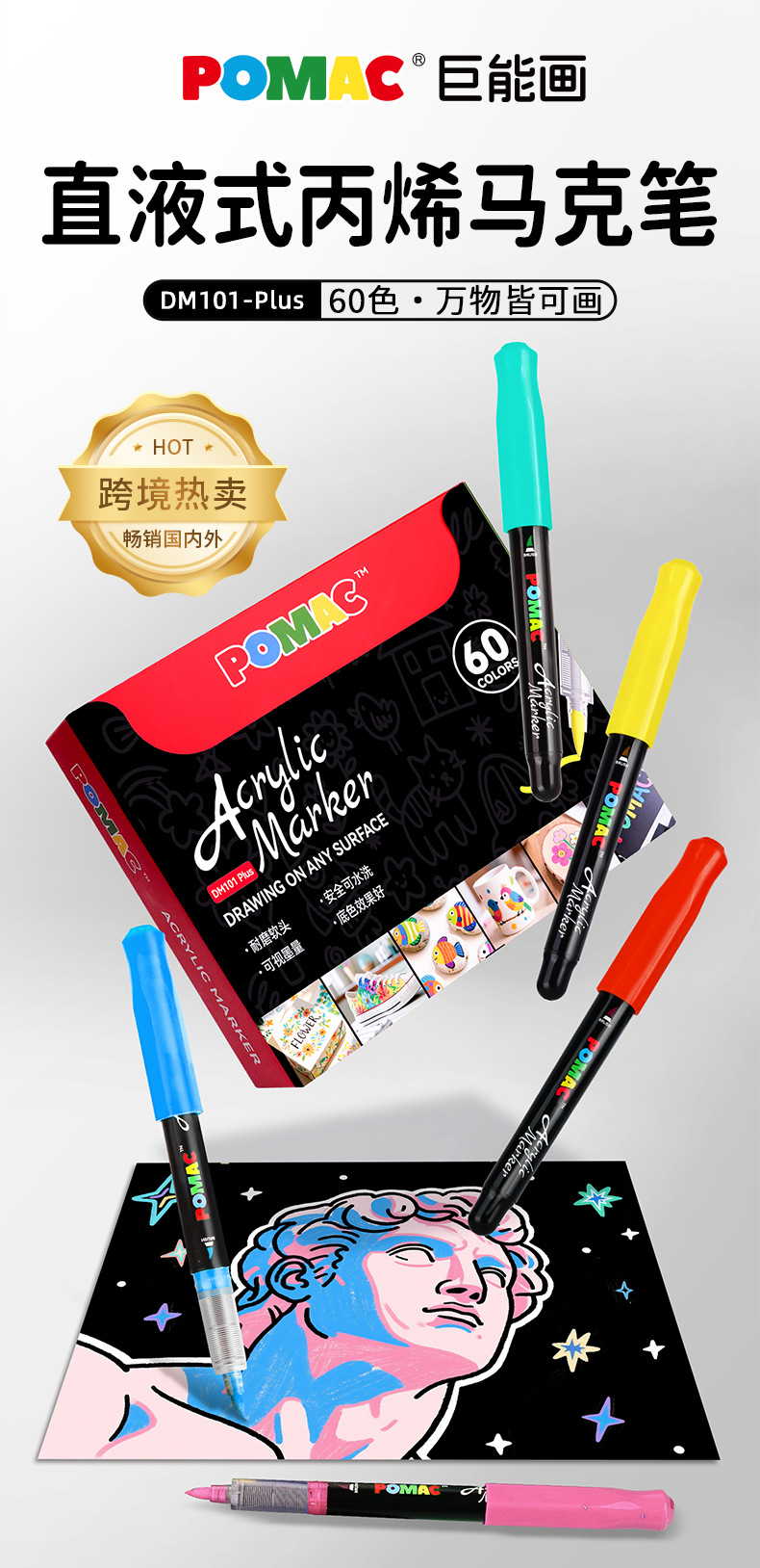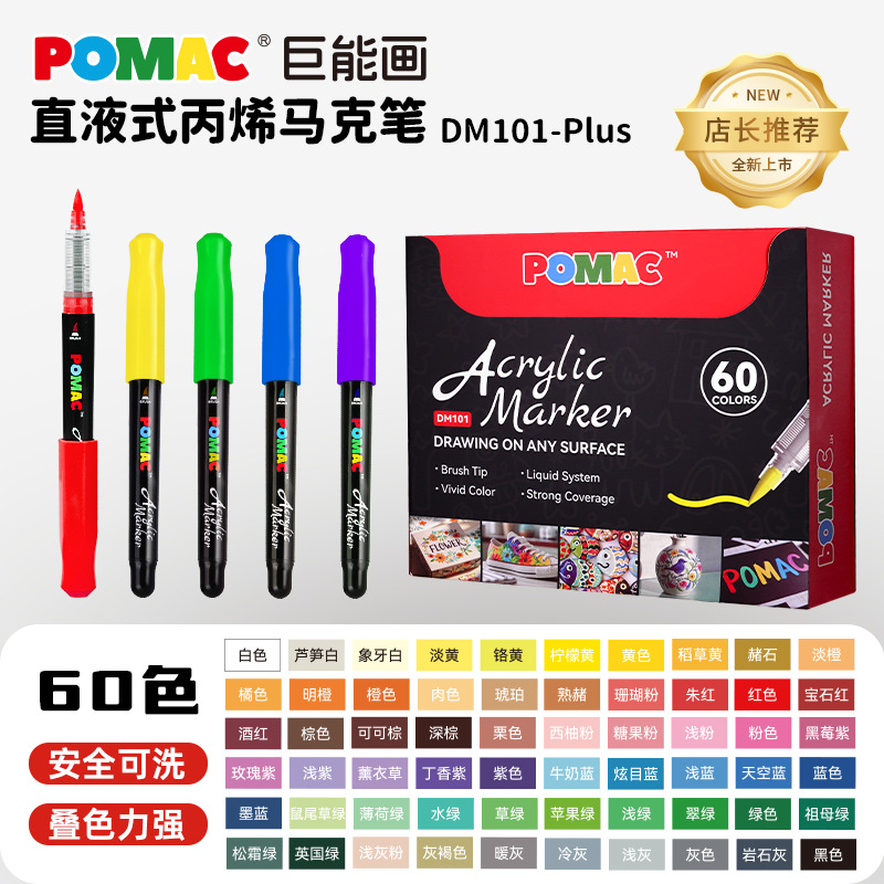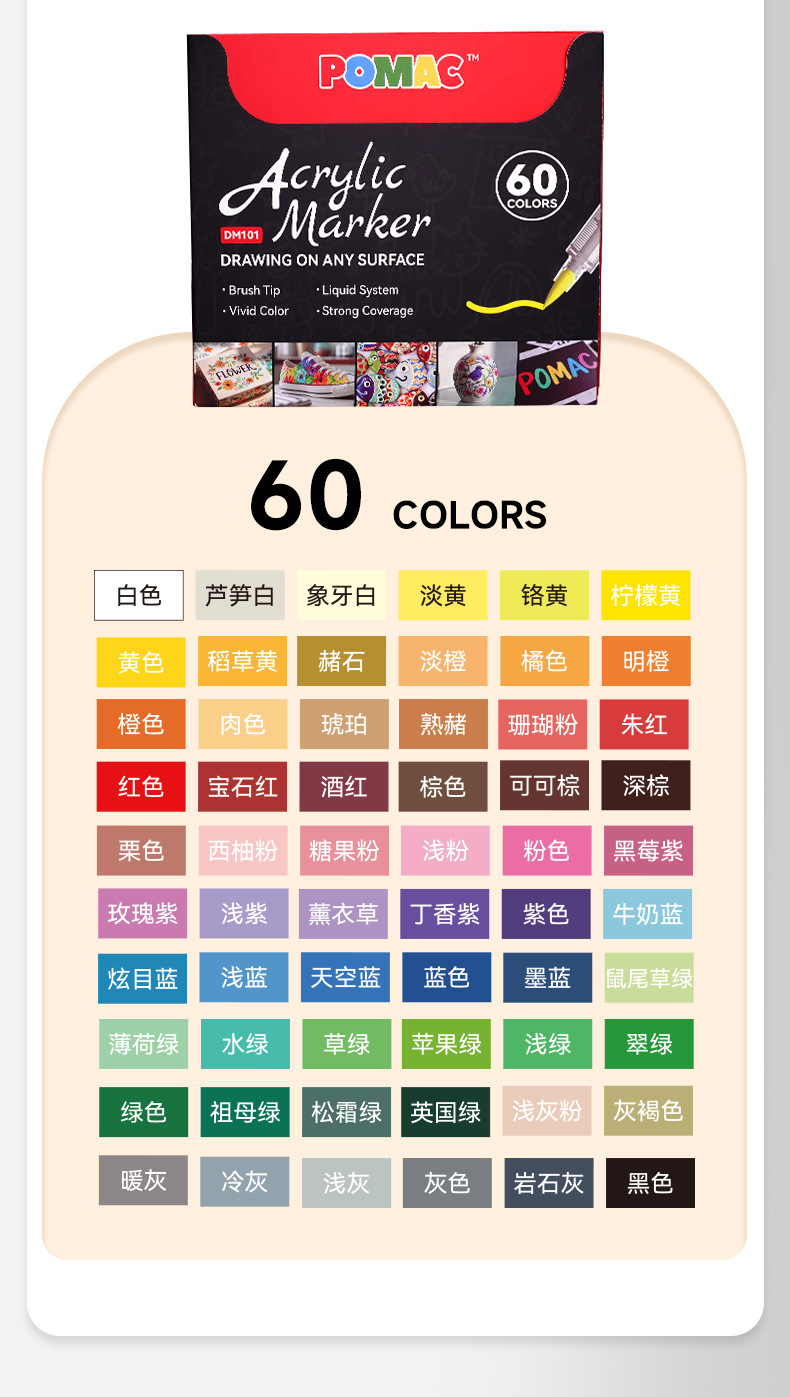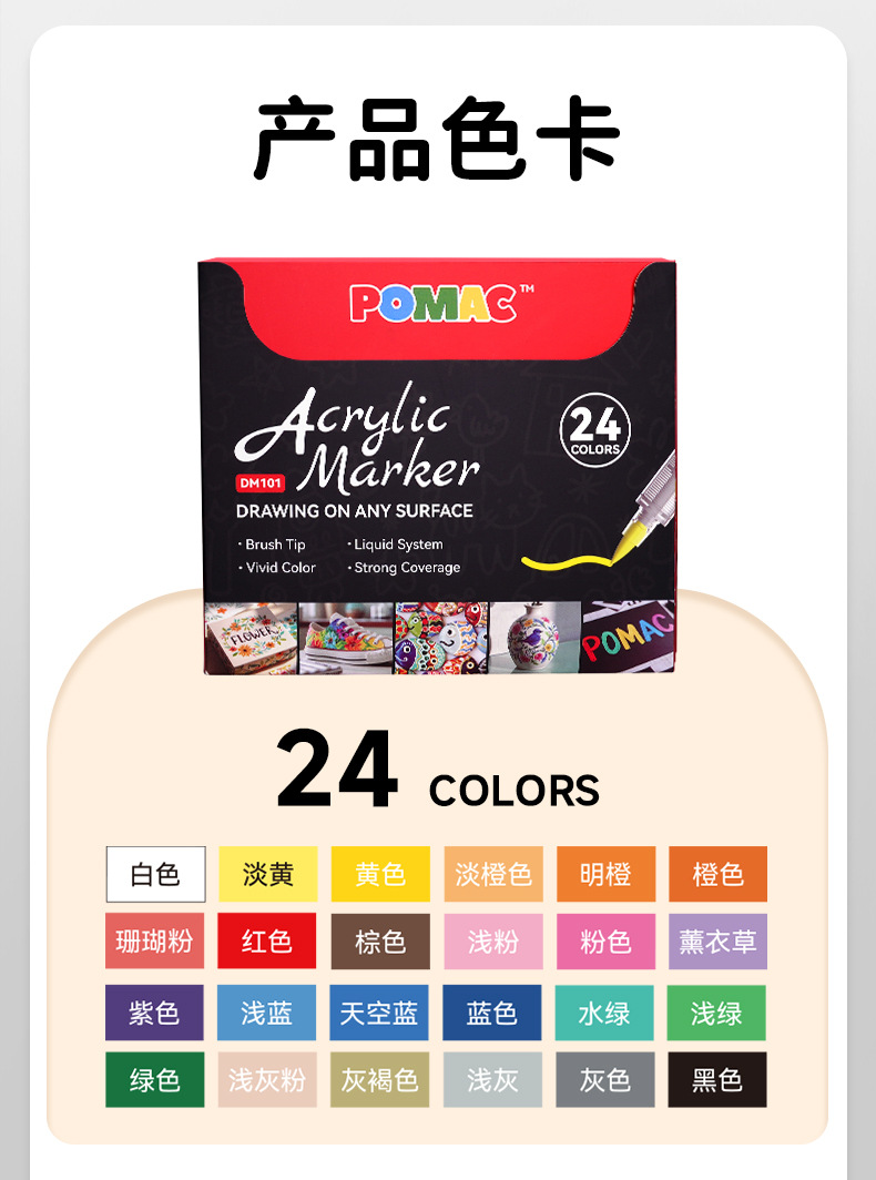 Трансграничный 101 прямой жидкий акриловый маркер с мягкой головкой, цветной маркер для студентов, непрозрачный цветной штабелируемый акварельный маркер