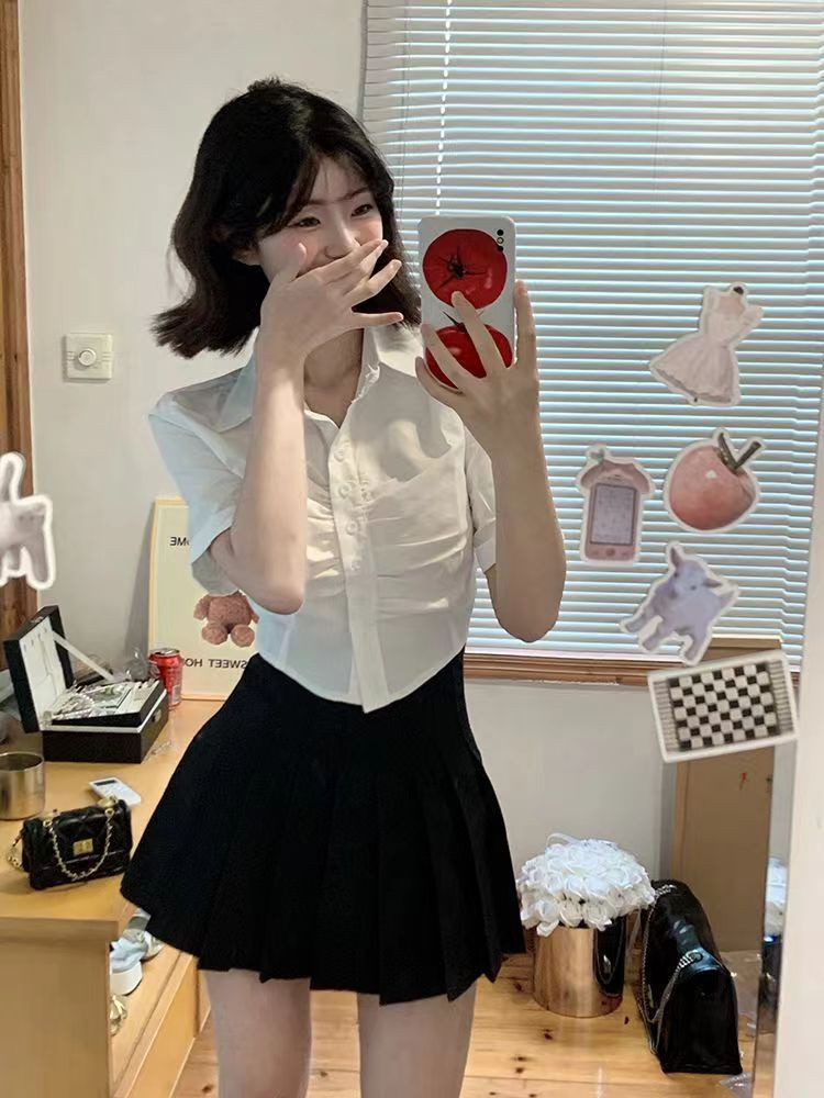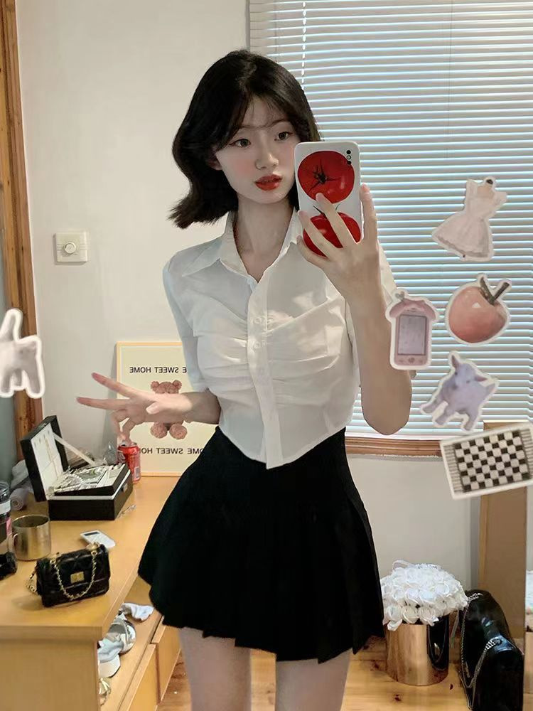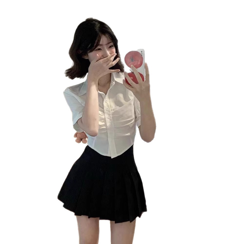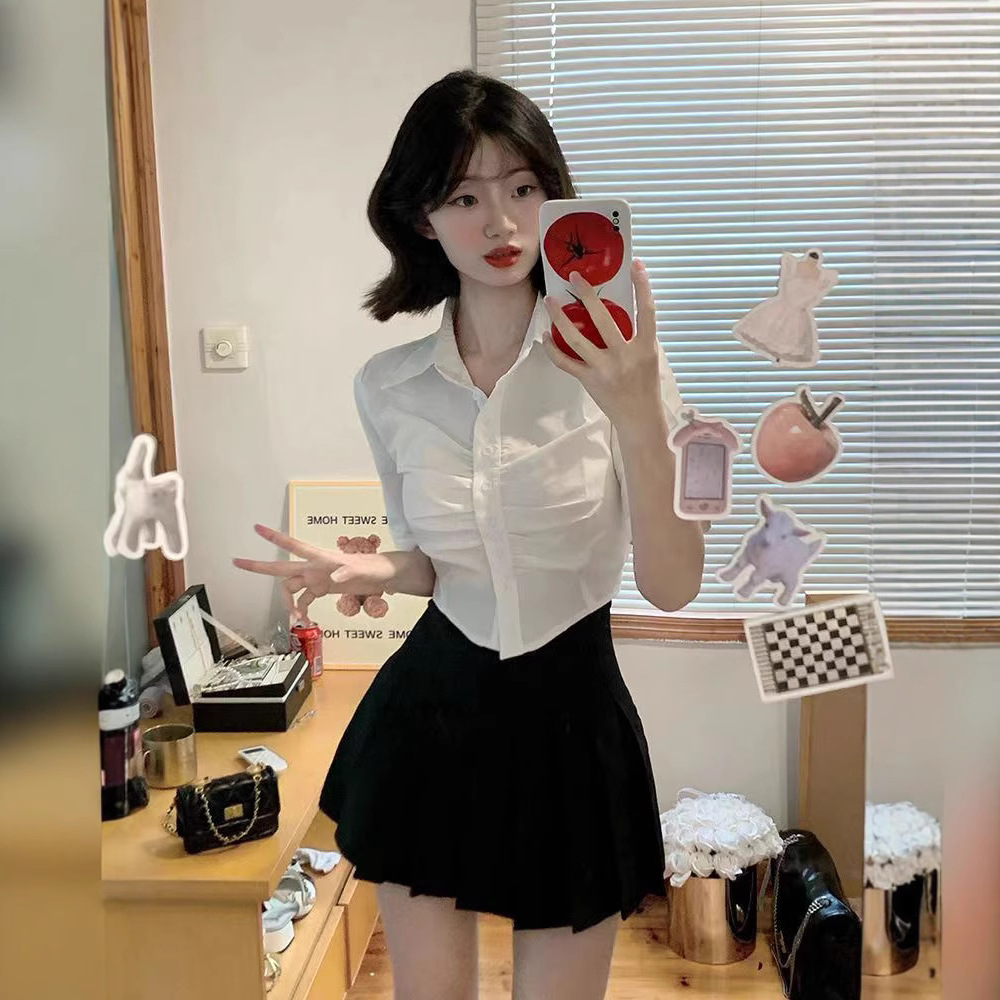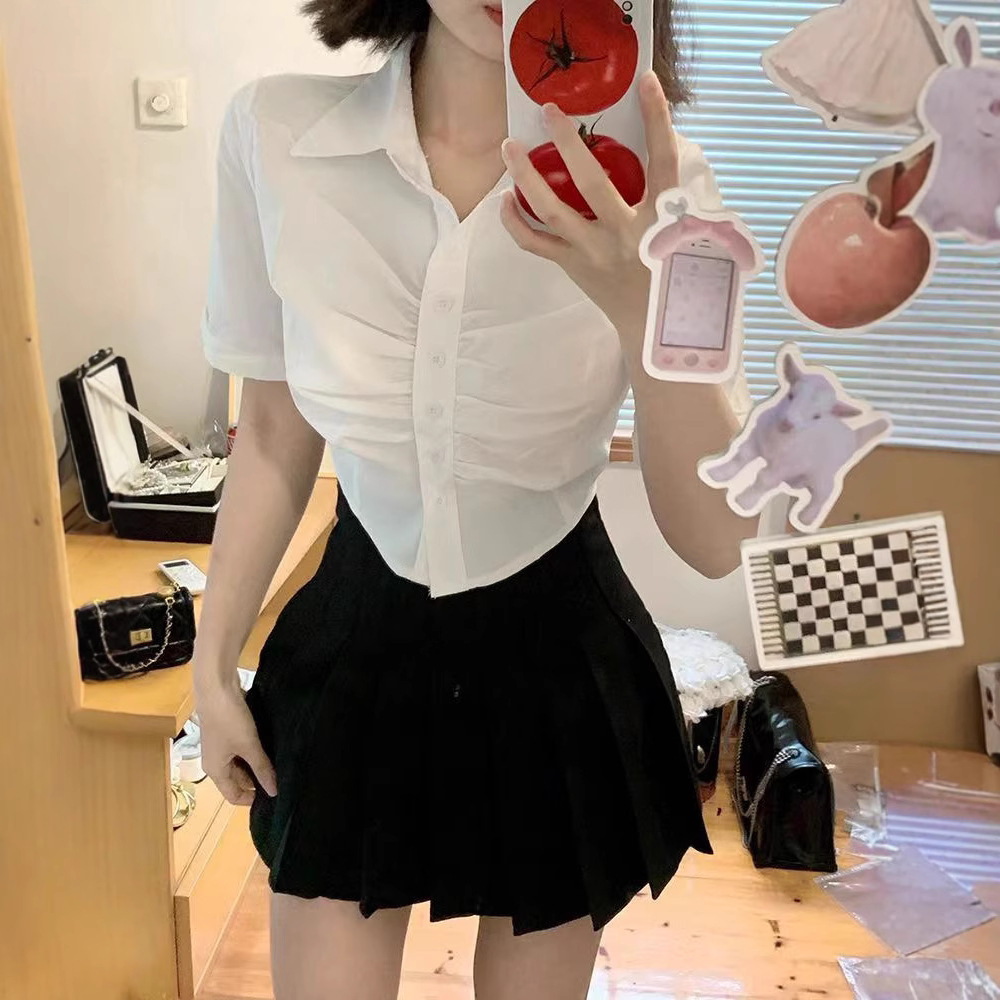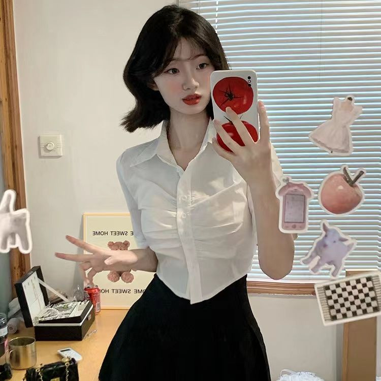 Белая рубашка Pure Lust для горячих девушек, женская короткая облегающая рубашка с плиссированной талией на правое плечо, летний топ с короткими рукавами