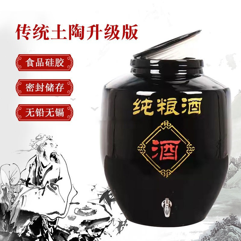 Керамическая винная банка Tiange из чистого зерна, глиняная винная банка с краном, большая винная банка с герметичной черной глазурью для дома, винная банка