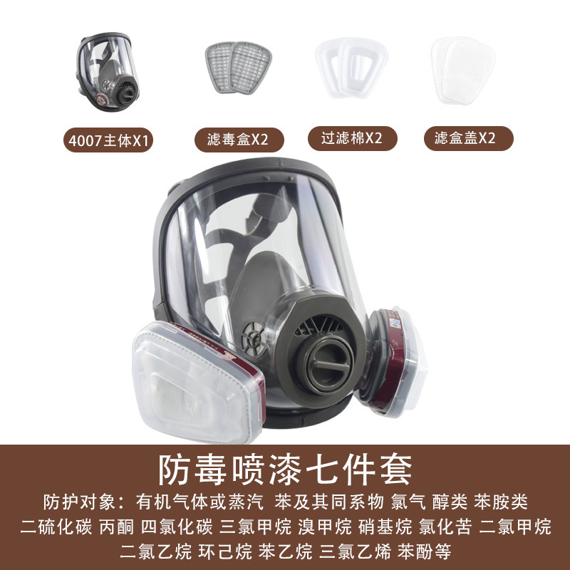 Защитная фильтрующая маска, полная маска с фильтром 4007, набор из семи предметов с большим полем зрения, пожаробезопасная пылезащитная полная маска
