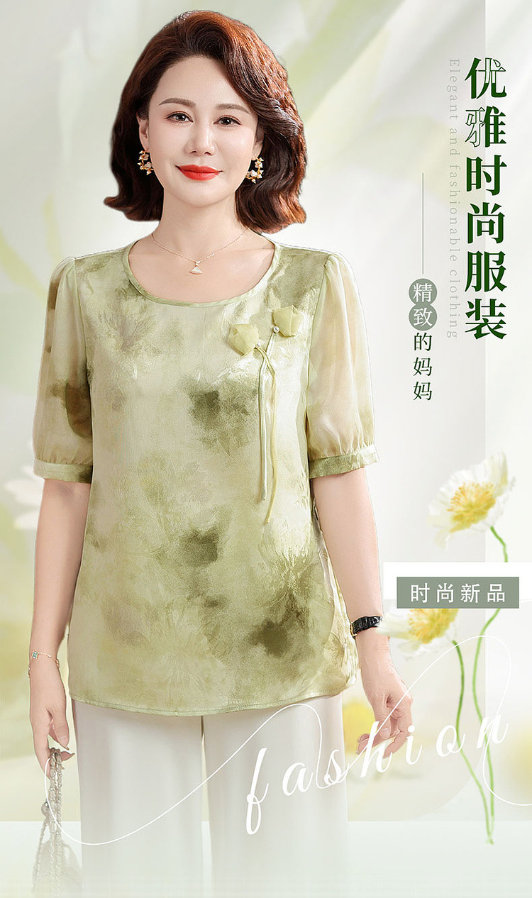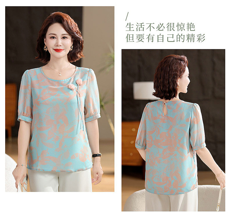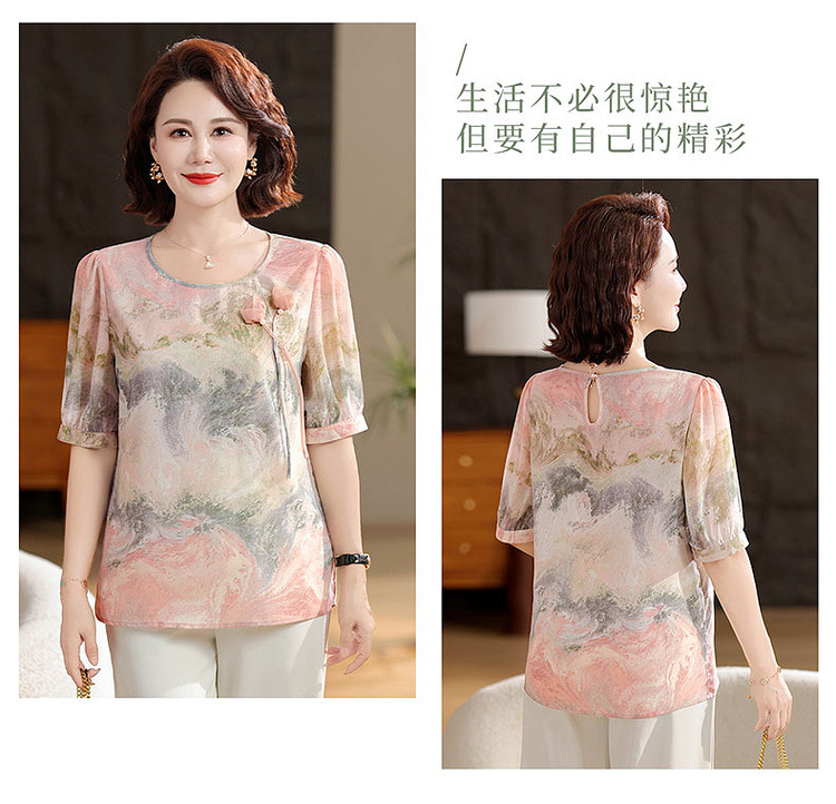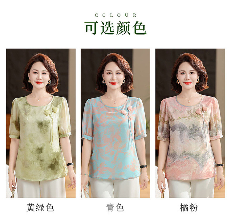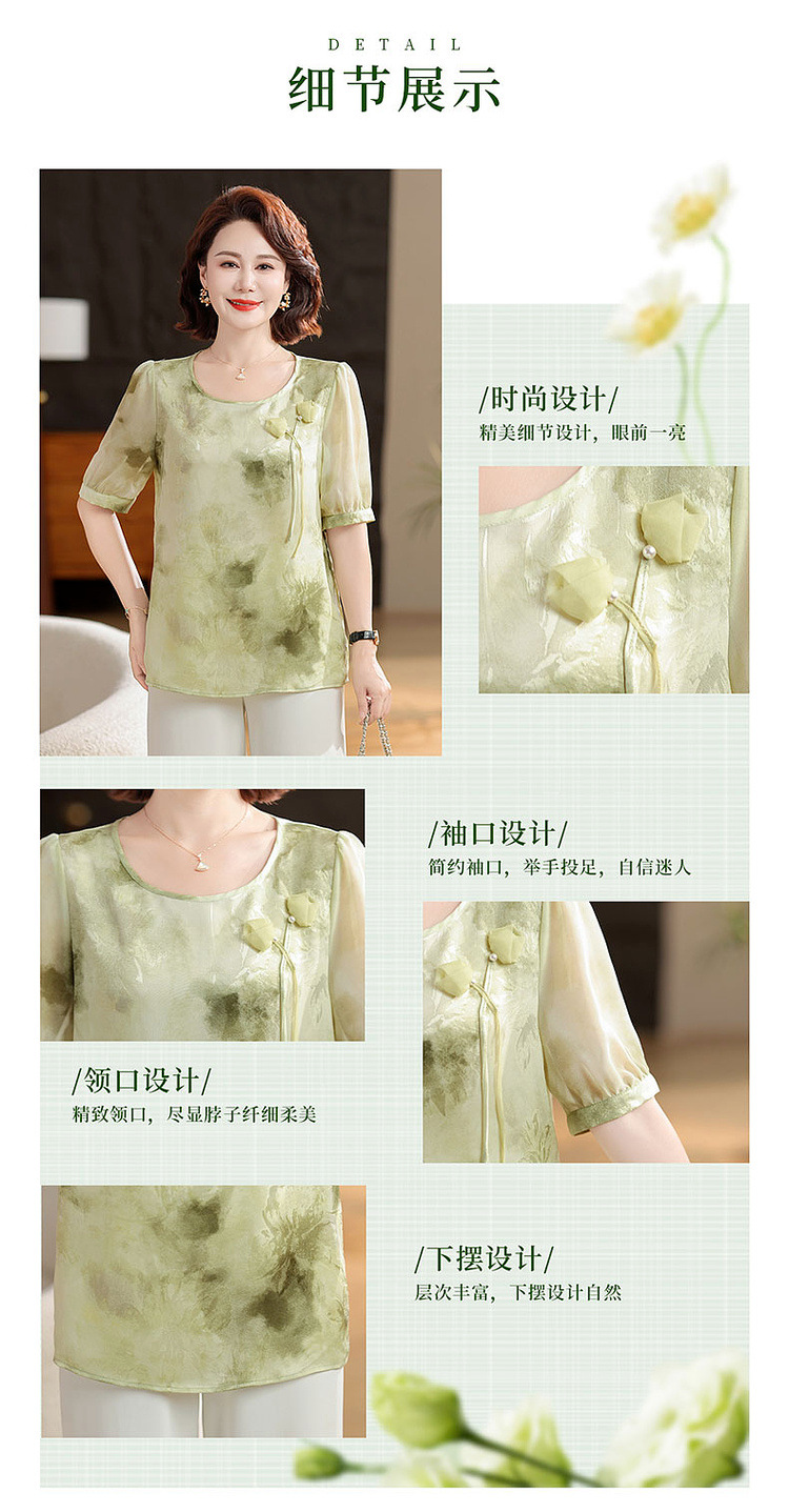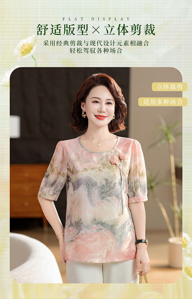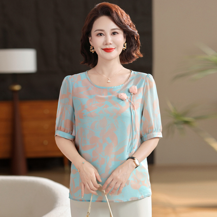2025 новая летняя футболка для мам для женщин, уменьшающая возраст 50 лет, модный китайский стиль, модные рубашки среднего и пожилого возраста.