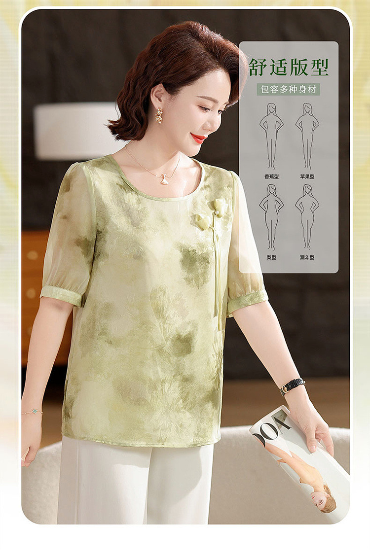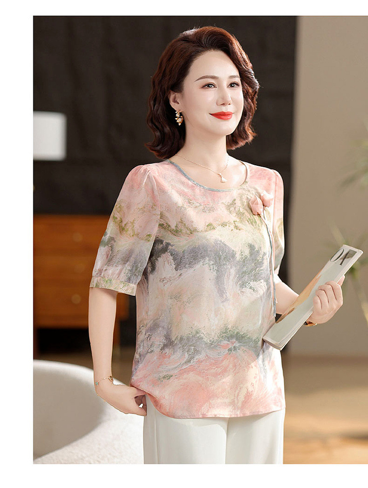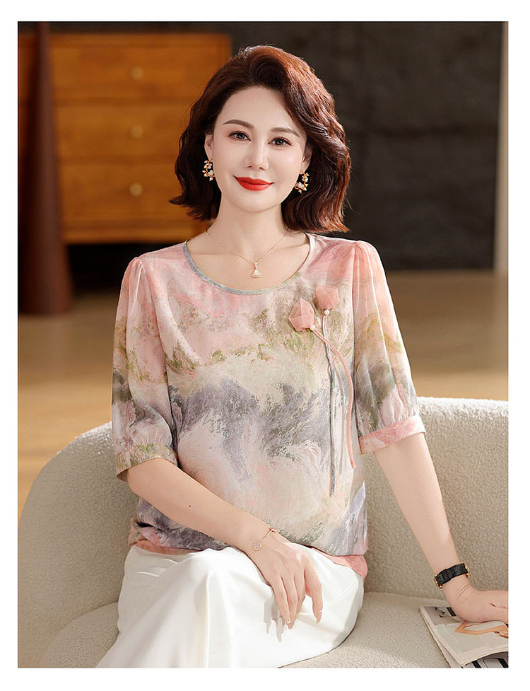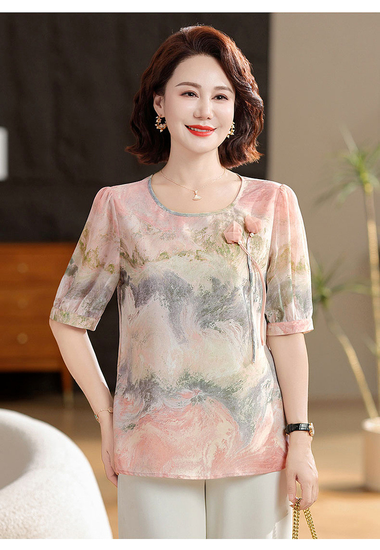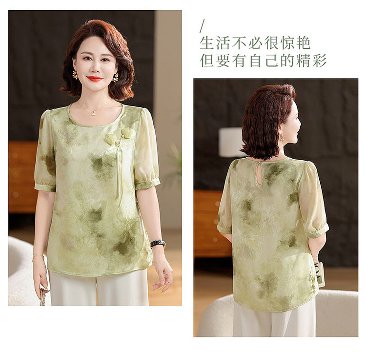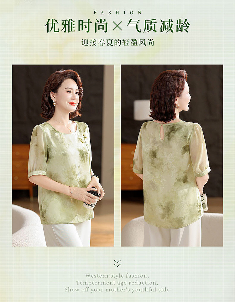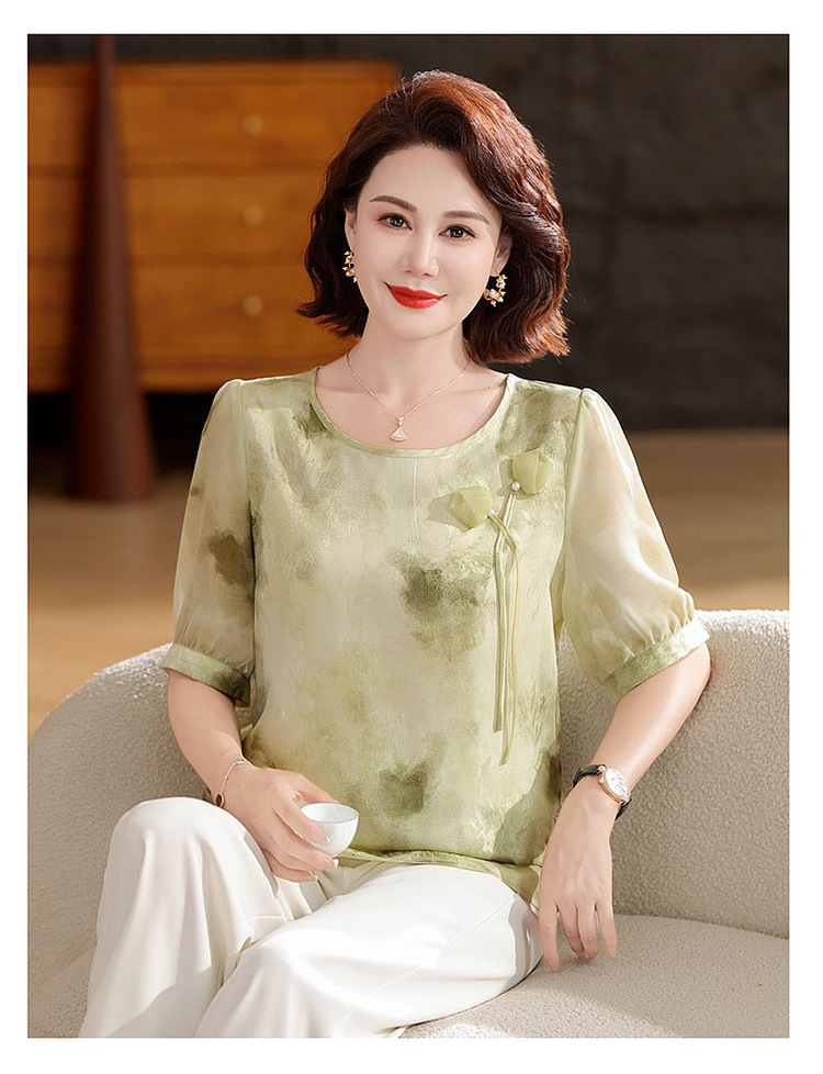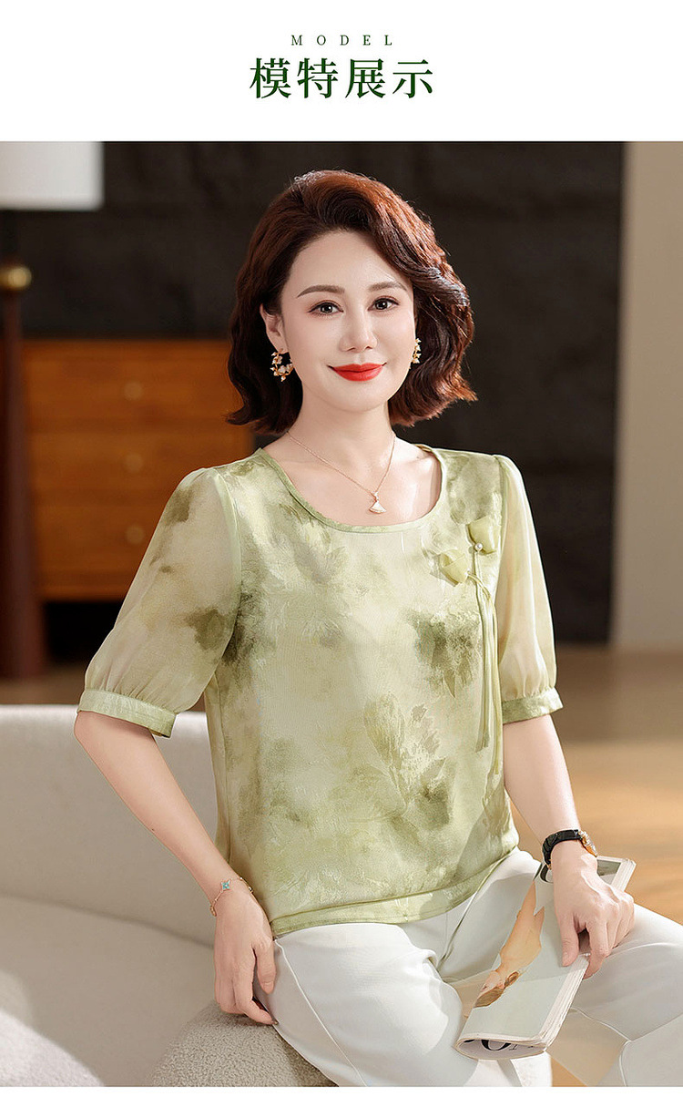 2025 новая летняя футболка для мам для женщин, уменьшающая возраст 50 лет, модный китайский стиль, модные рубашки среднего и пожилого возраста.