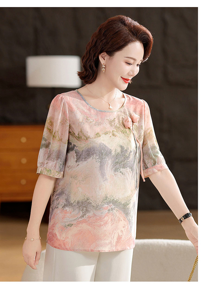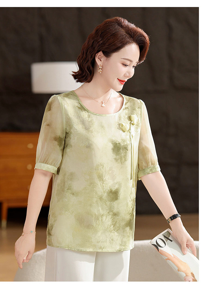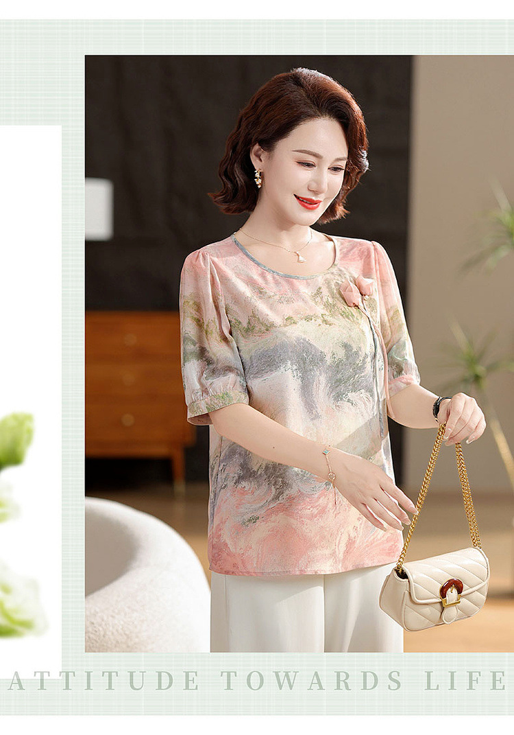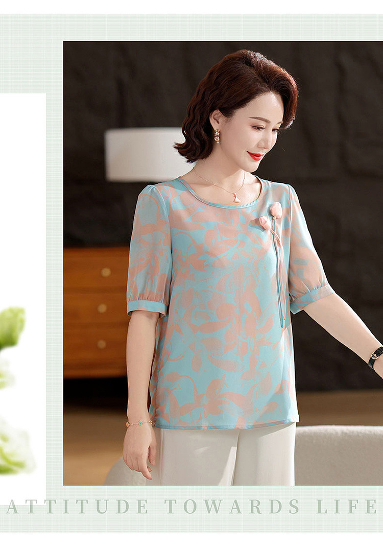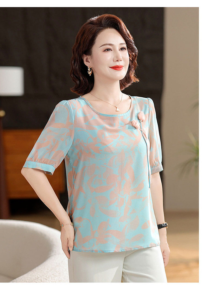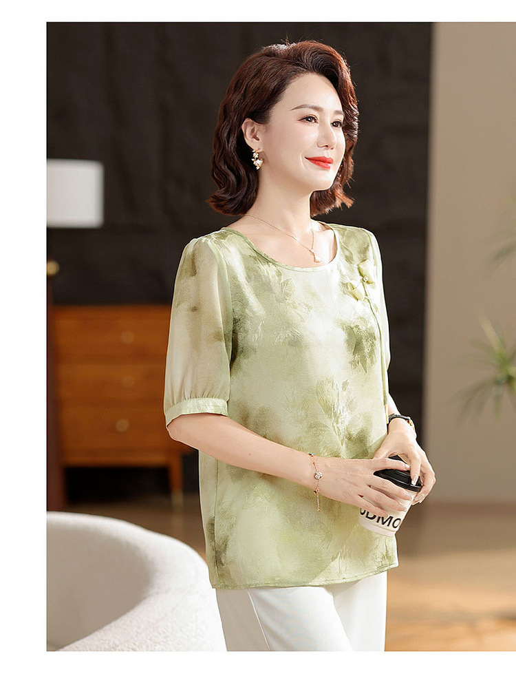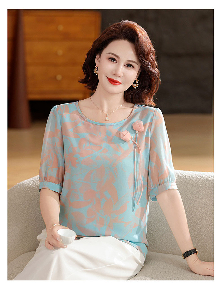 2025 новая летняя футболка для мам для женщин, уменьшающая возраст 50 лет, модный китайский стиль, модные рубашки среднего и пожилого возраста.