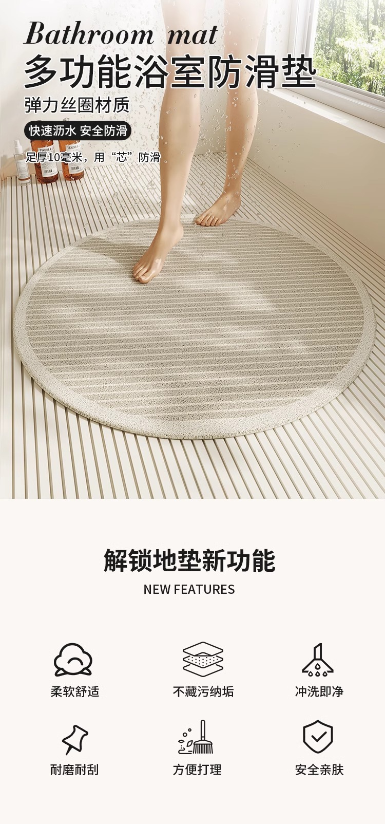 Круглый противоскользящий коврик для ванной комнаты, бытовой коврик для ванной и душевой комнаты, водонепроницаемый коврик для ног, коврик для ванной комнаты, туалета